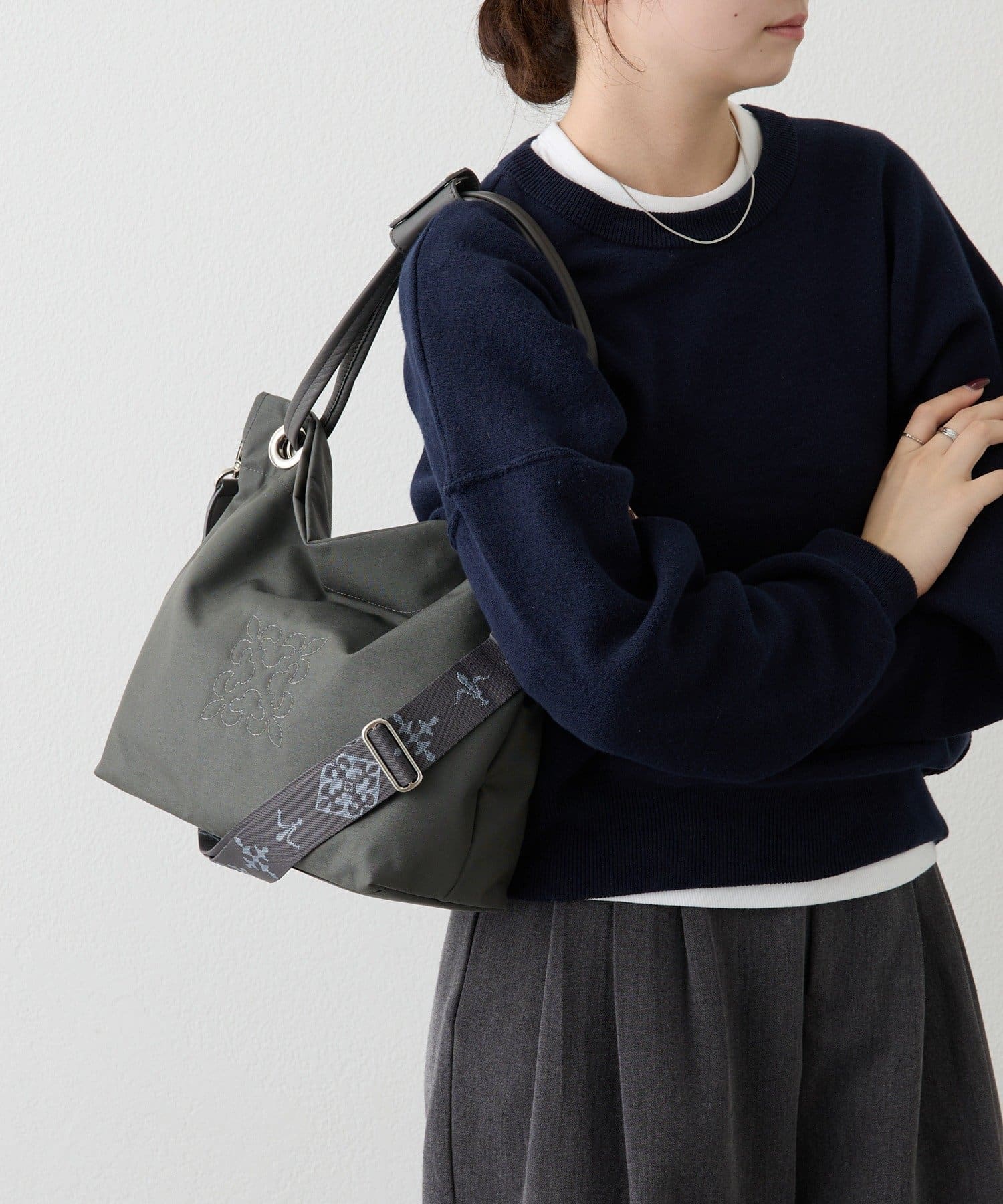 上質なナイロン素材にモノグラム刺繍をあしらった、ラシットらしいデザイン性と機能性を兼ね備えたトートバッグ。