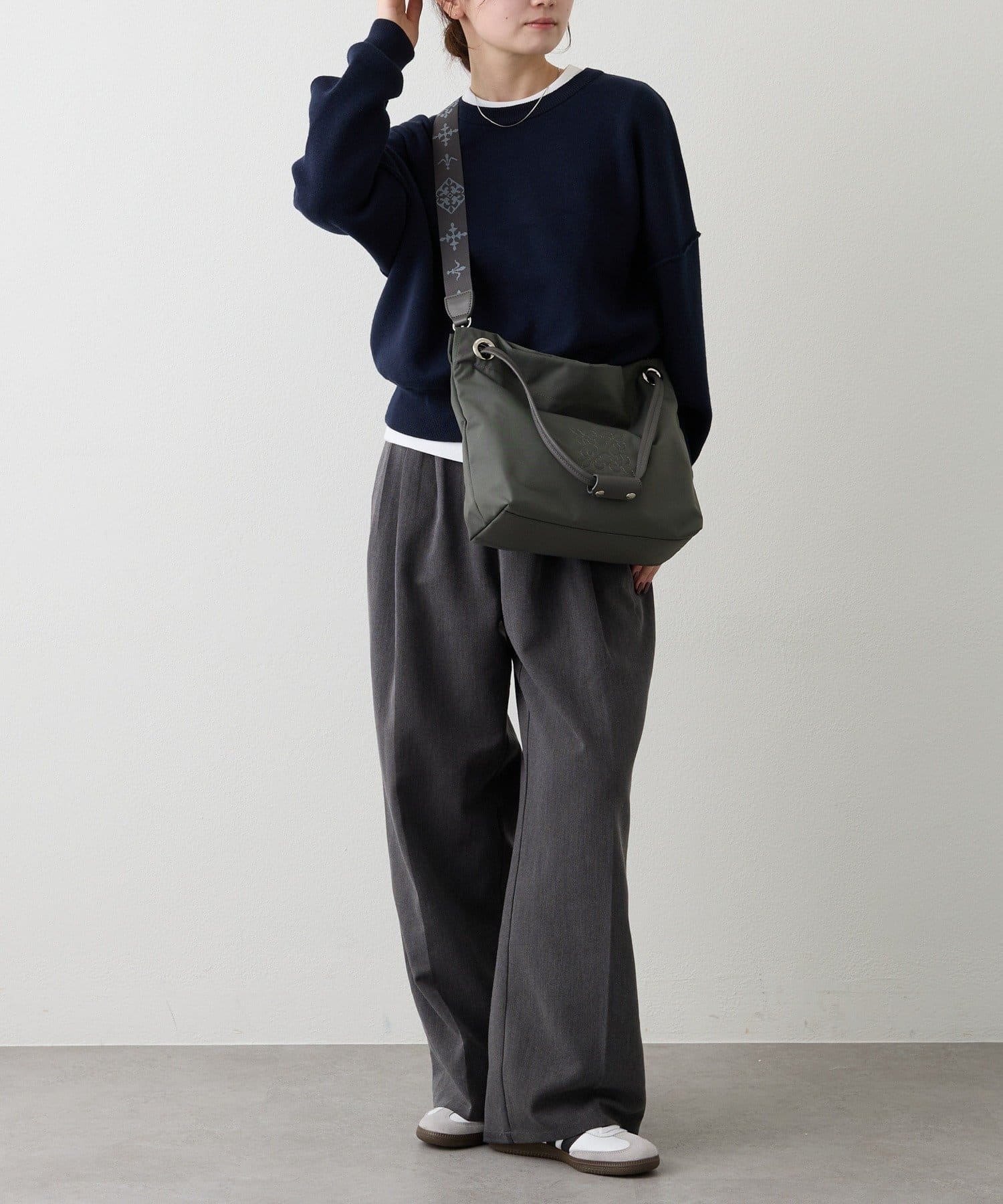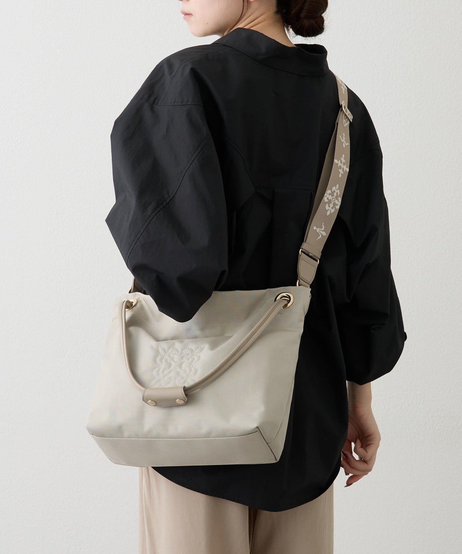 2重にして手持ち、1重にしてワンショルダーと、使い方次第でシルエットの変化を楽しめます。