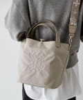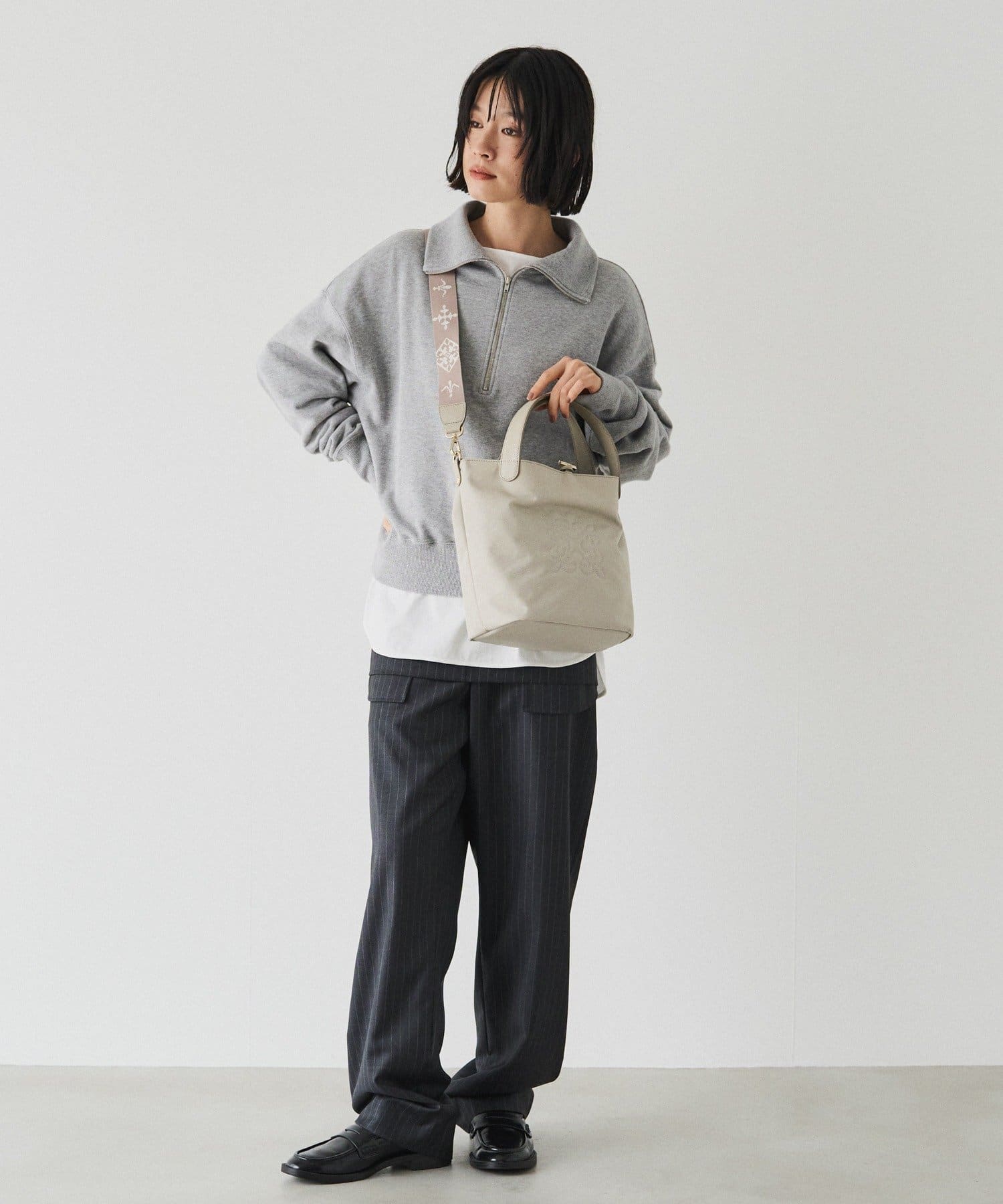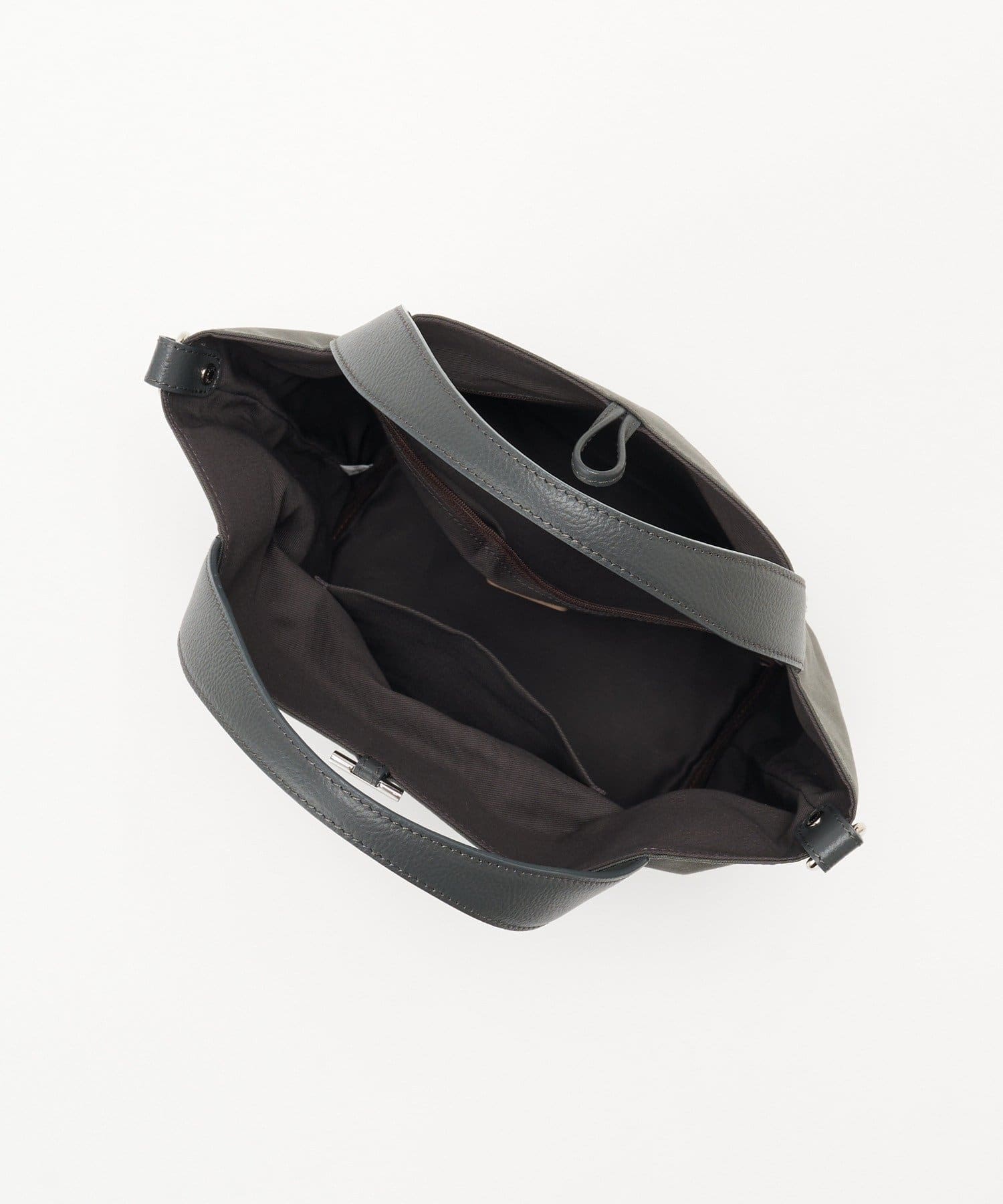 ハンドルや開口部にはレザーをあしらい、素材のコントラストで奥行きをプラス。