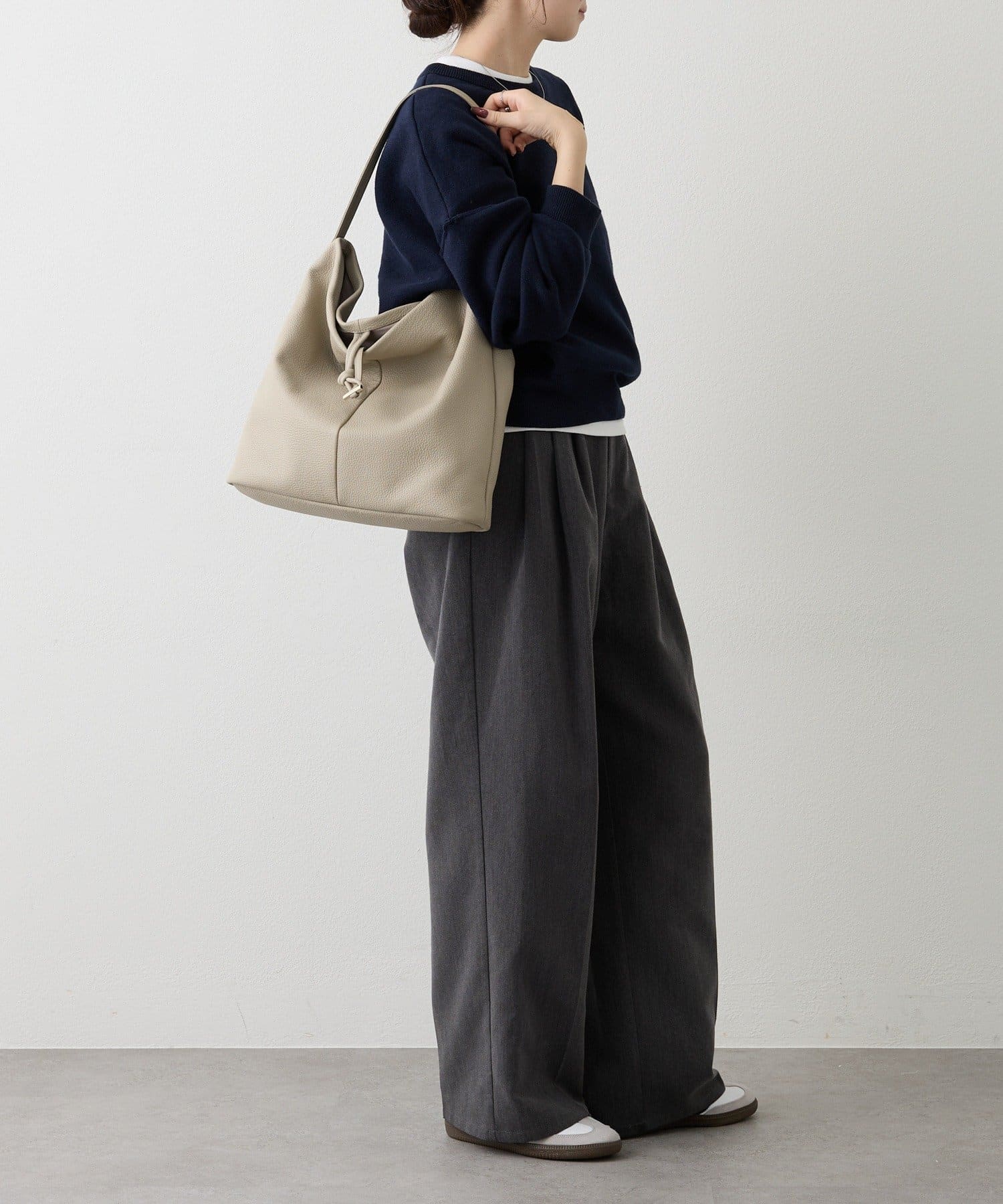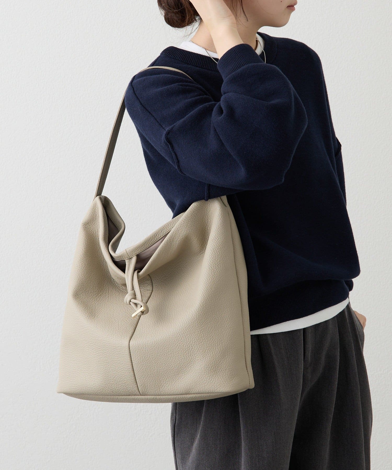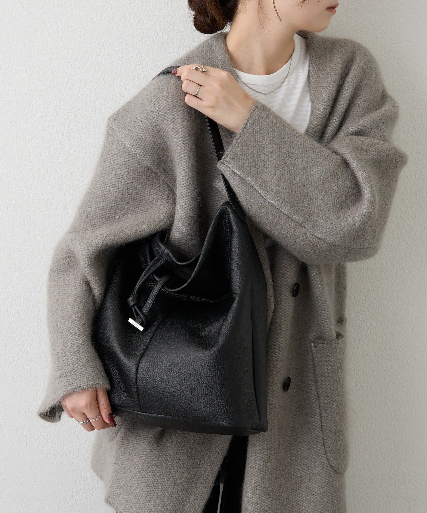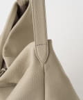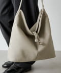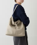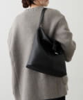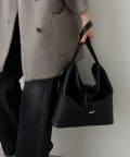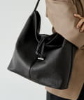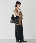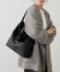 柔らかなレザーが生み出す自然なドレープが美しく、大きめバッグをゆるっと持つことで、こなれたムードを演出します。