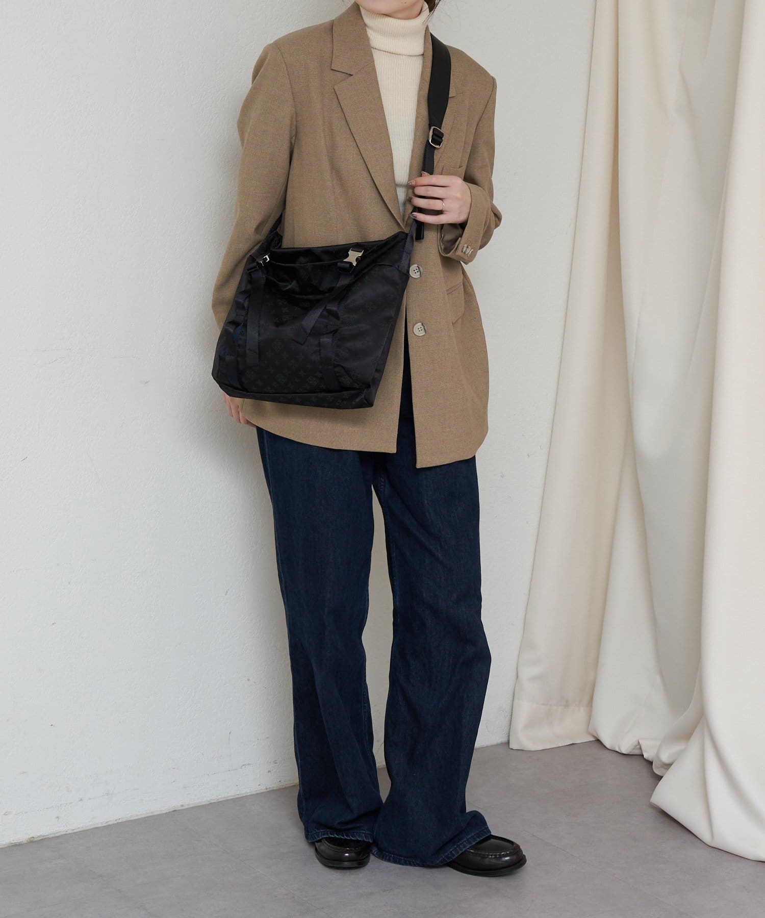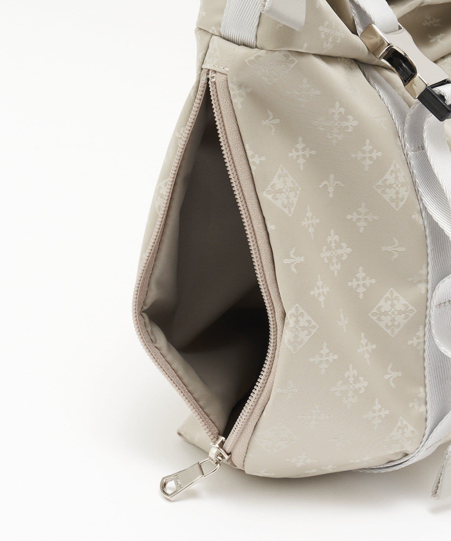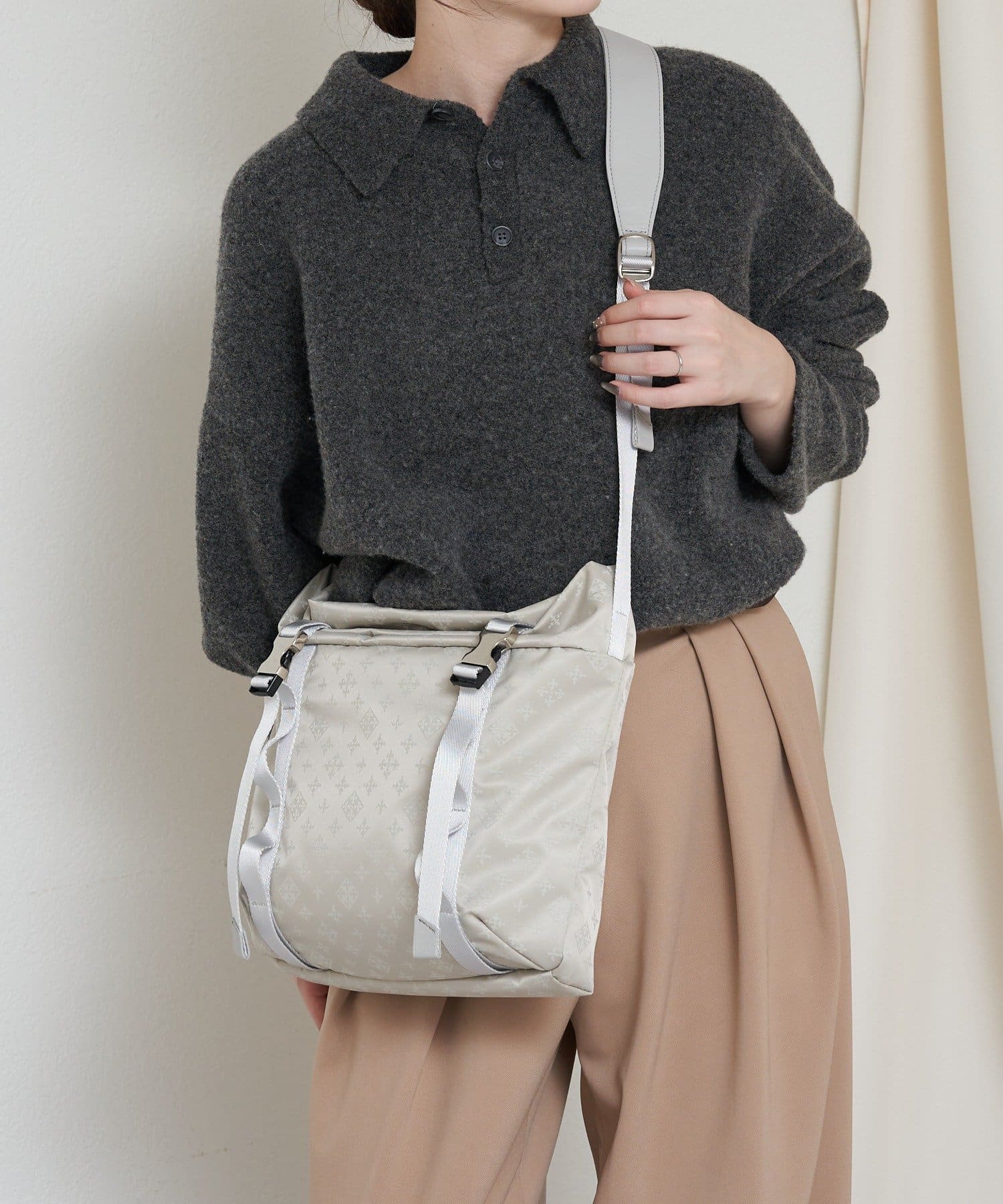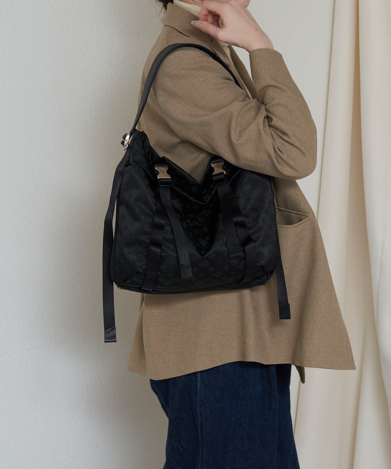 本体はナイロンジャカードを使用し、無地のように見えて光が当たるとモノグラムがふっと浮かび上がる、奥行きある表情が魅力です。