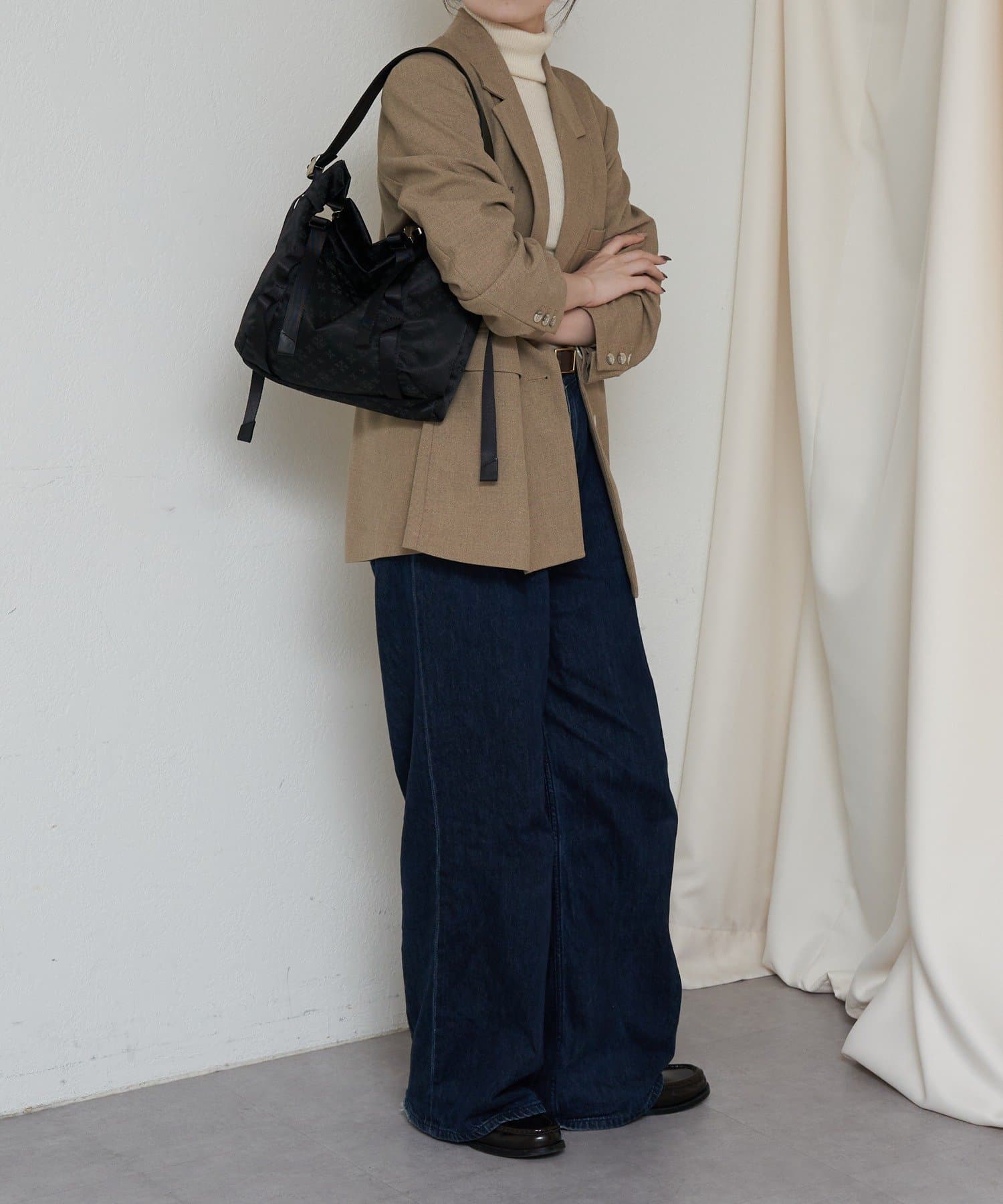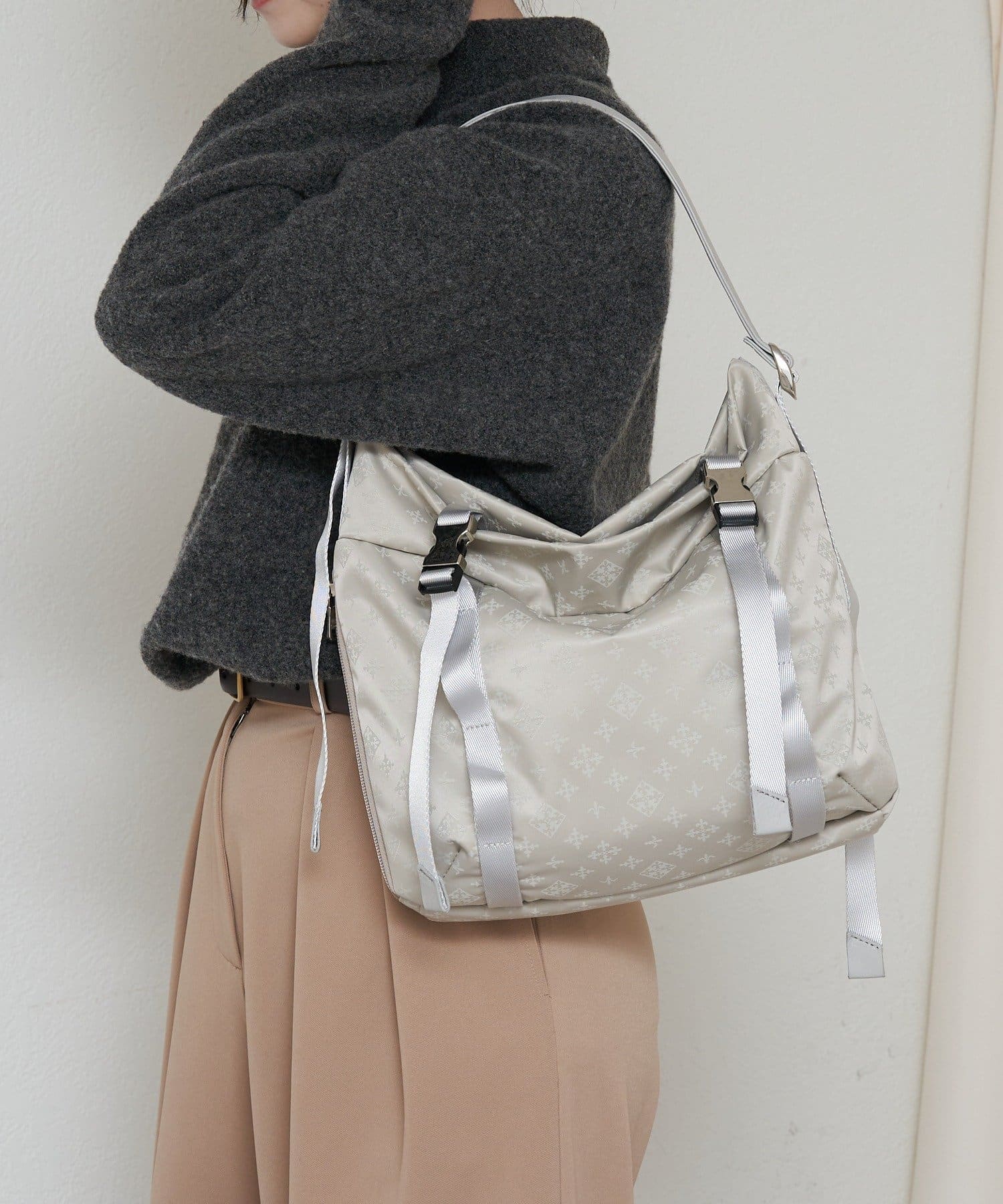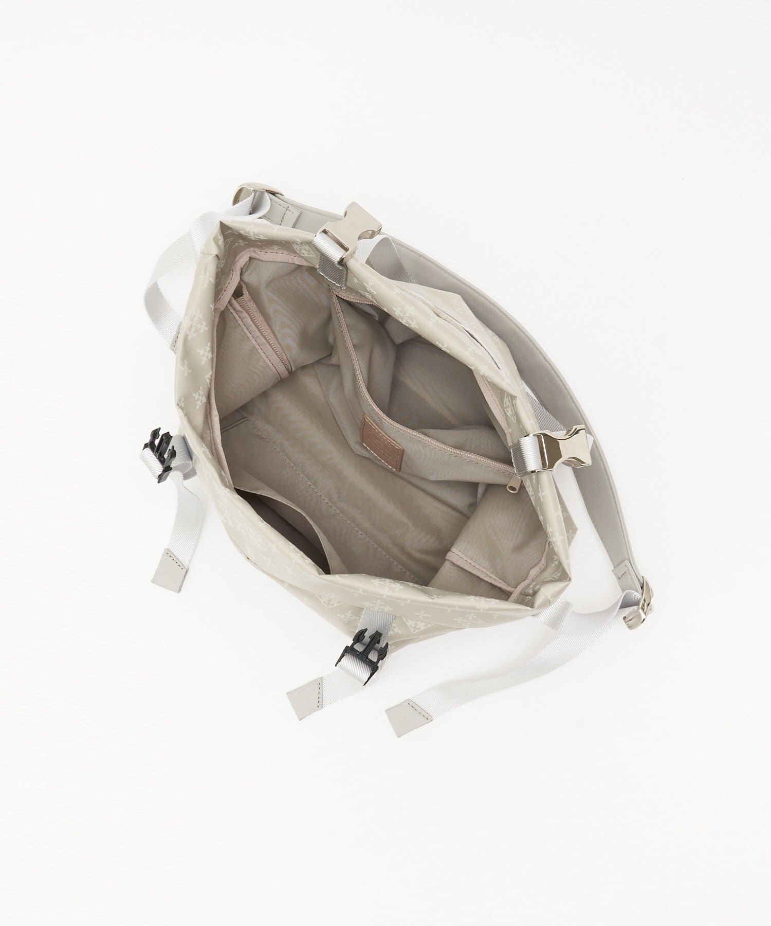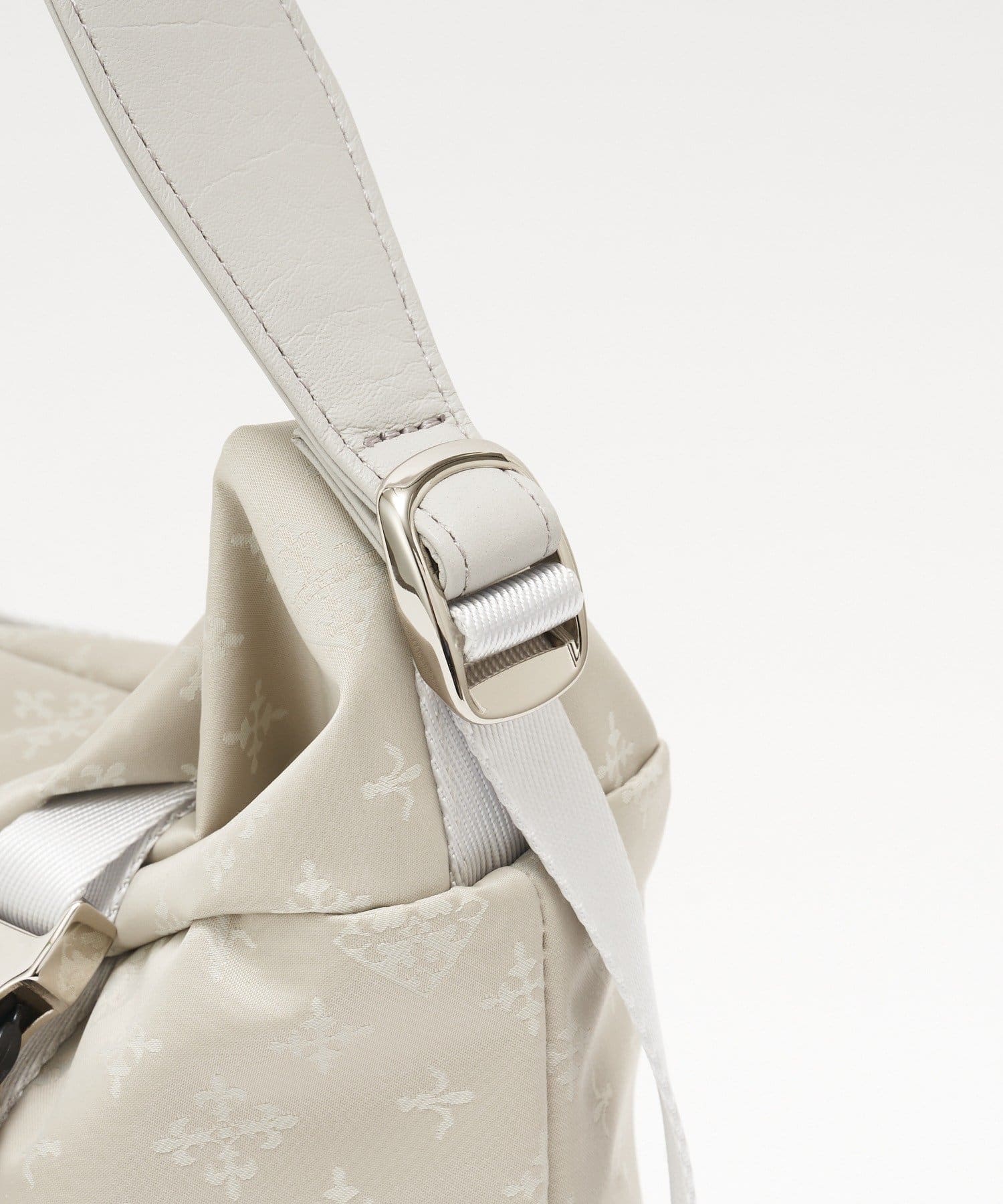 本体はナイロンジャカードを使用し、無地のように見えて光が当たるとモノグラムがふっと浮かび上がる、奥行きある表情が魅力です。
