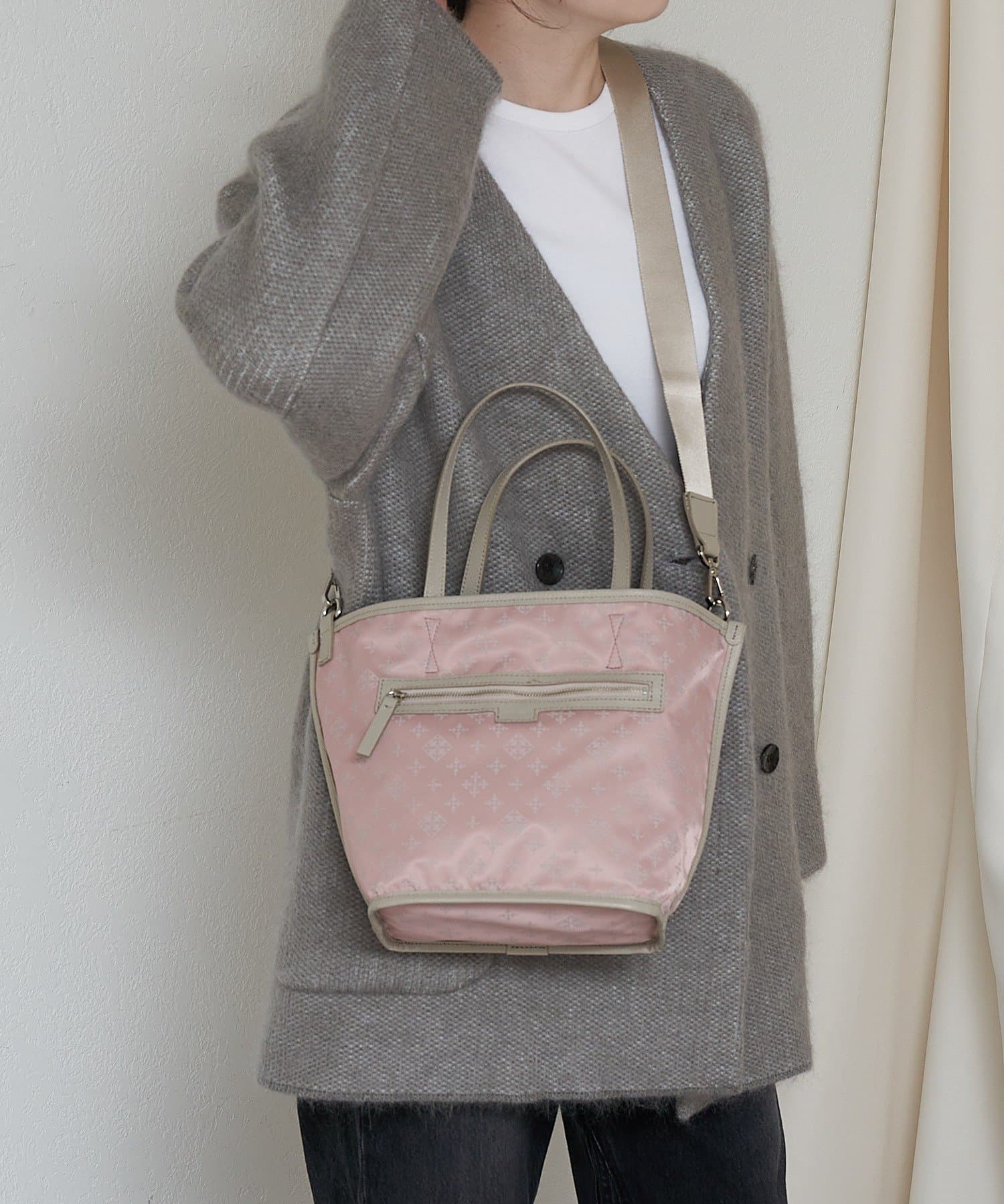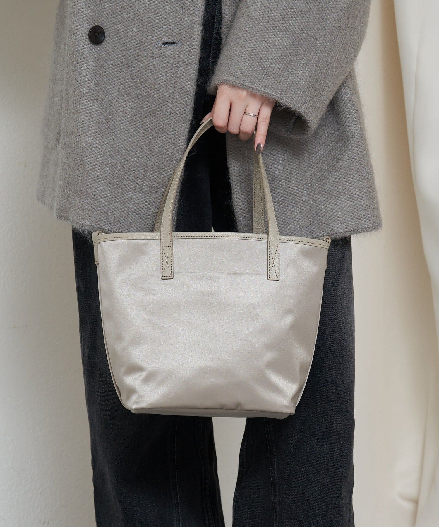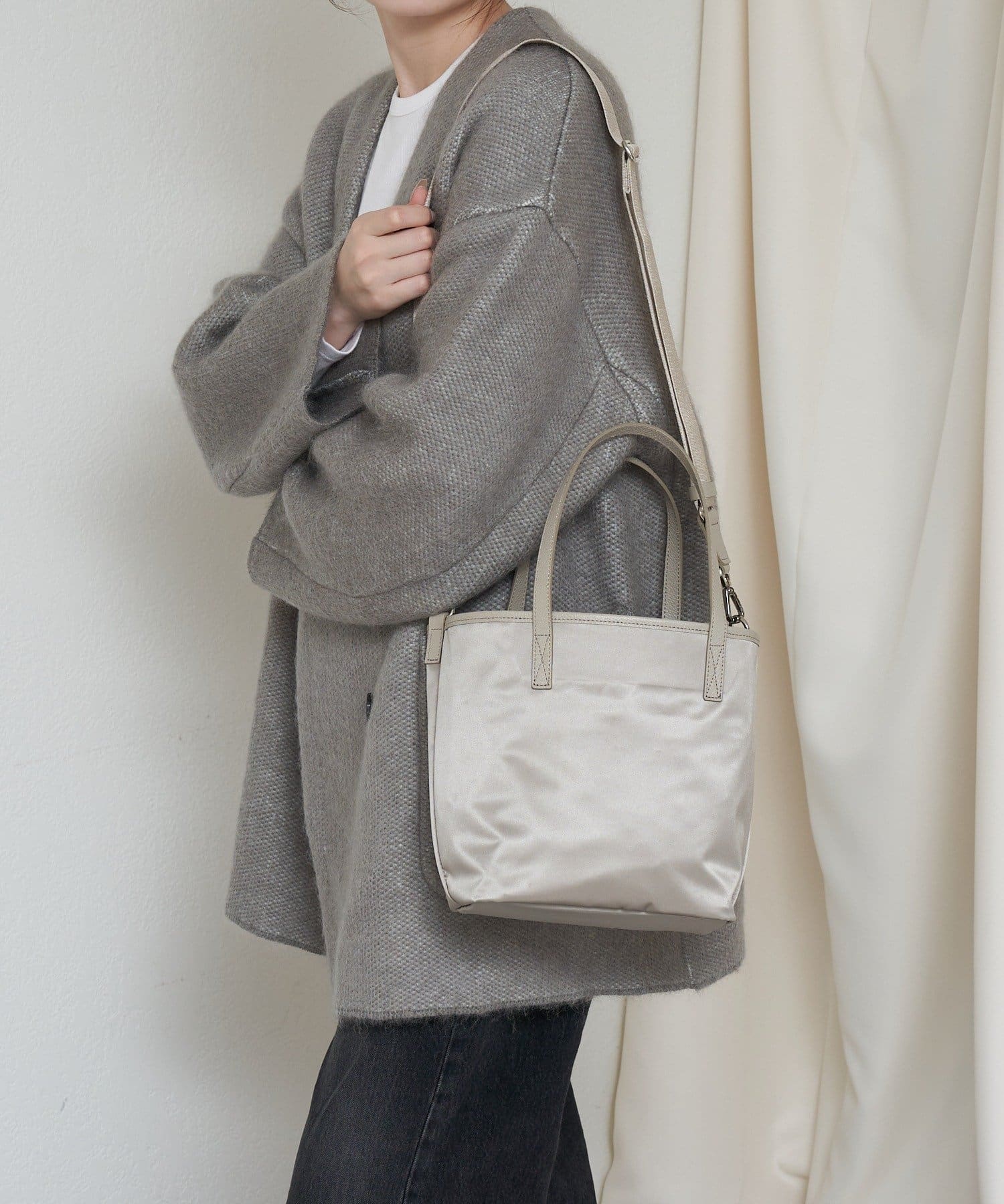 その日の装いに寄り添う2つの雰囲気を、1つのバッグで楽しめるアイテムです。