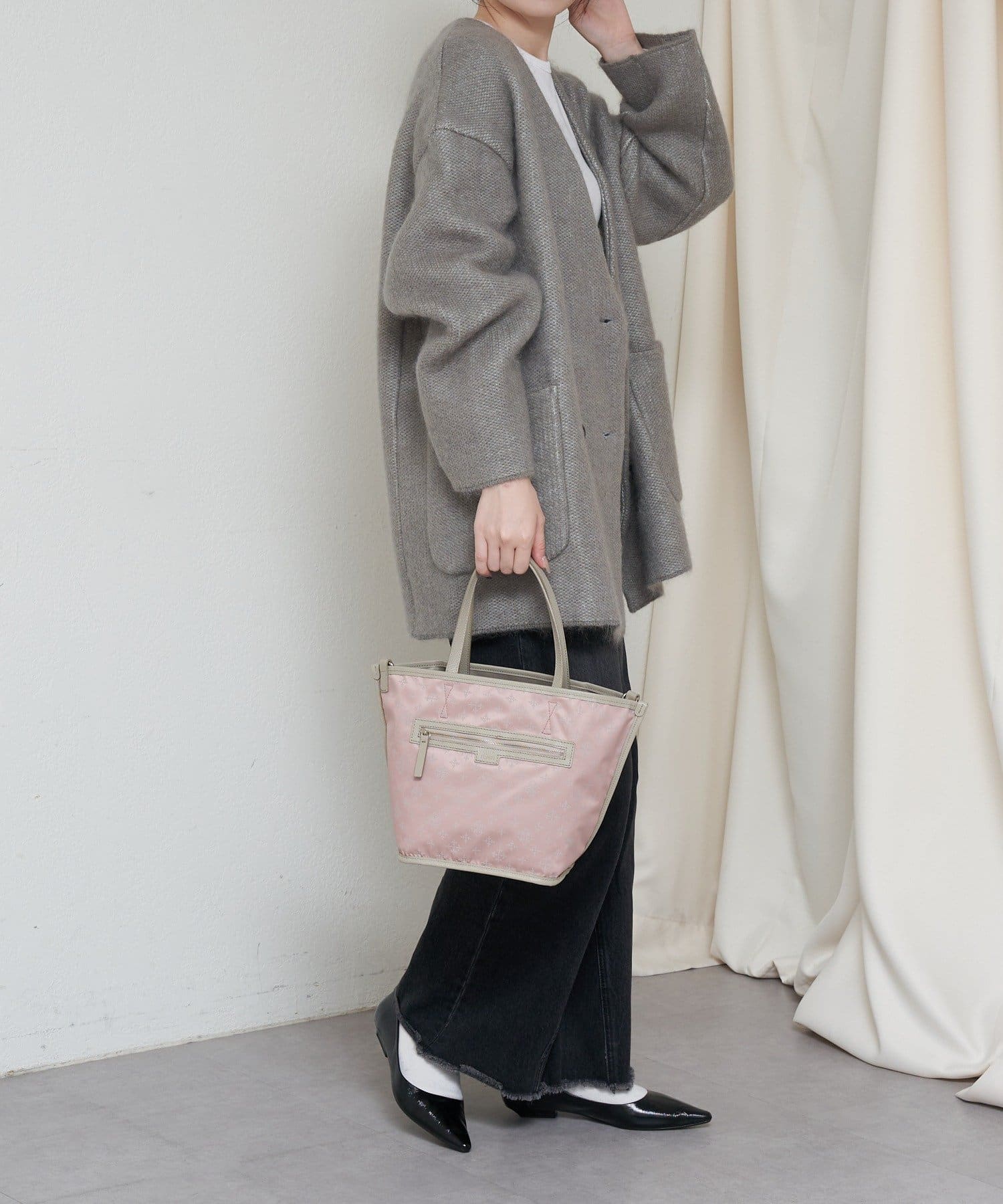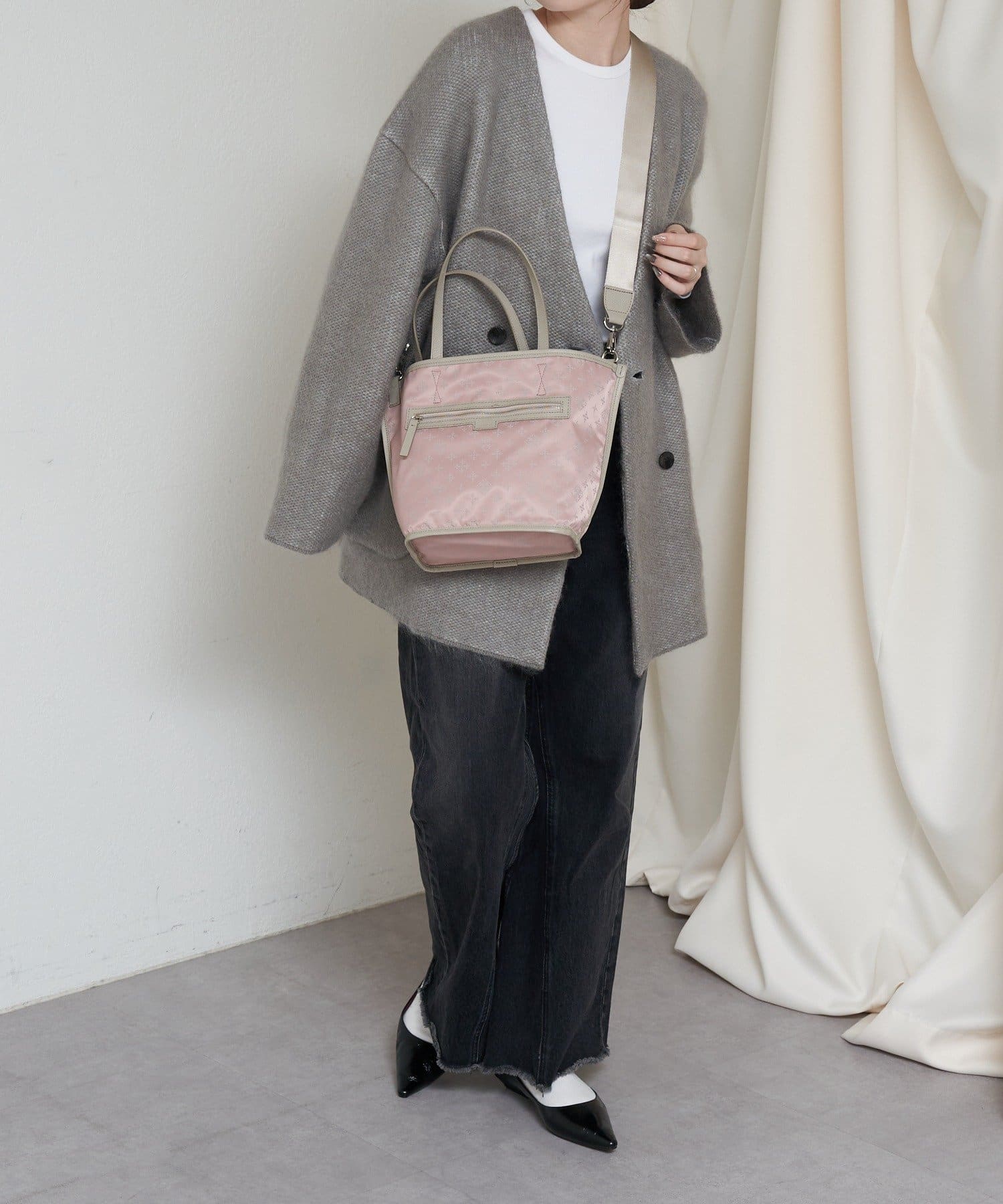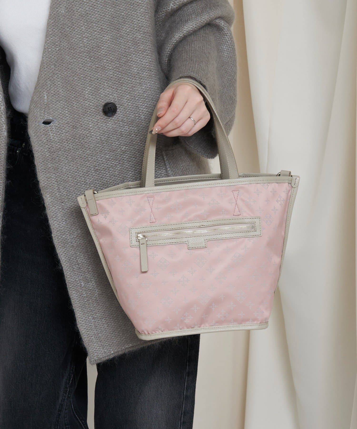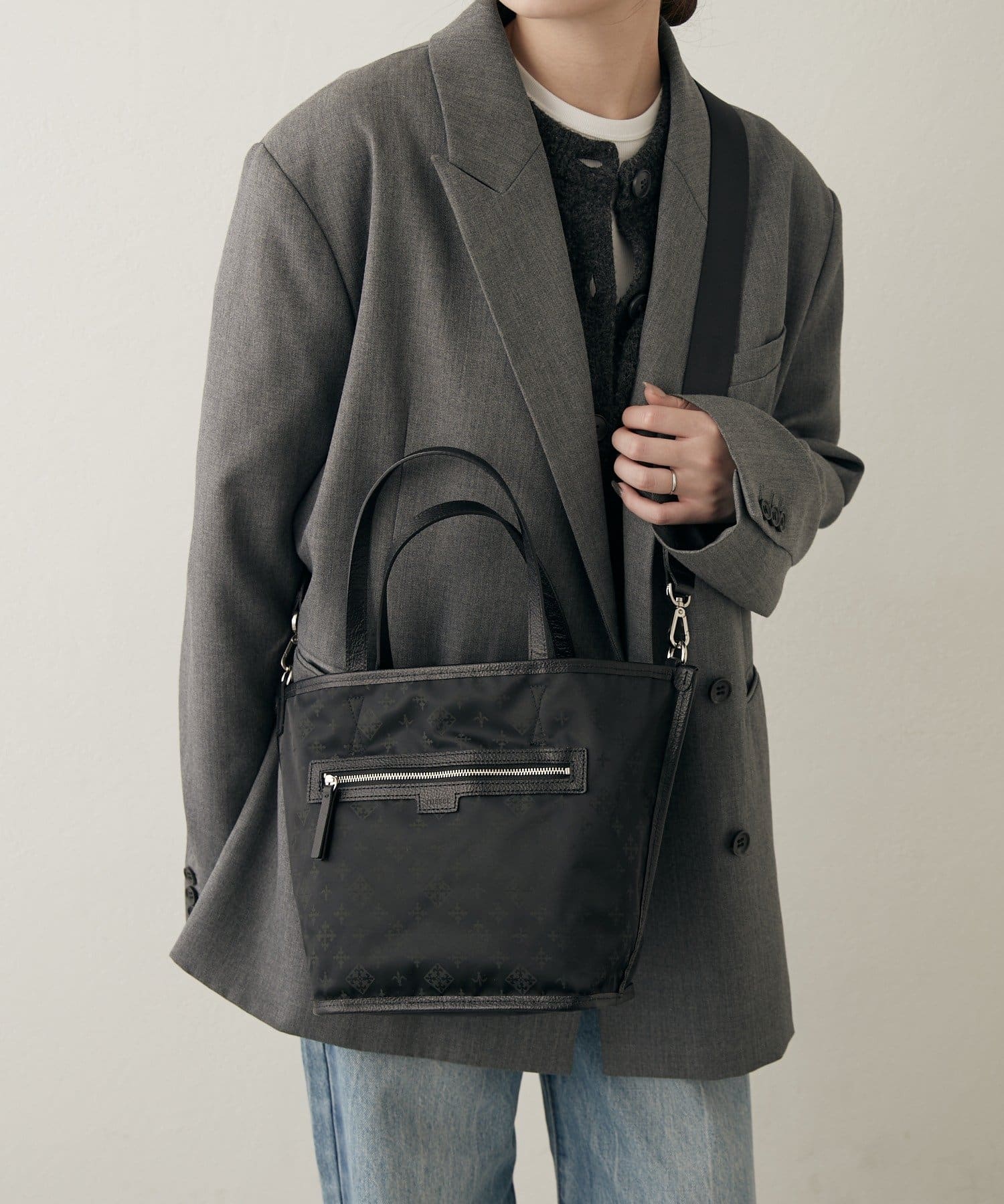 その日の装いに寄り添う2つの雰囲気を、1つのバッグで楽しめるアイテムです。