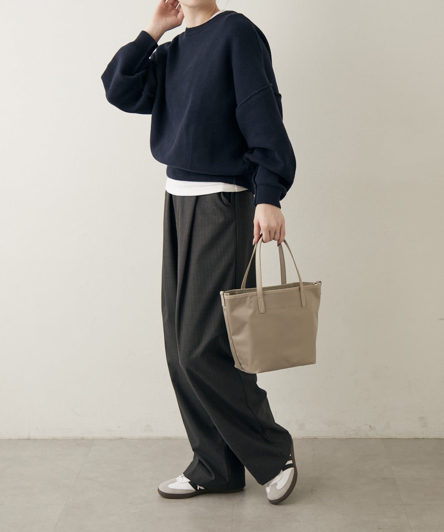 どちらの面で持ってもコーディネートに自然と馴染み、日常に使いやすいバランスです。