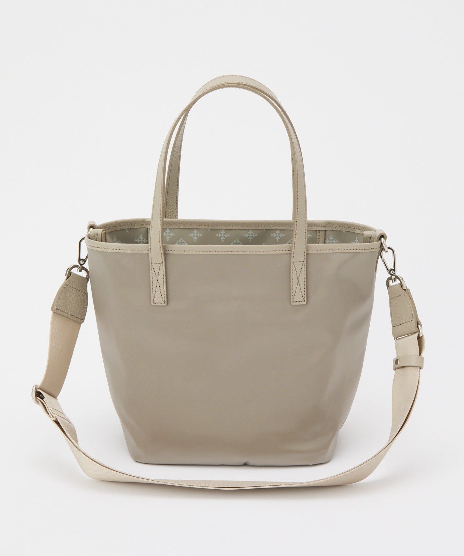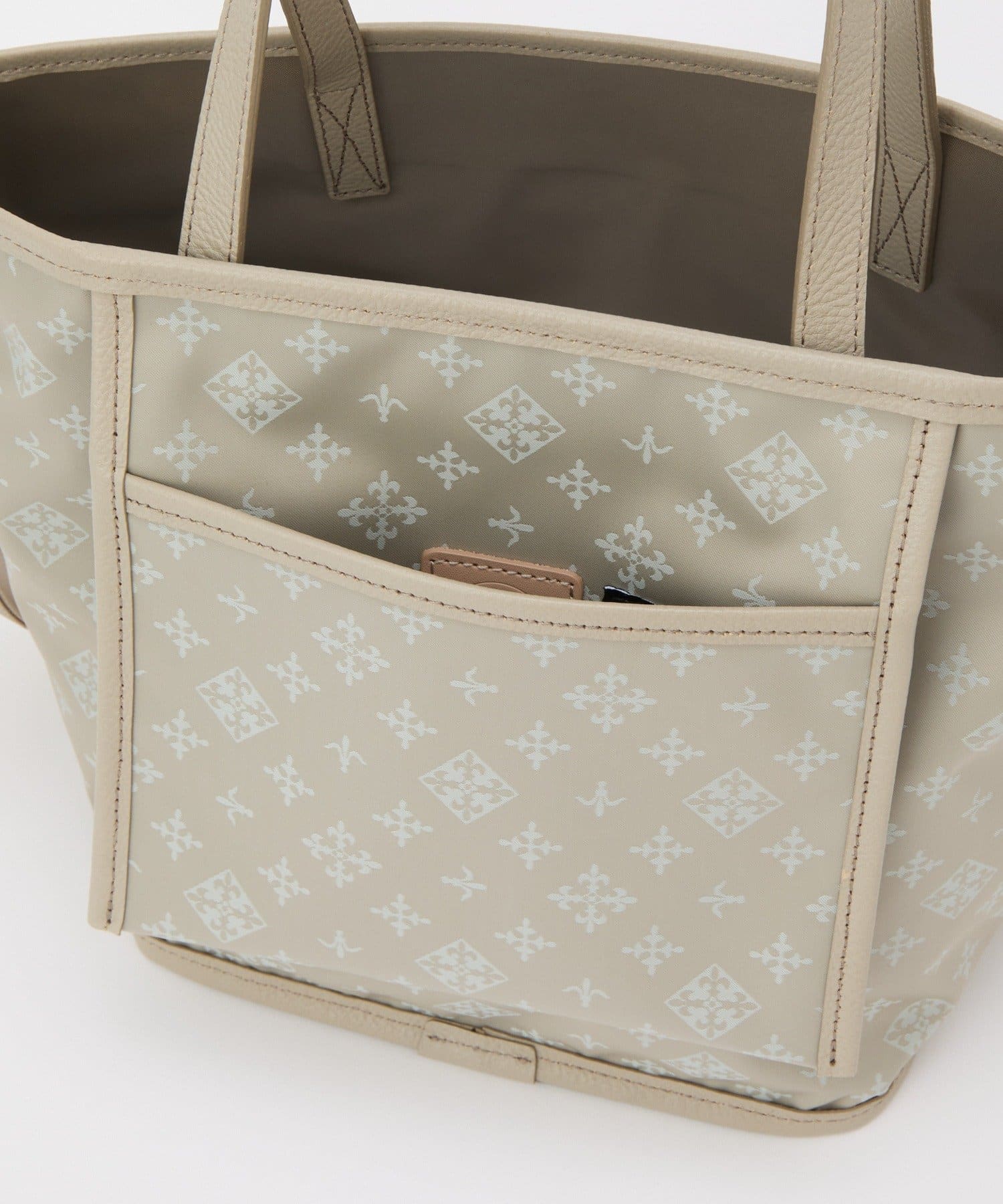 無地のクラウズナイロン面と、さりげない華やぎを添えるモノグラムジャガード面。