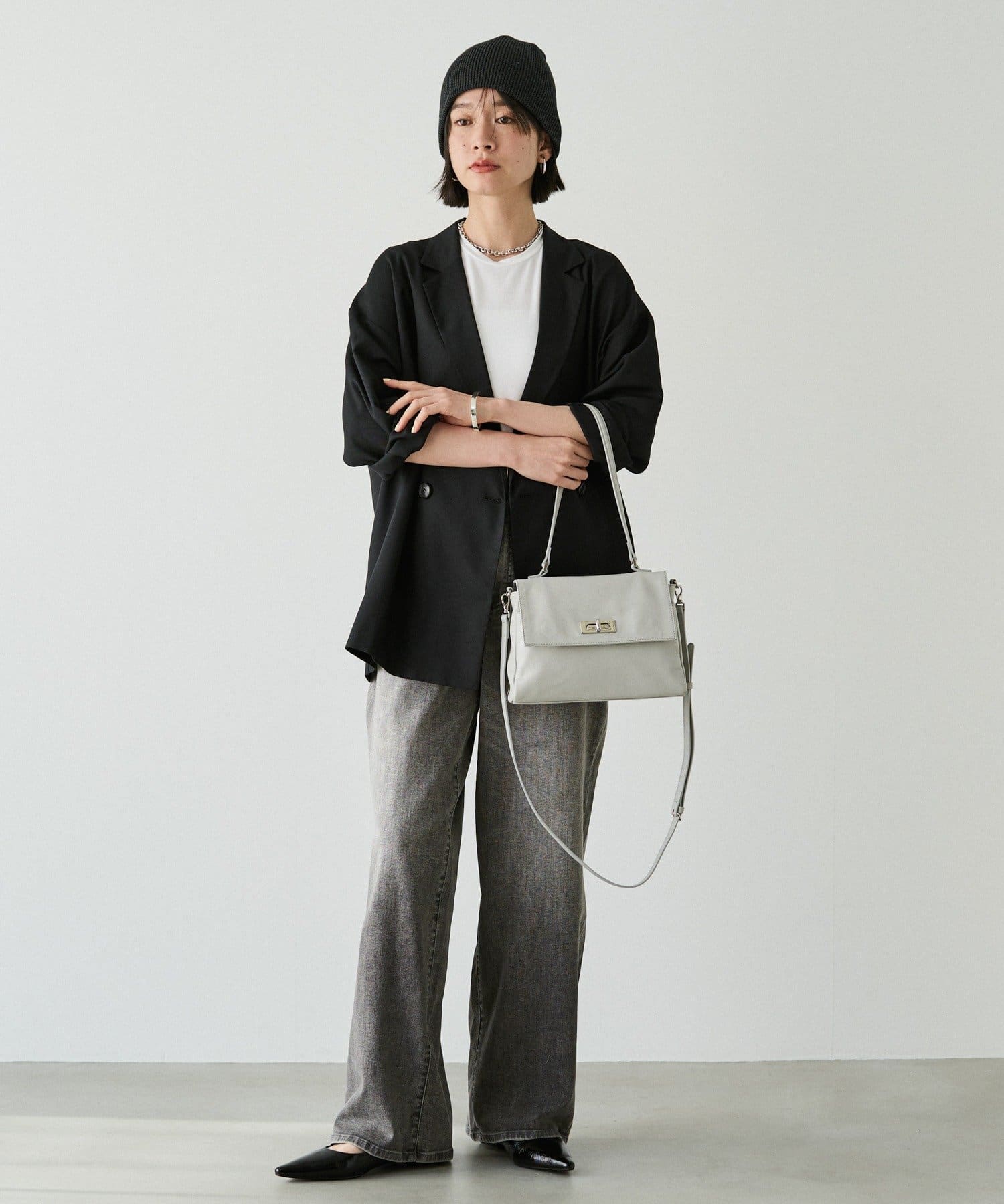 シルバーカラーのひねり金具が程よいアクセントとなり、きれいめにもカジュアルにもなじむ表情に。