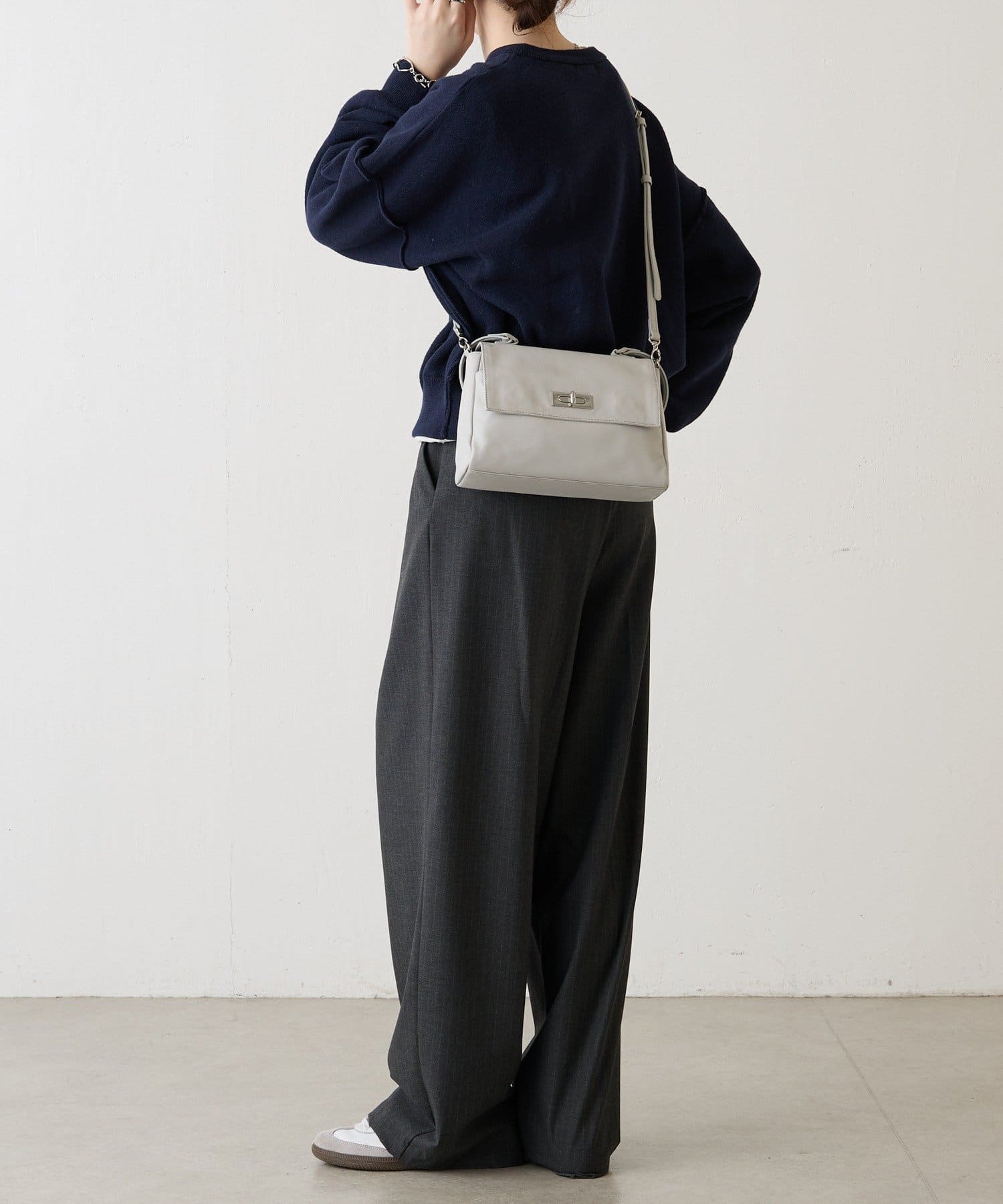 ひねり金具がきらりと光る、上品な佇まいのフラップミニトート。
