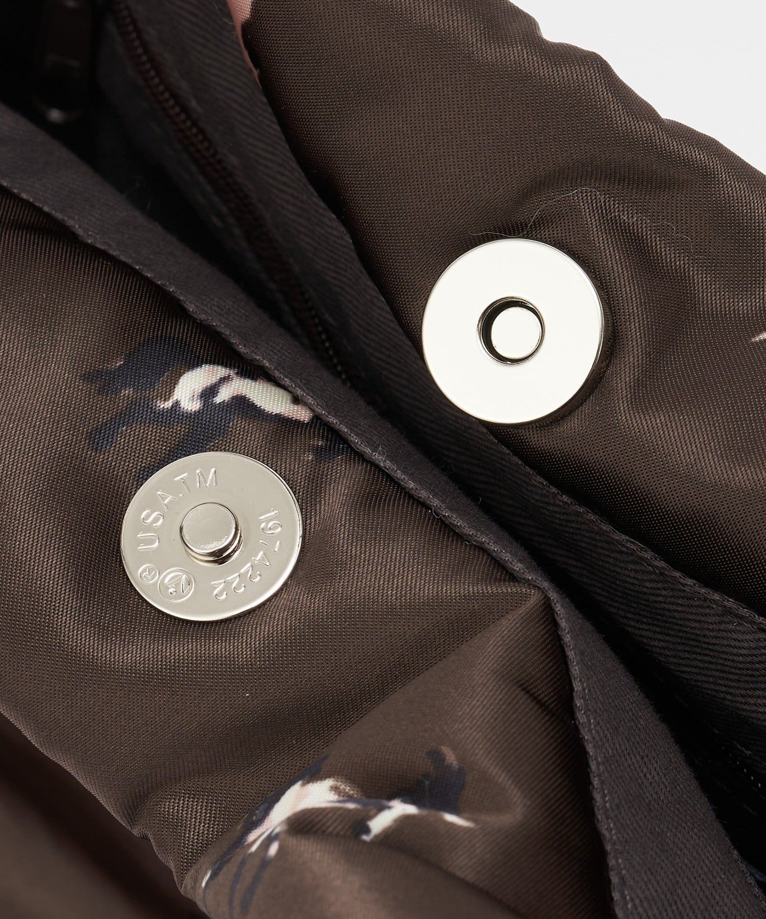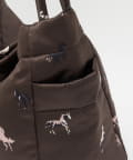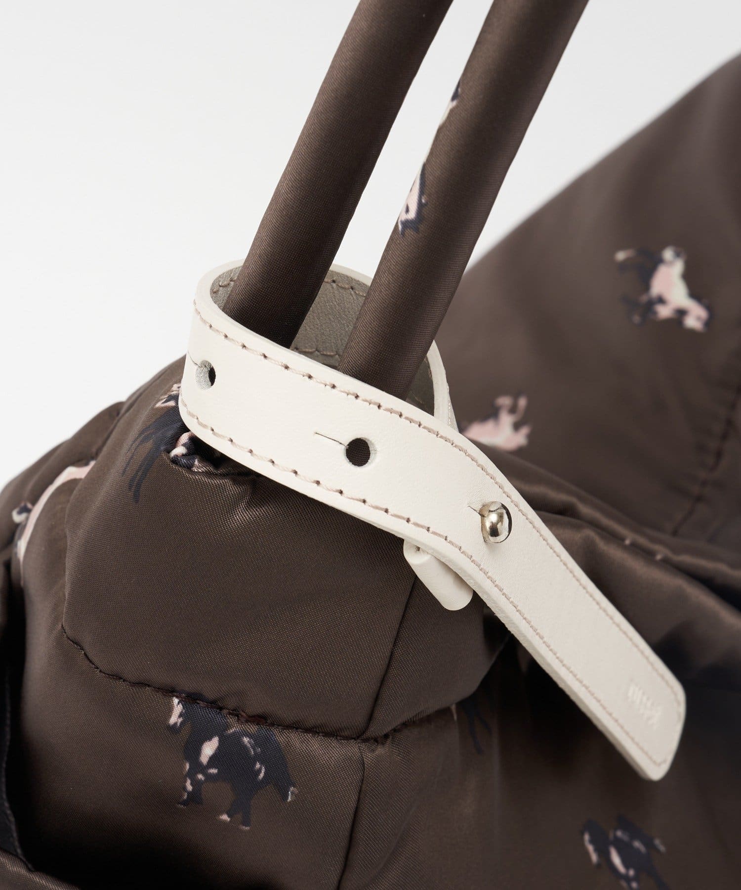 軽やかなクラウズナイロンにWOODLANDERならではの品よく映えるホースプリントをあしらったトートバッグ。
