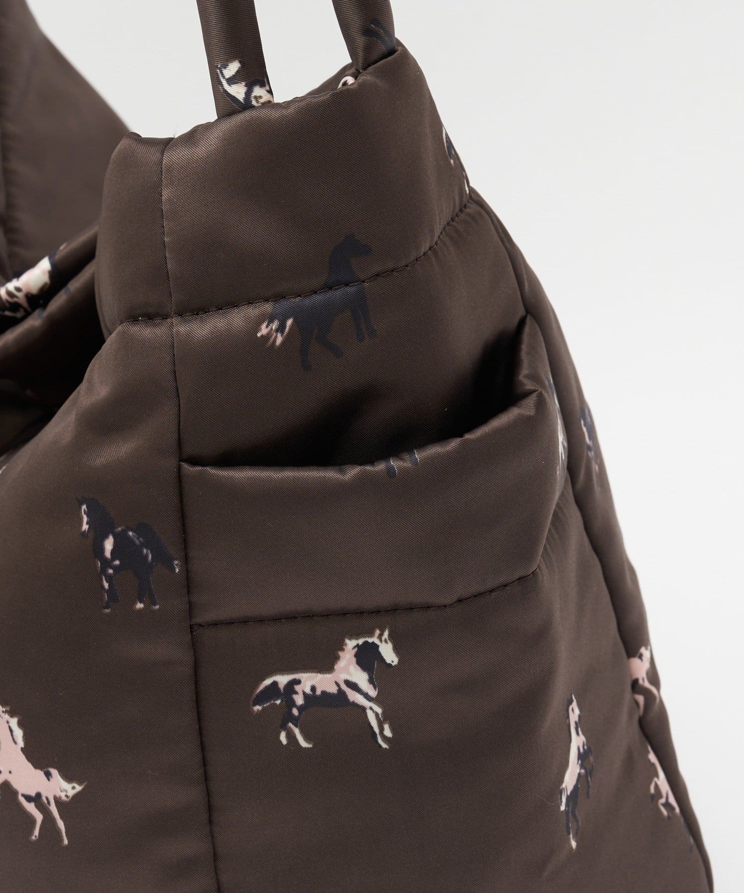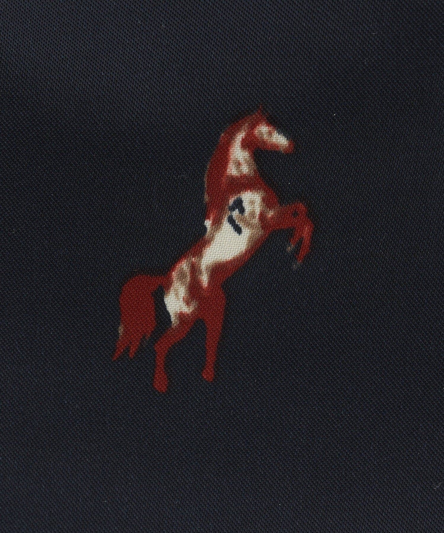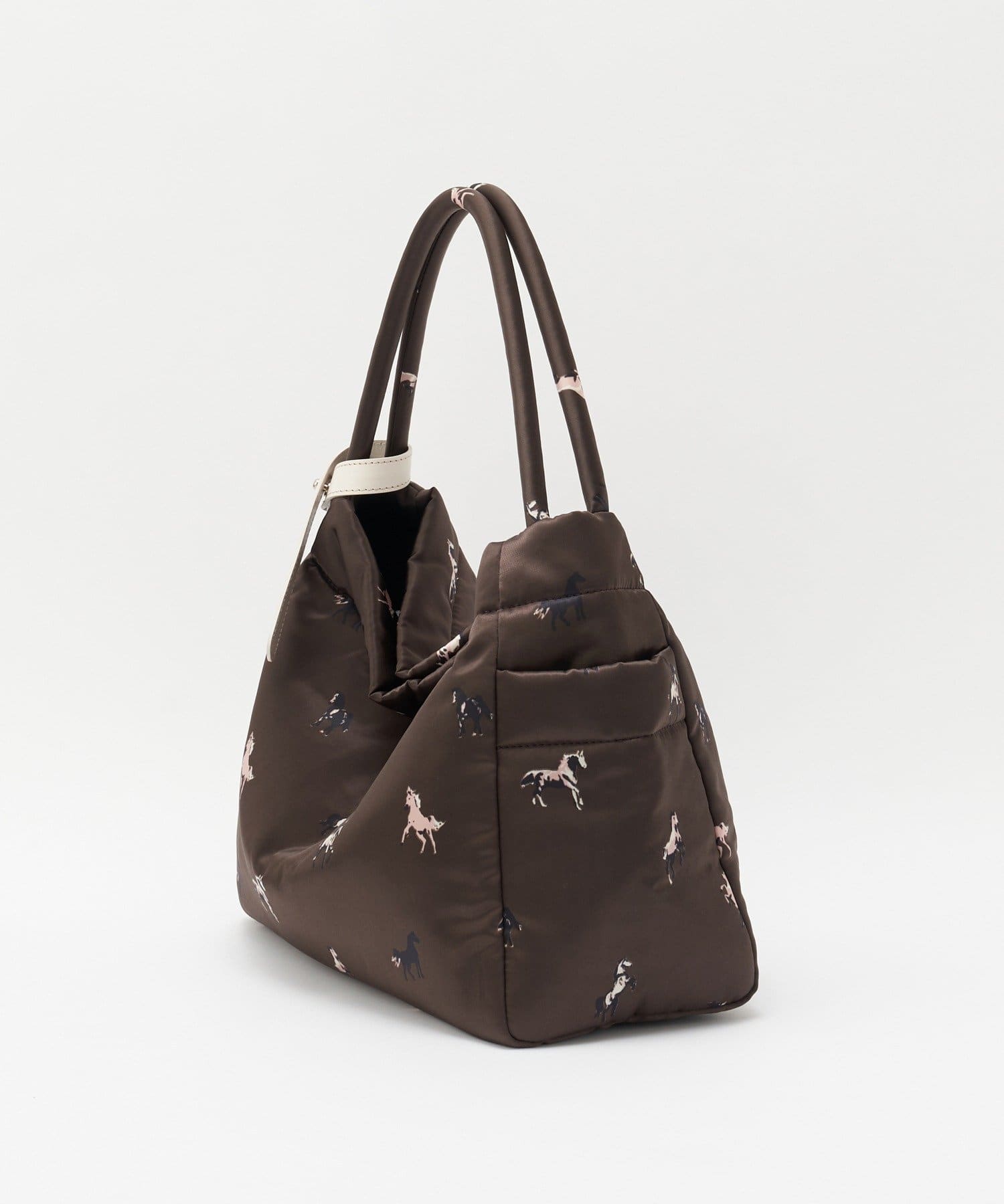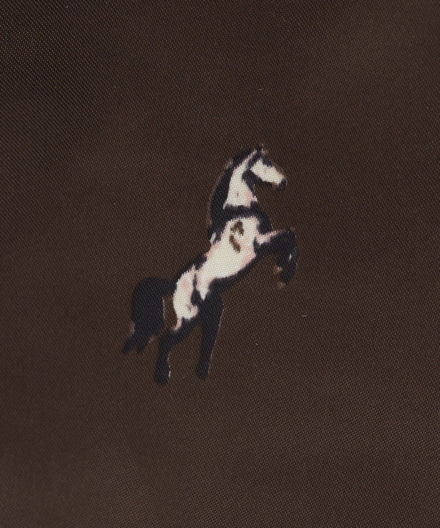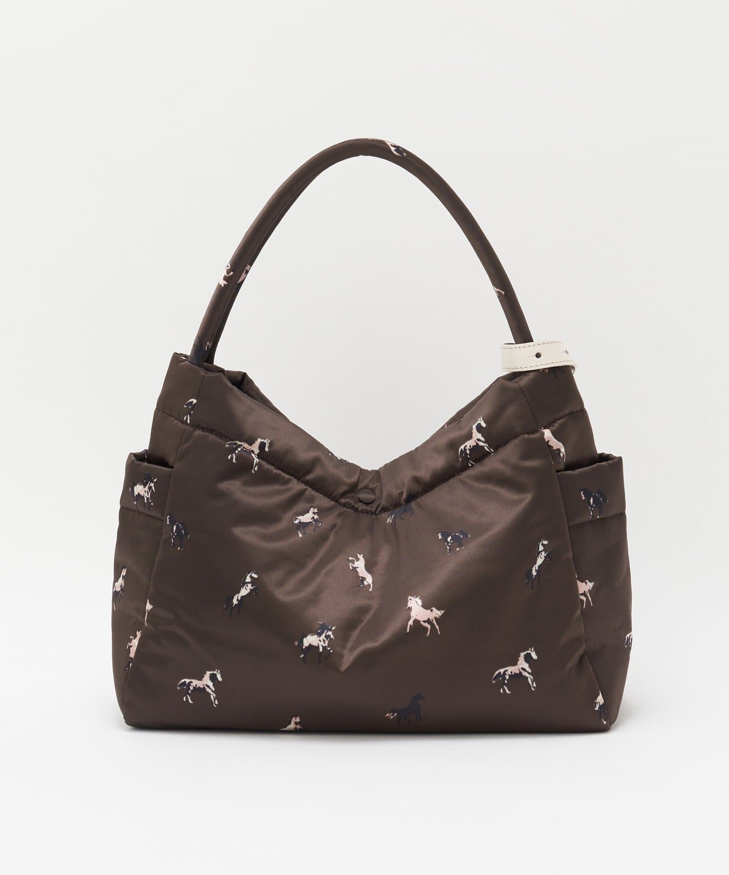 優しい光沢のナイロンにホースモチーフがさりげなくリズムを添え、装いを品よく引き立てます。