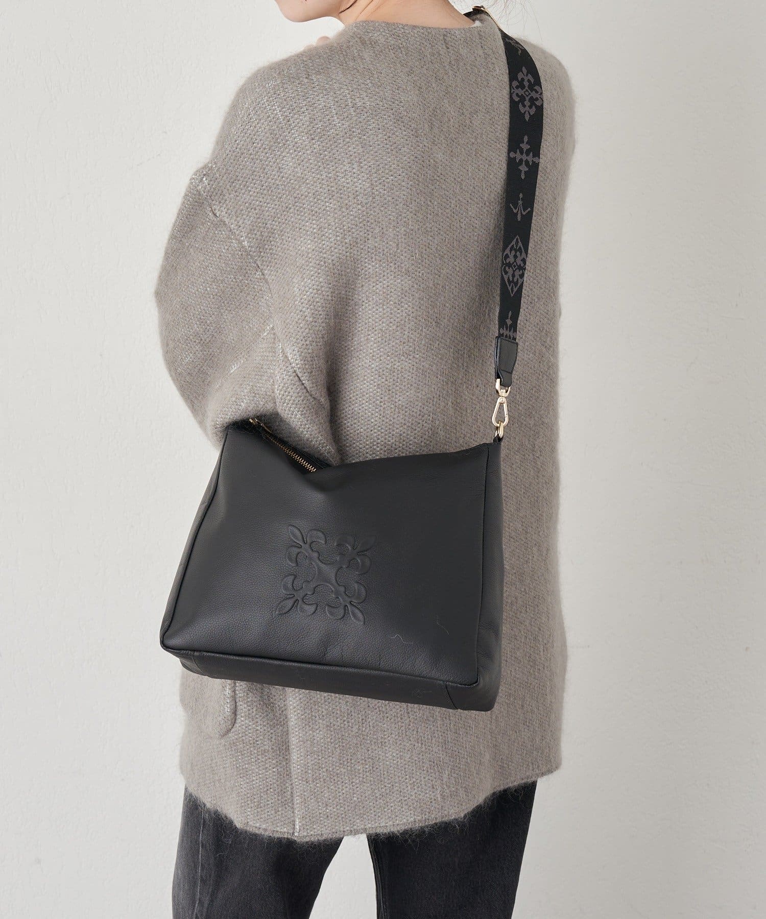 中央より少し下に配置したエンボスモノグラムは、バッグ上部をくたっとさせて持っても隠れない位置にこだわりました。