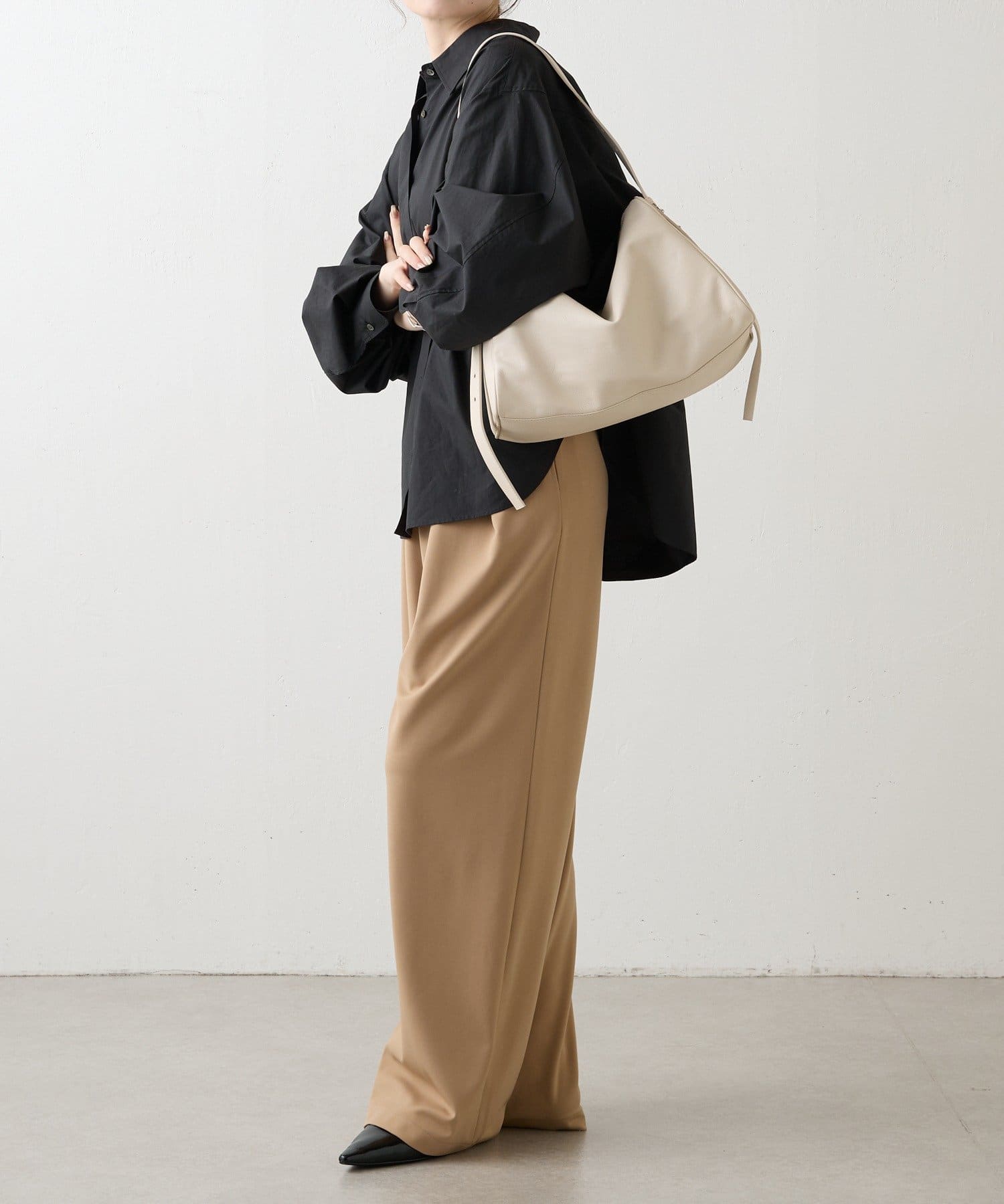 柔らかなレザーの落ち感を活かし、持ち方や荷物量によって表情が変わる一品です。