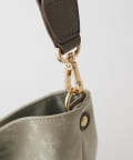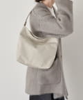 短めのレザーワンショルダーは端が細く中央に向かって幅が太くなる仕様で肩に馴染みやすく、付属のナイロンロングベルトに替えれば斜め掛けでよりアクティブに。