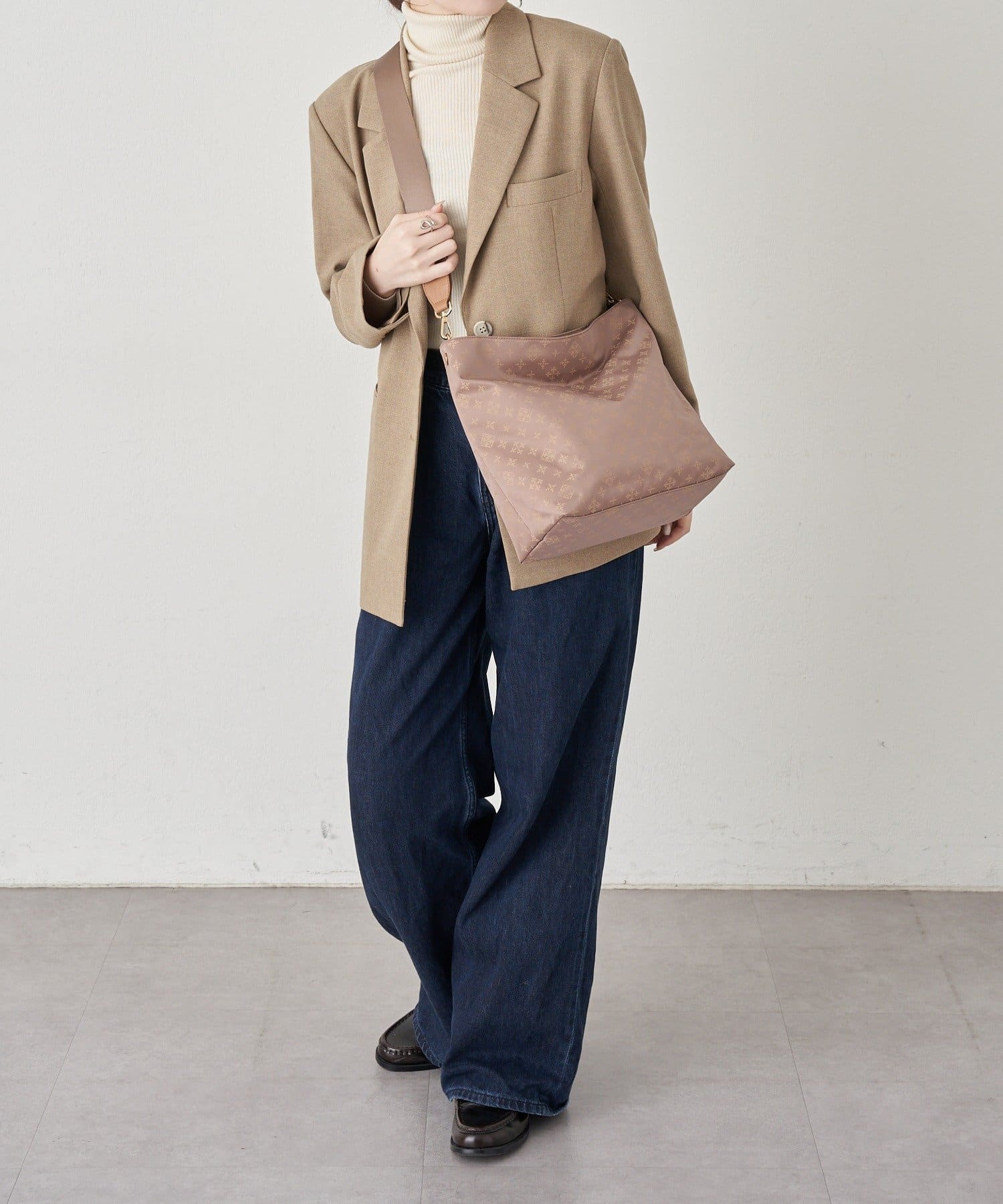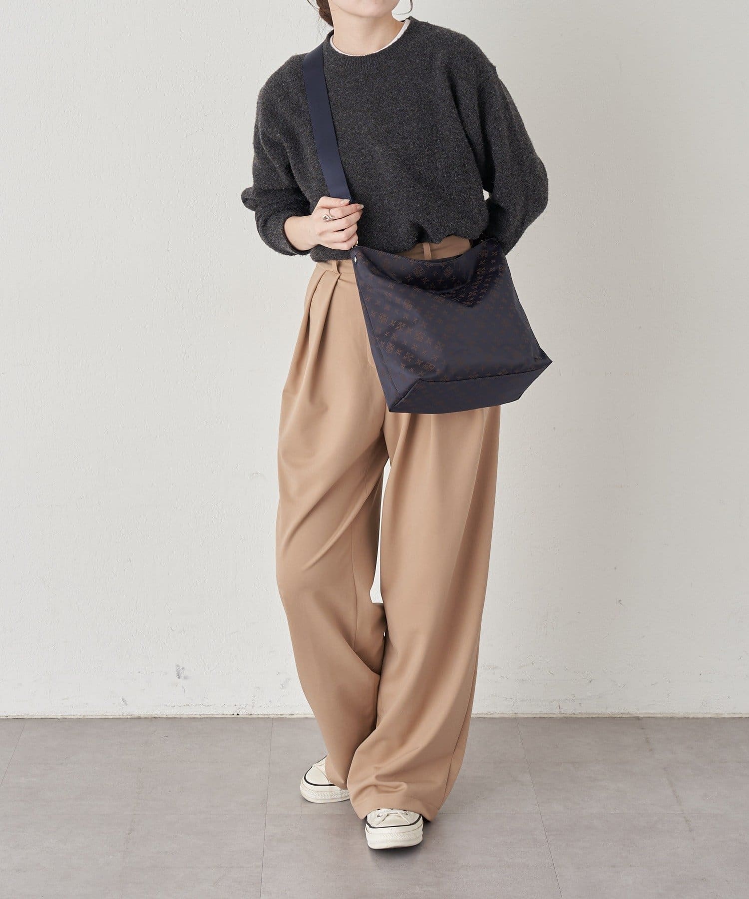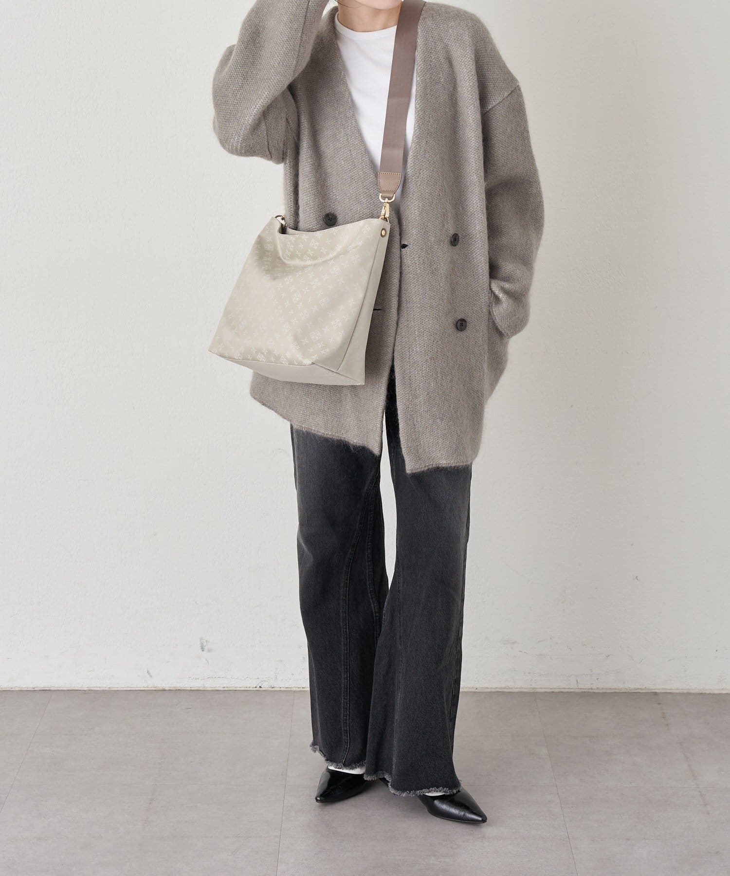 スクエアシルエットを基調に、ジャガード特有の織り柄が控えめなアクセントを添えています。