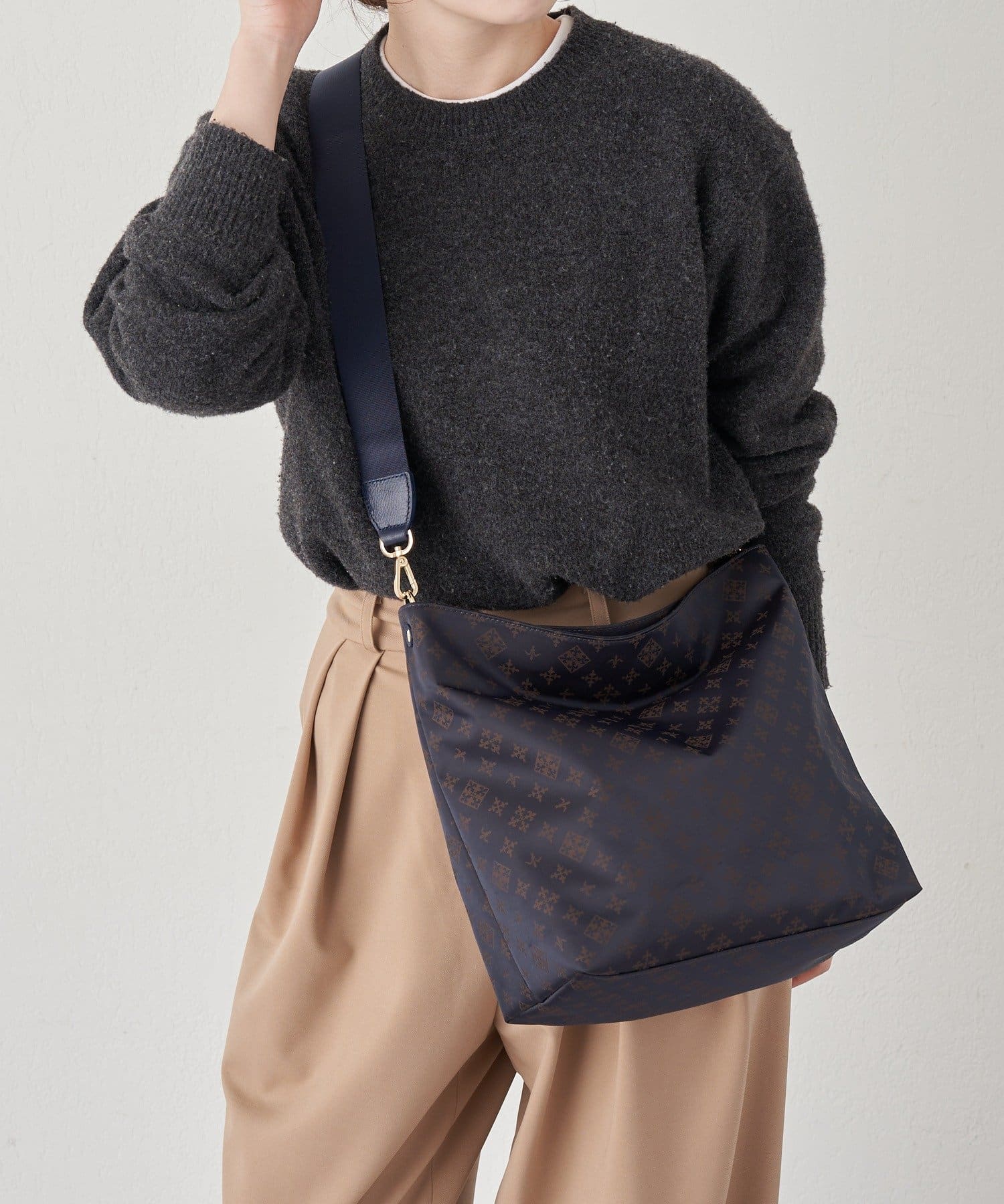 ナイロンジャガードの上品な表情と使いやすさを両立させた2WAYショルダーバッグ。