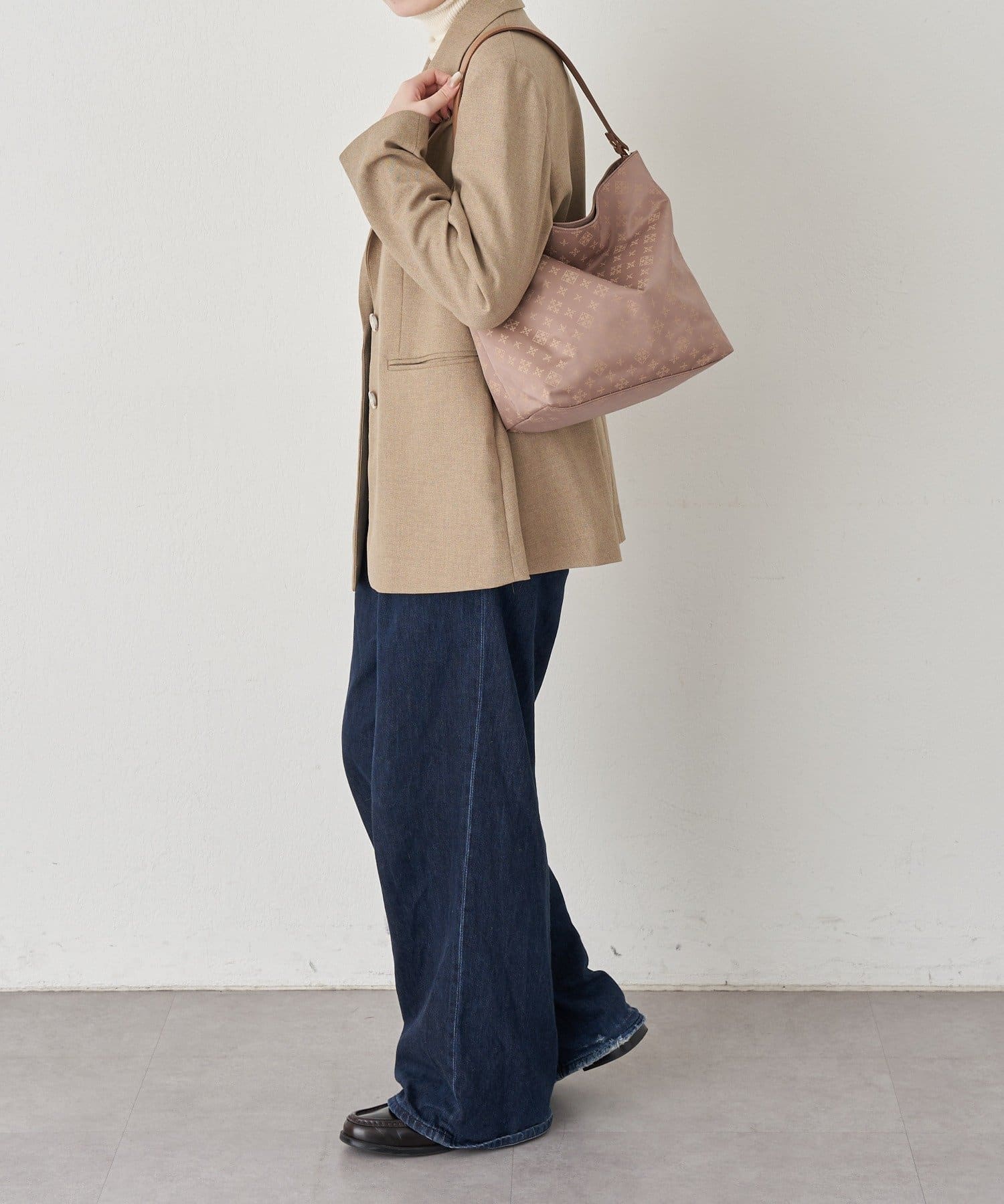 スクエアシルエットを基調にしたバッグにジャガード特有の織り柄が控えめなアクセントを添えています。