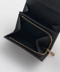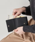 上品な丸プレートがアクセントになったハーフウォレット。手のひらに収まるサイズながら、必要なものをしっかり収納できる実力派。