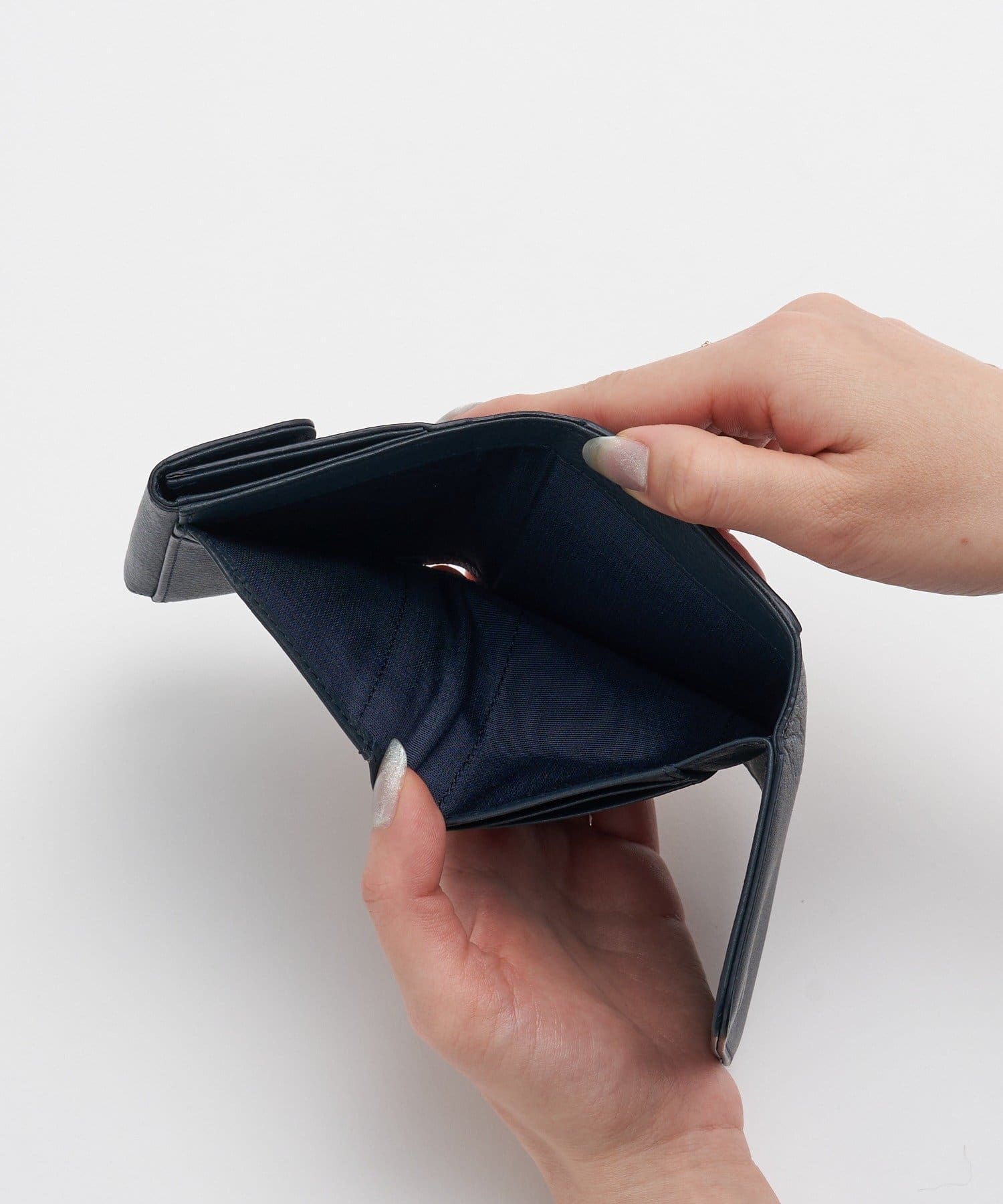 ・コンパクトな三つ折りながら、お札収納はパーツで高さを確保し折れ幅を最小限に
