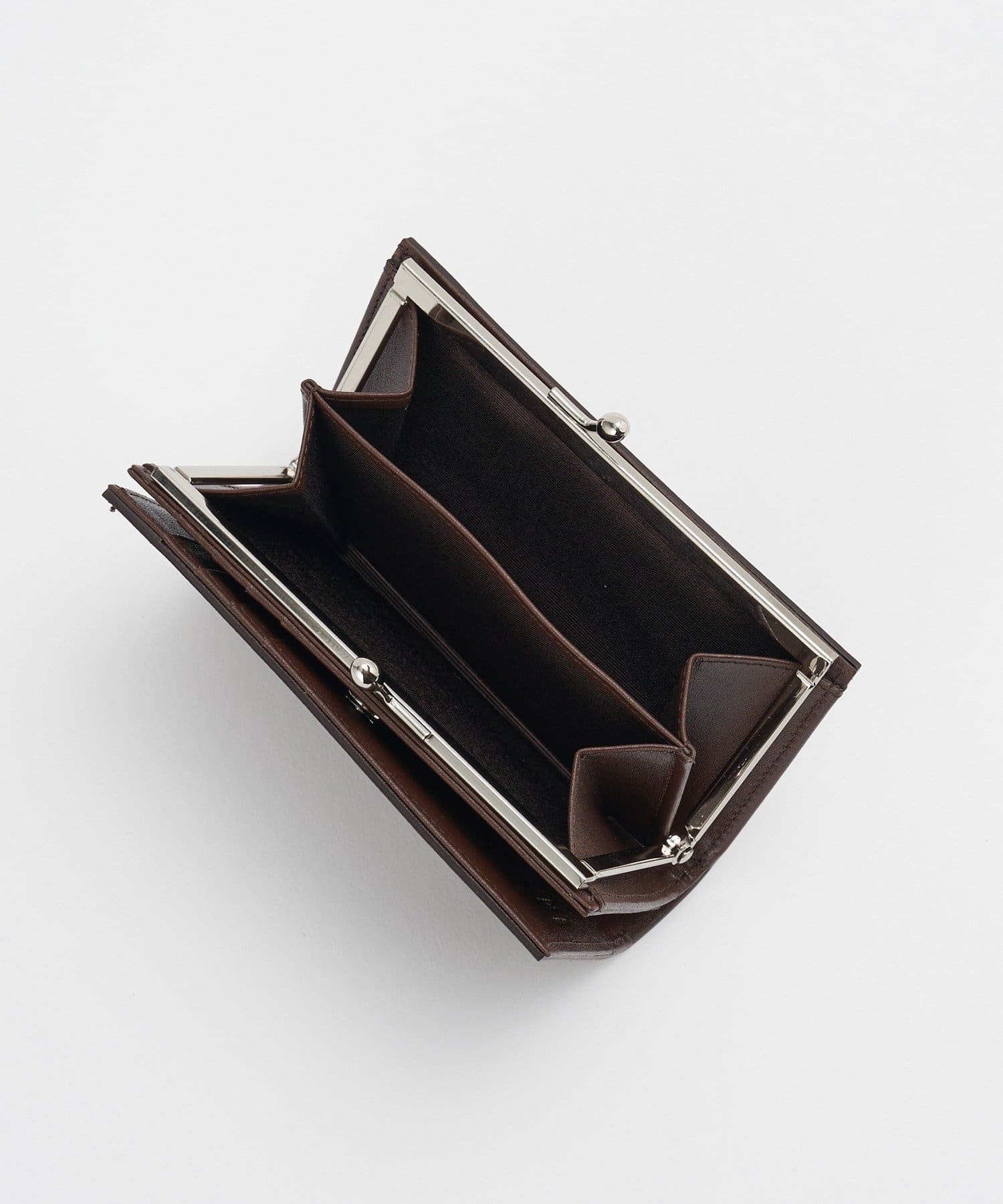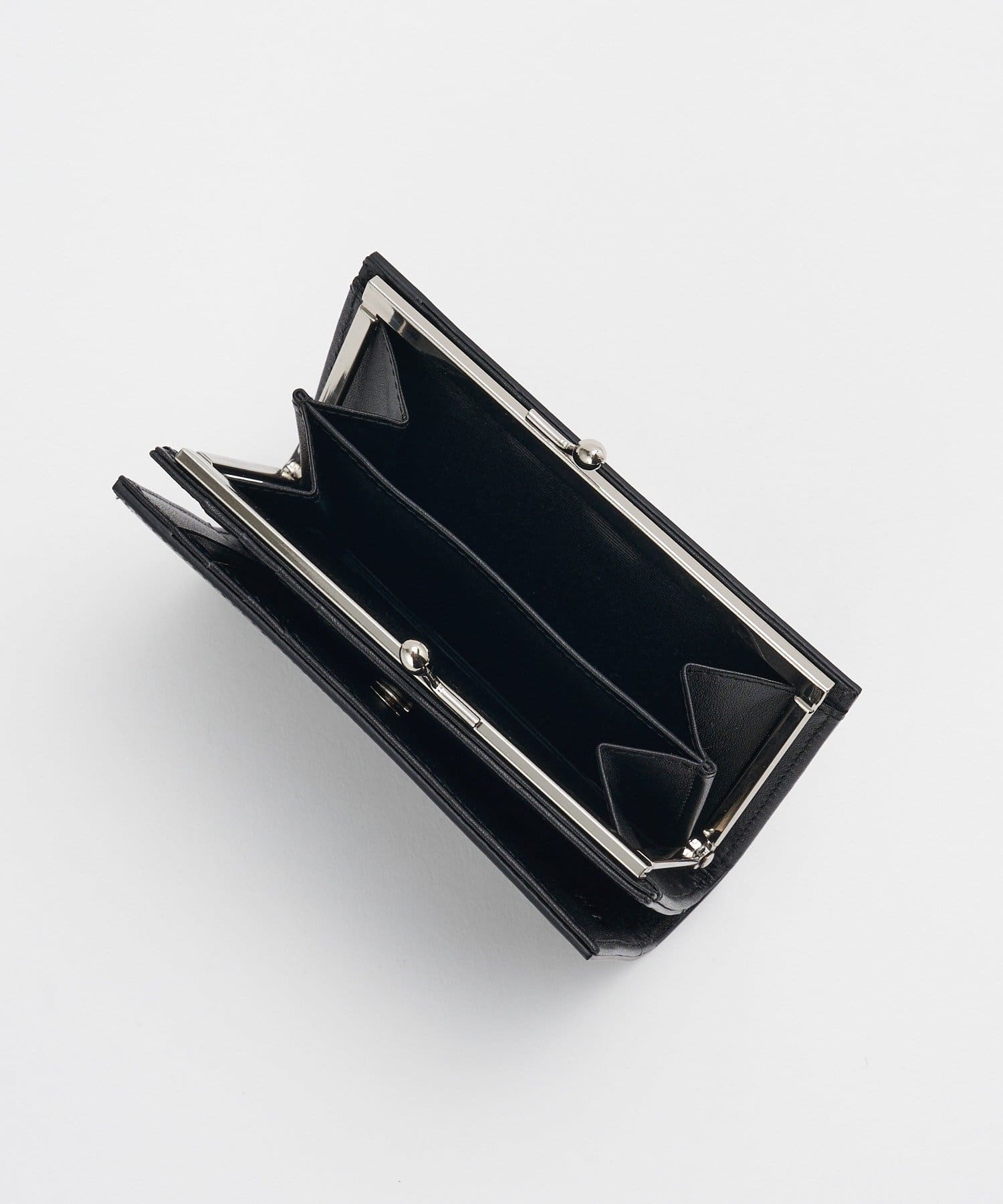シルバーカラーのがま口金具が、全体を引き締めながら上品な印象を添えています。