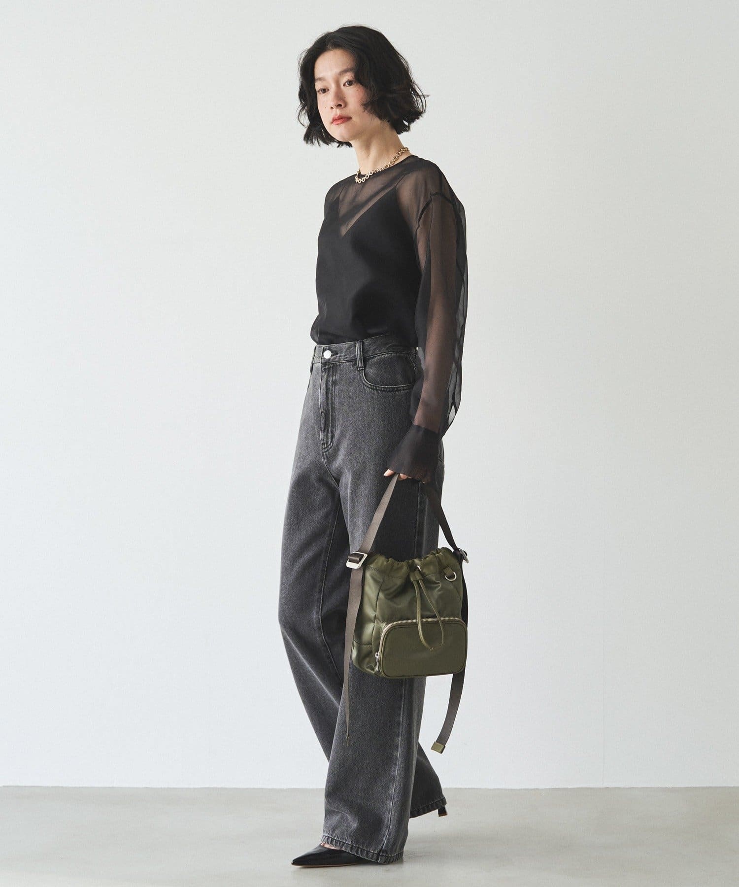 巾着の絞り具合やショルダーベルトの長さ調整によって、表情を変えて楽しめるデザイン。