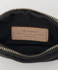 ・レザーの丸紐と同素材を使用したファスナー引手で、統一感のあるデザイン