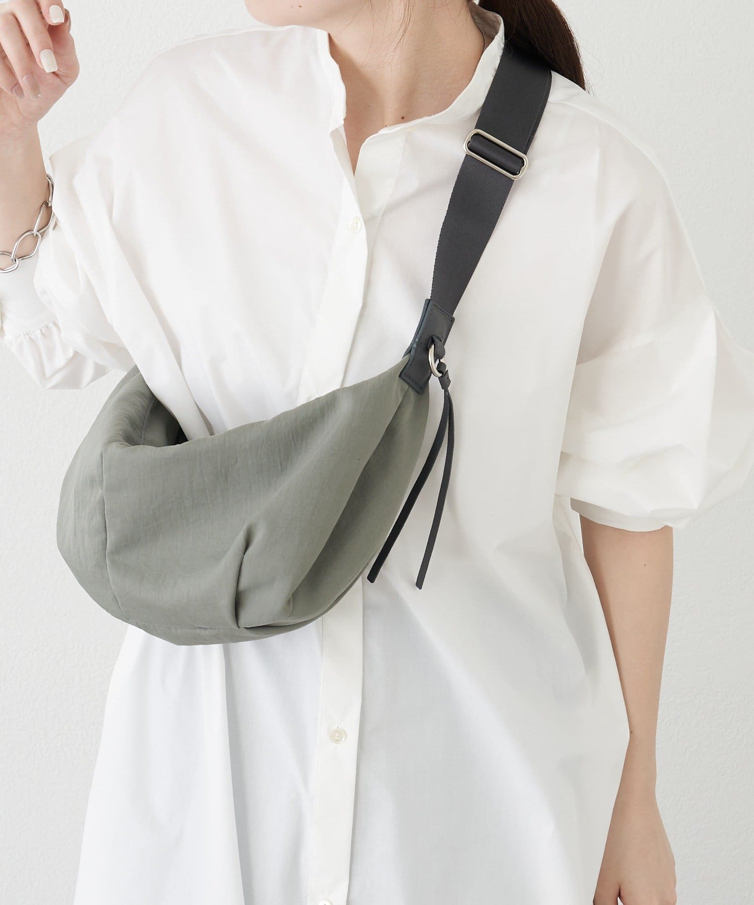 軽やかに持てて、日常にすっとなじむナイロン素材のボディバッグ。