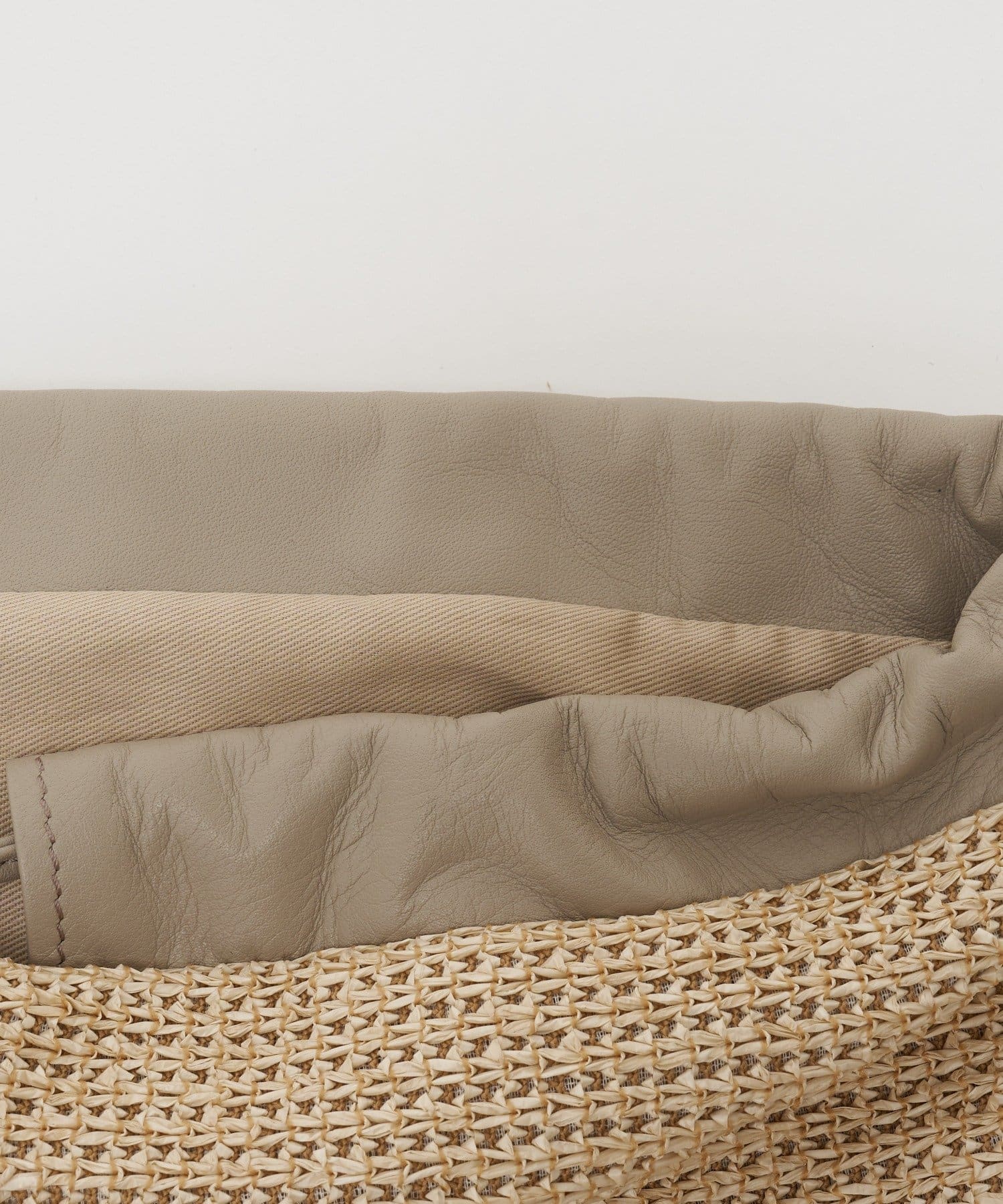 ・ナイロンラフィア×クラウズナイロン×レザーの異素材コンビ