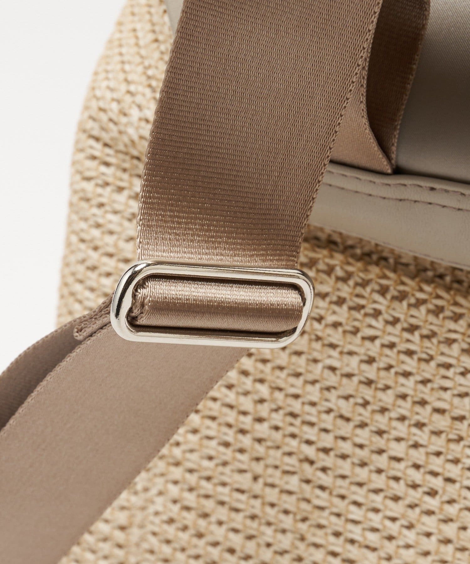 ラフィアの編み地を思わせる立体的な表情が魅力のナイロン素材。