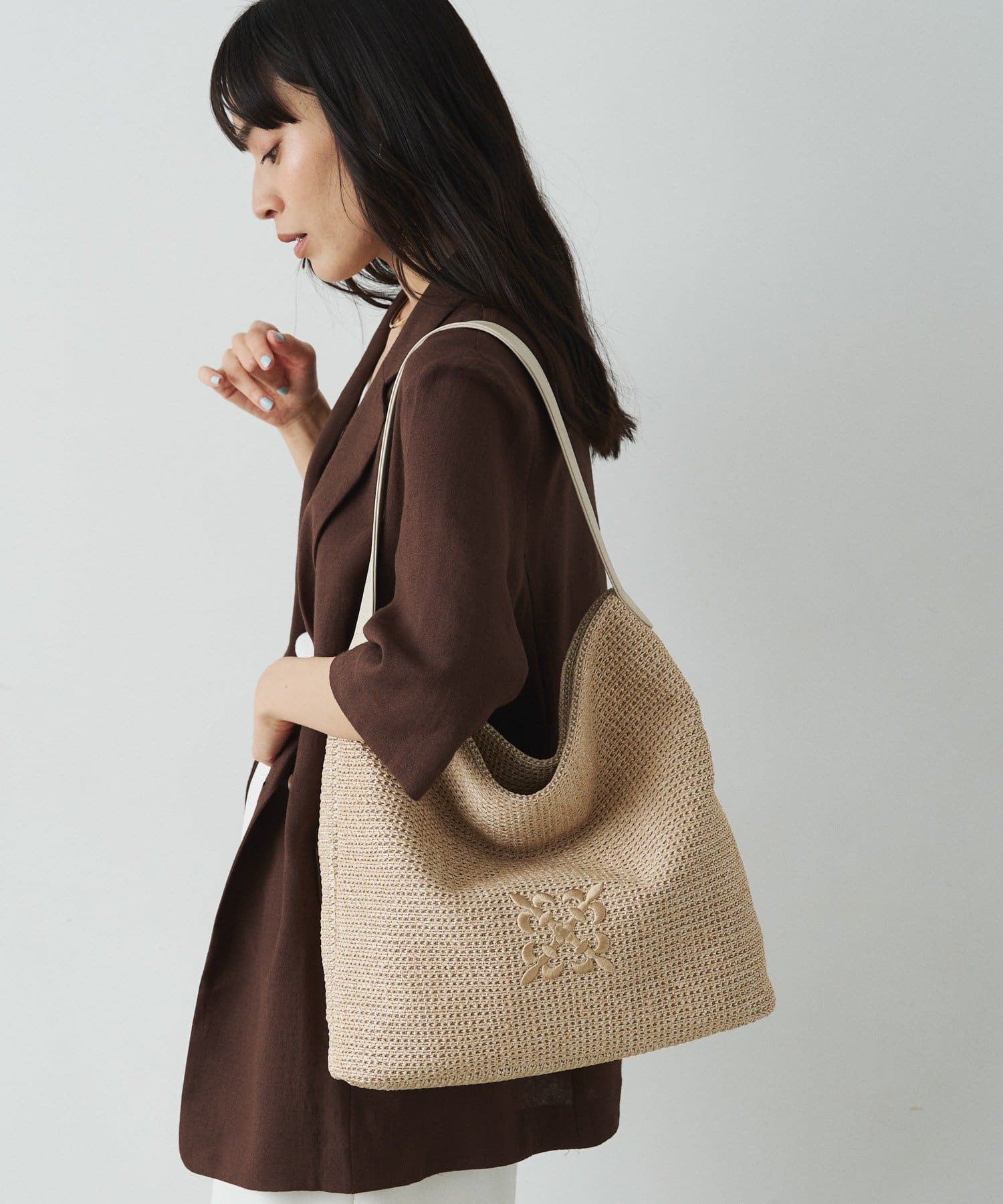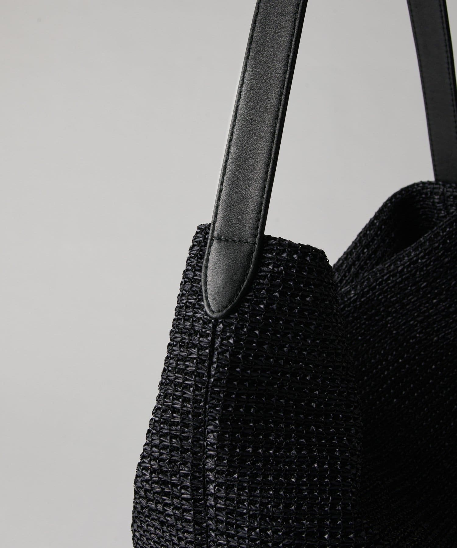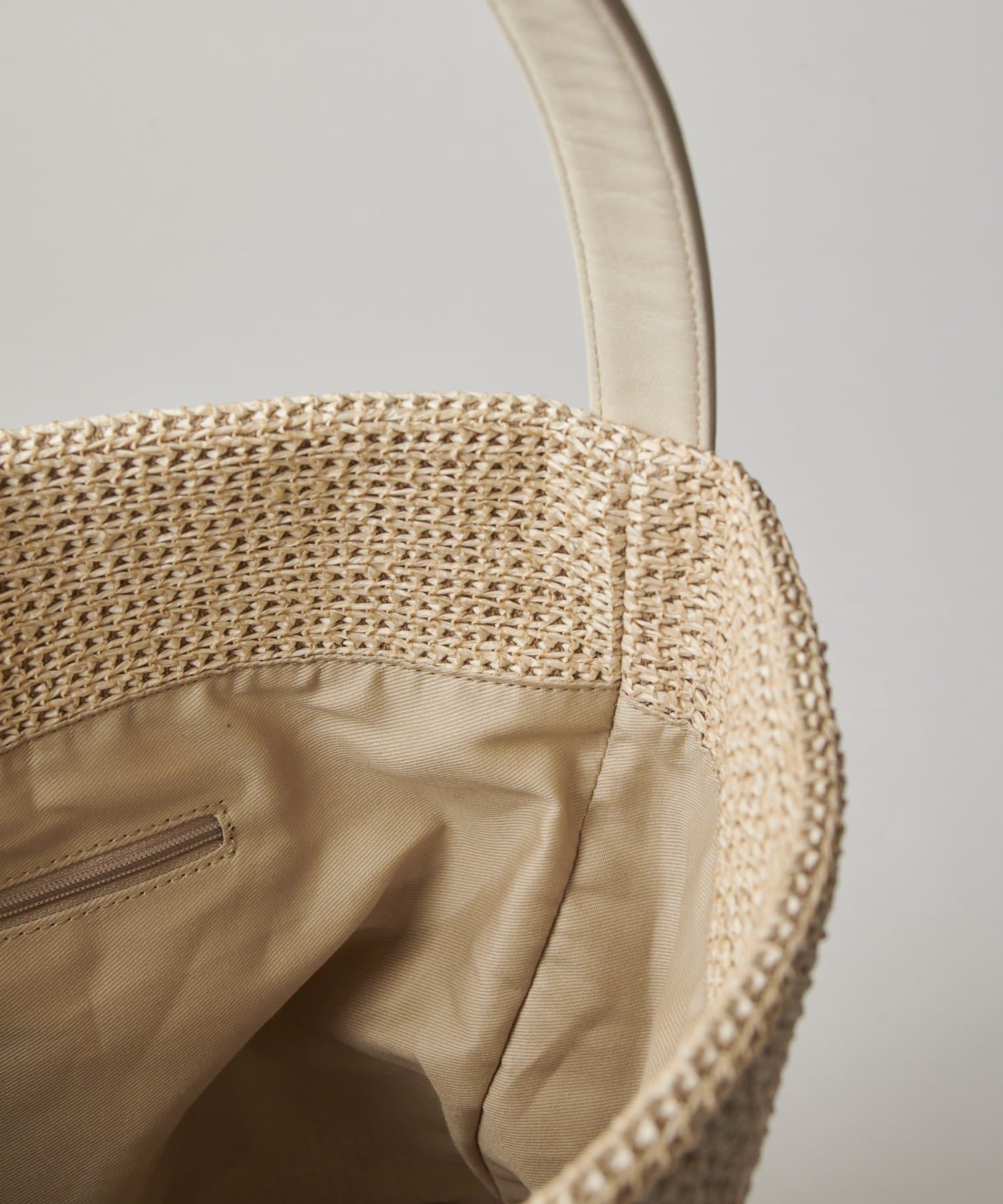 金具を使わないミニマルな設計で、ナイロンラフィアの風合いをより際立たせています。