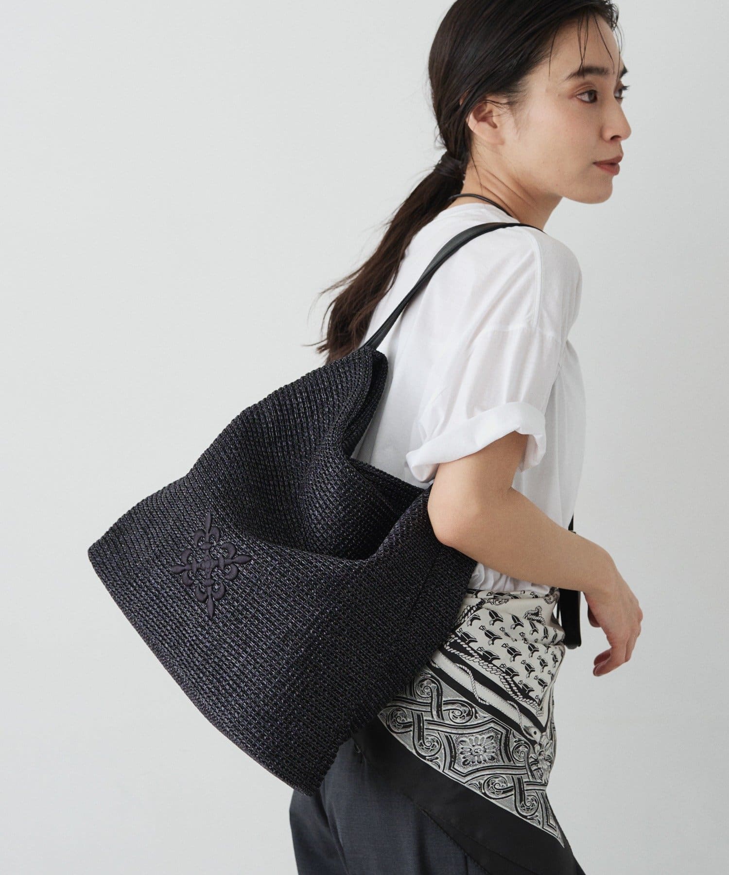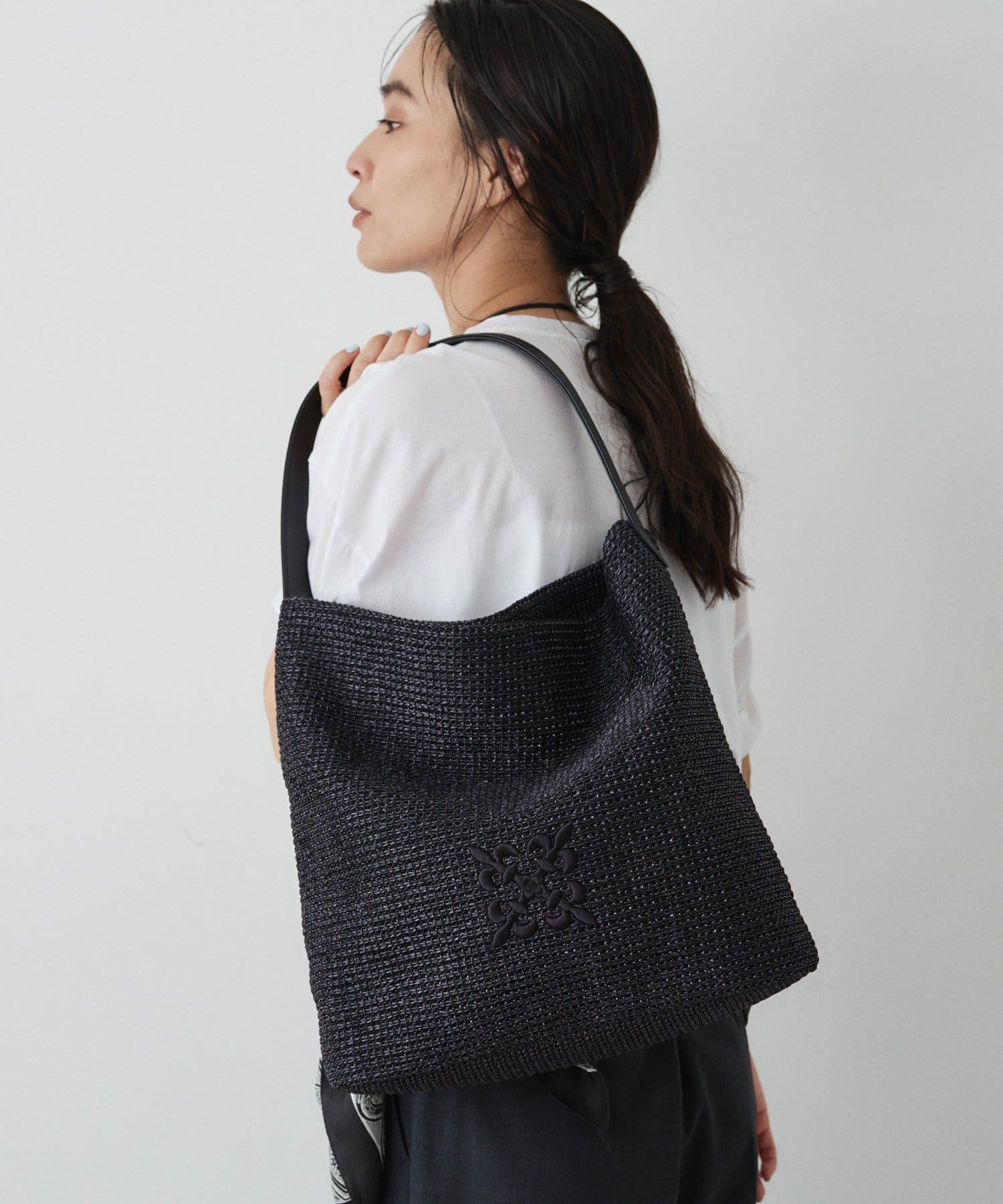 ナイロンラフィアの軽やかな風合いを活かしたワンショルダーバッグ。