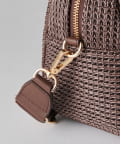 ラフィアの編み地を思わせる立体的な表情が魅力のナイロン素材。