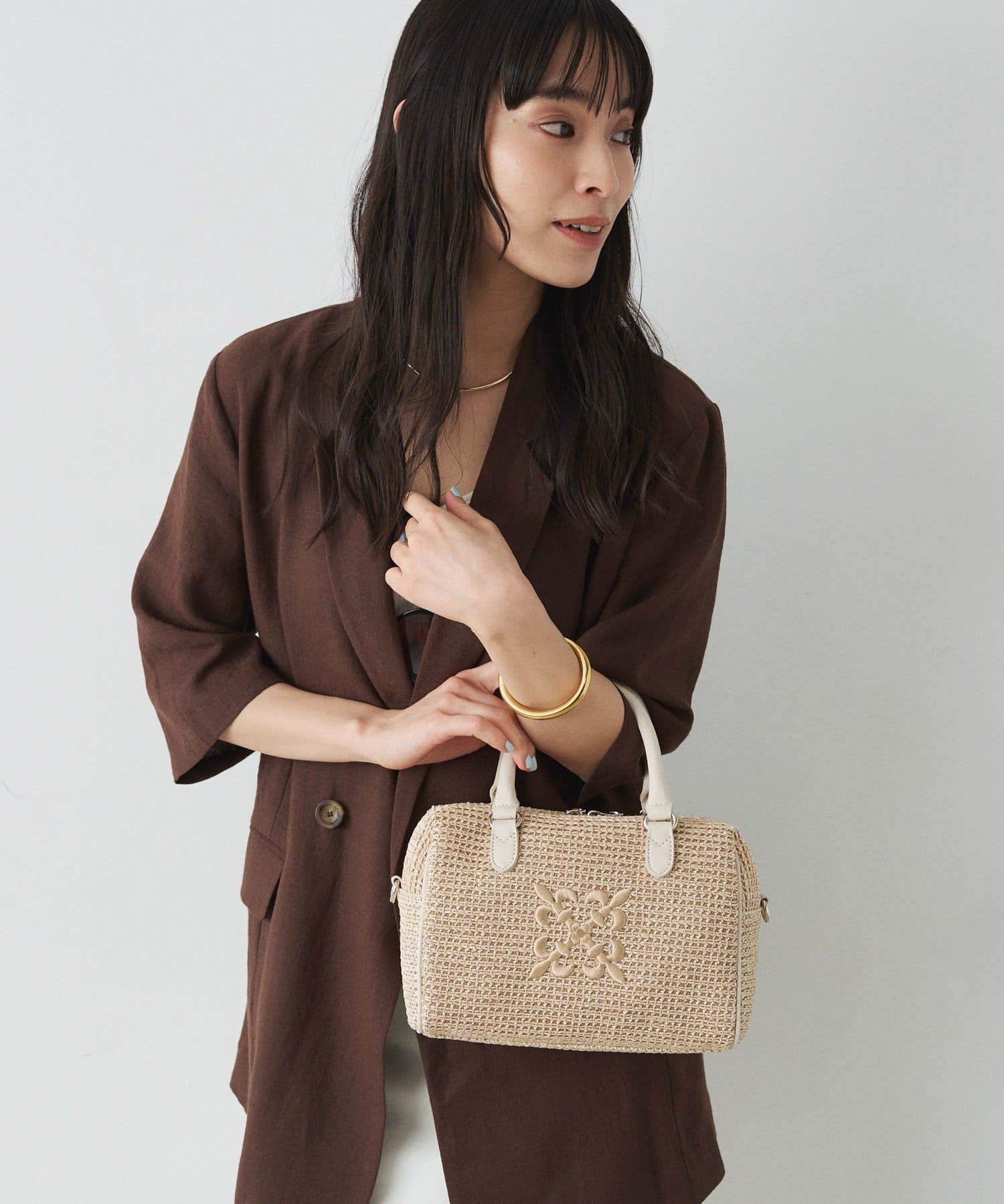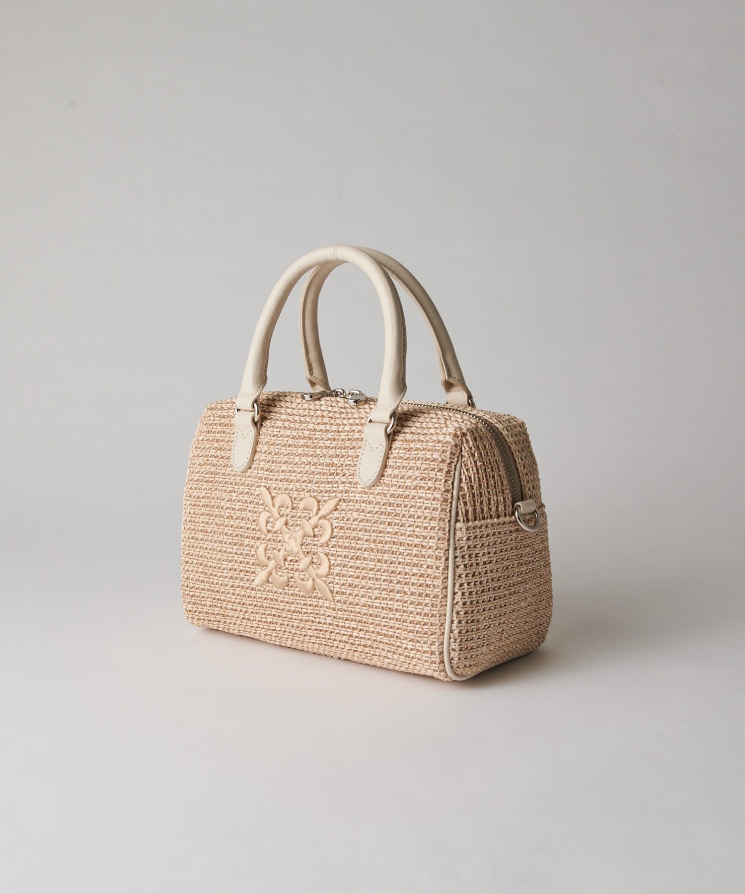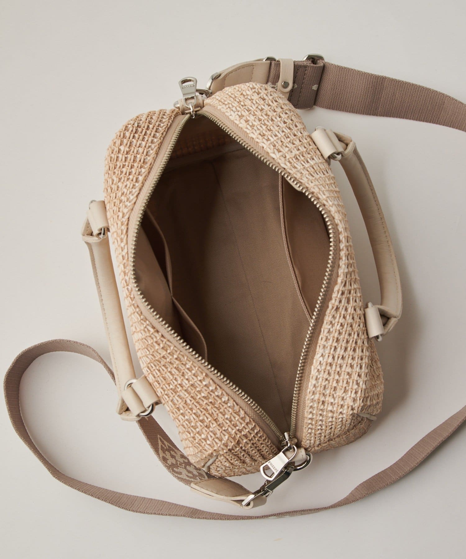 ナイロンラフィアの軽やかな風合いと、ころんとしたボストンフォルムが魅力のミニバッグ。