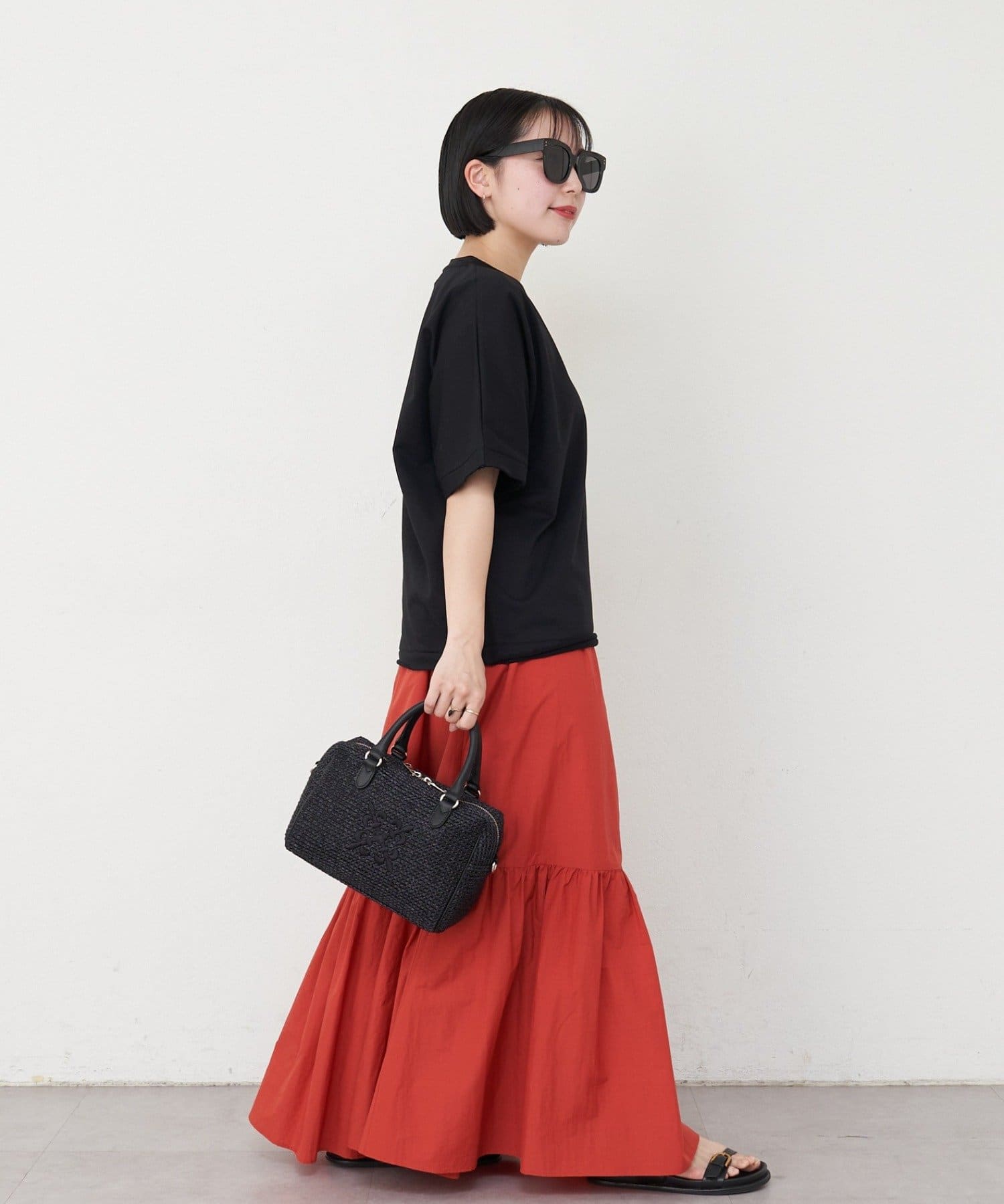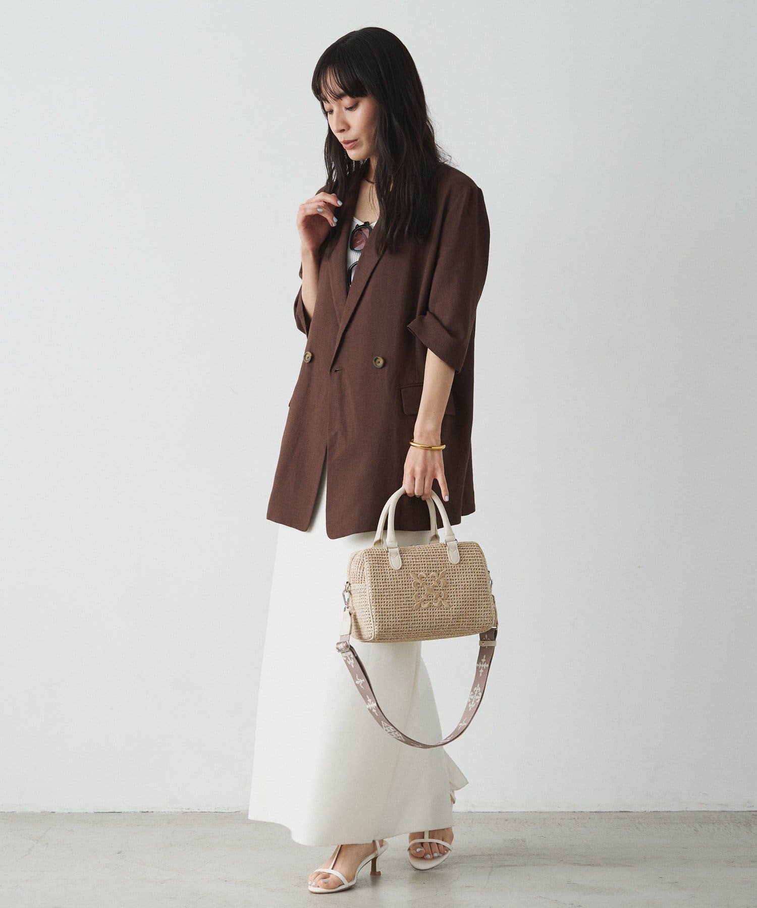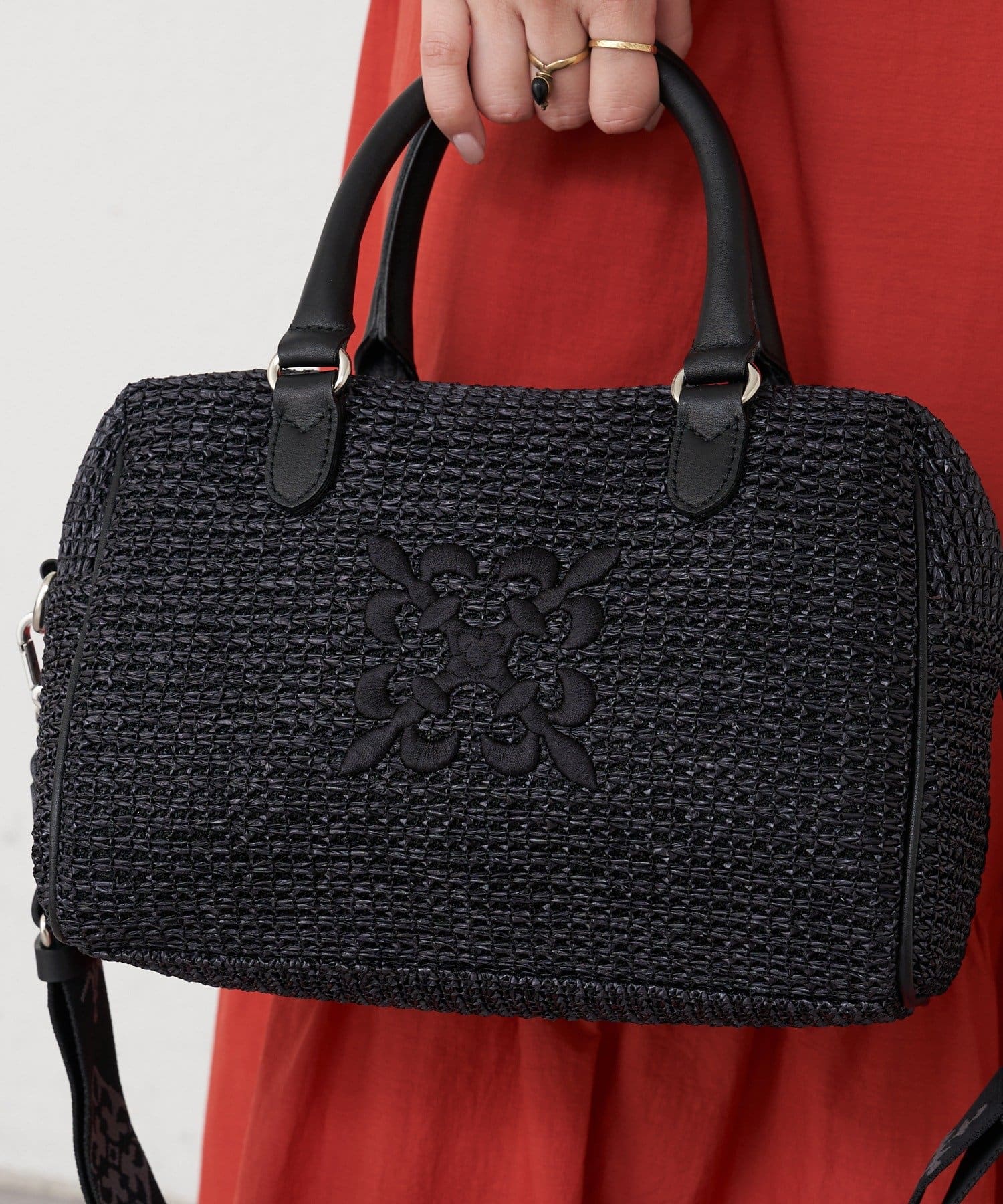 ナイロンラフィアの軽やかな風合いと、ころんとしたボストンフォルムが魅力のミニバッグ。