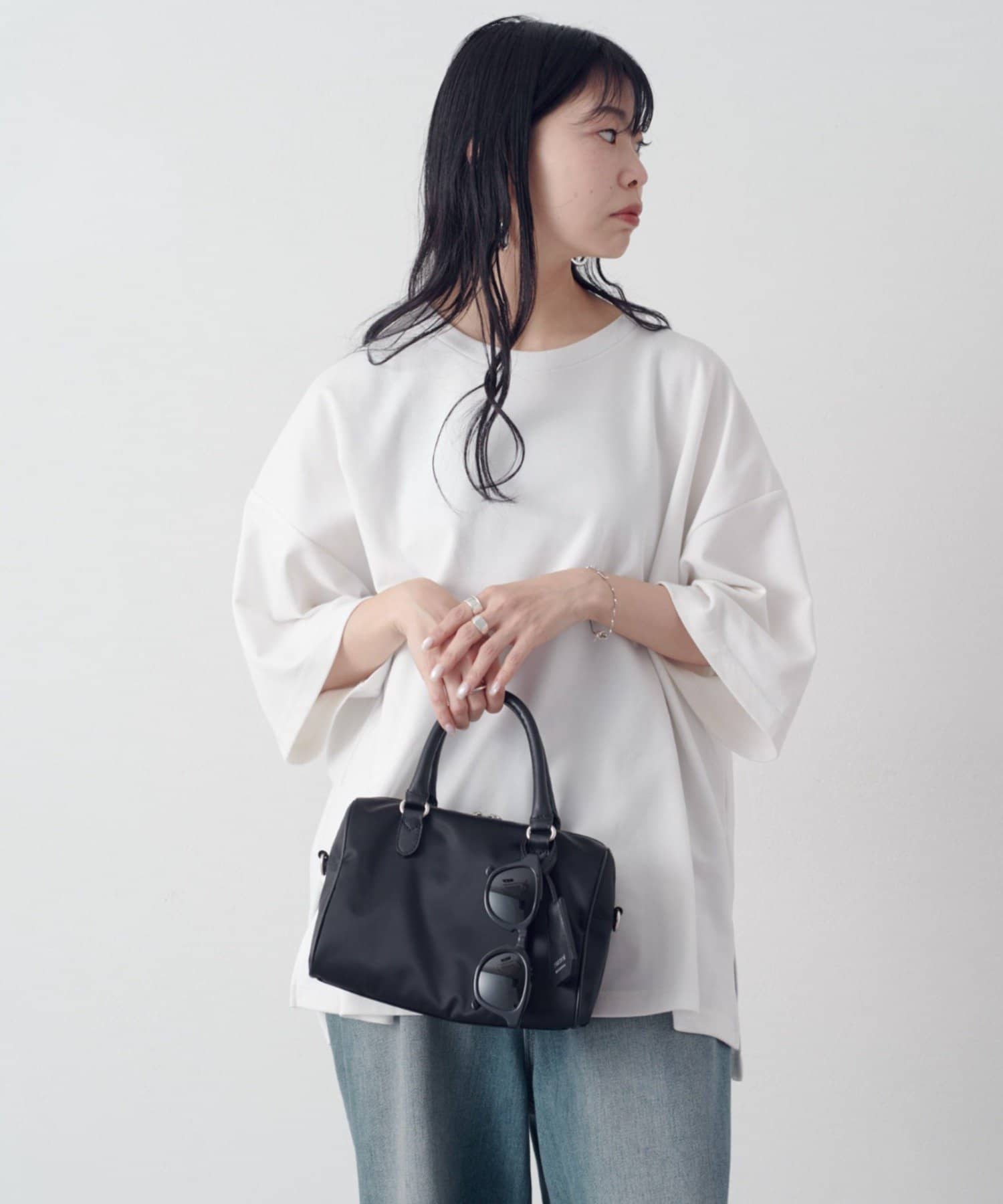 丸みのあるミニボストンフォルムに、クラウズナイロンの上品な艶感を合わせたデザイン。