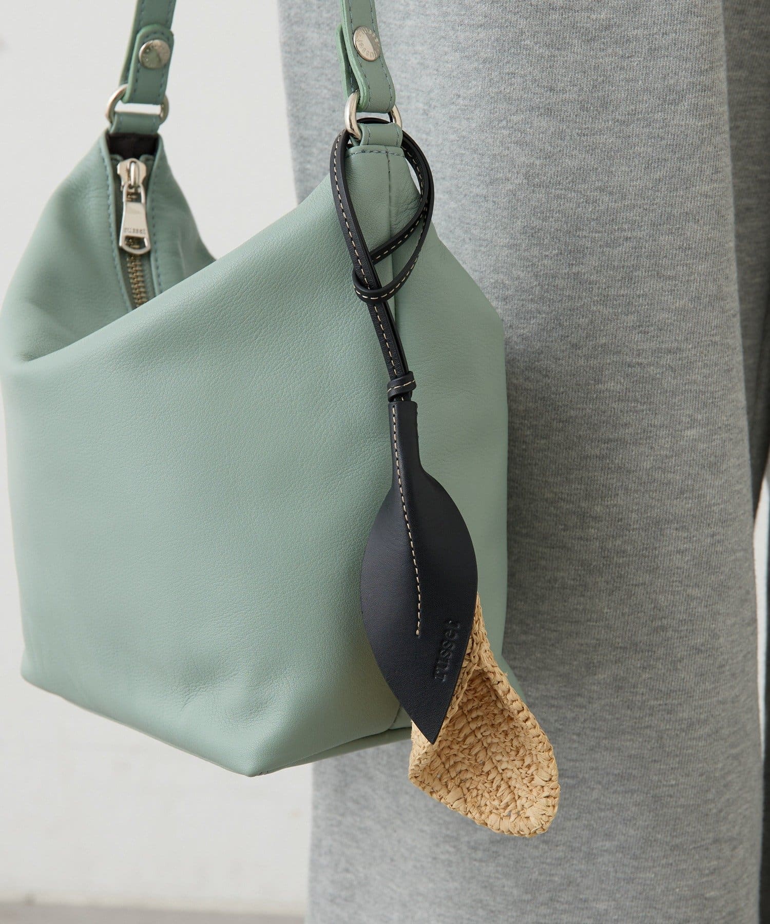 カジュアルなカゴバッグはもちろん、カッチリとしたレザートートとも相性が良く、大人の遊び心を感じさせるアクセントとして活躍します。