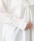 衿元と袖口にラッフルをあしらった、女性らしさのあるデザイン。