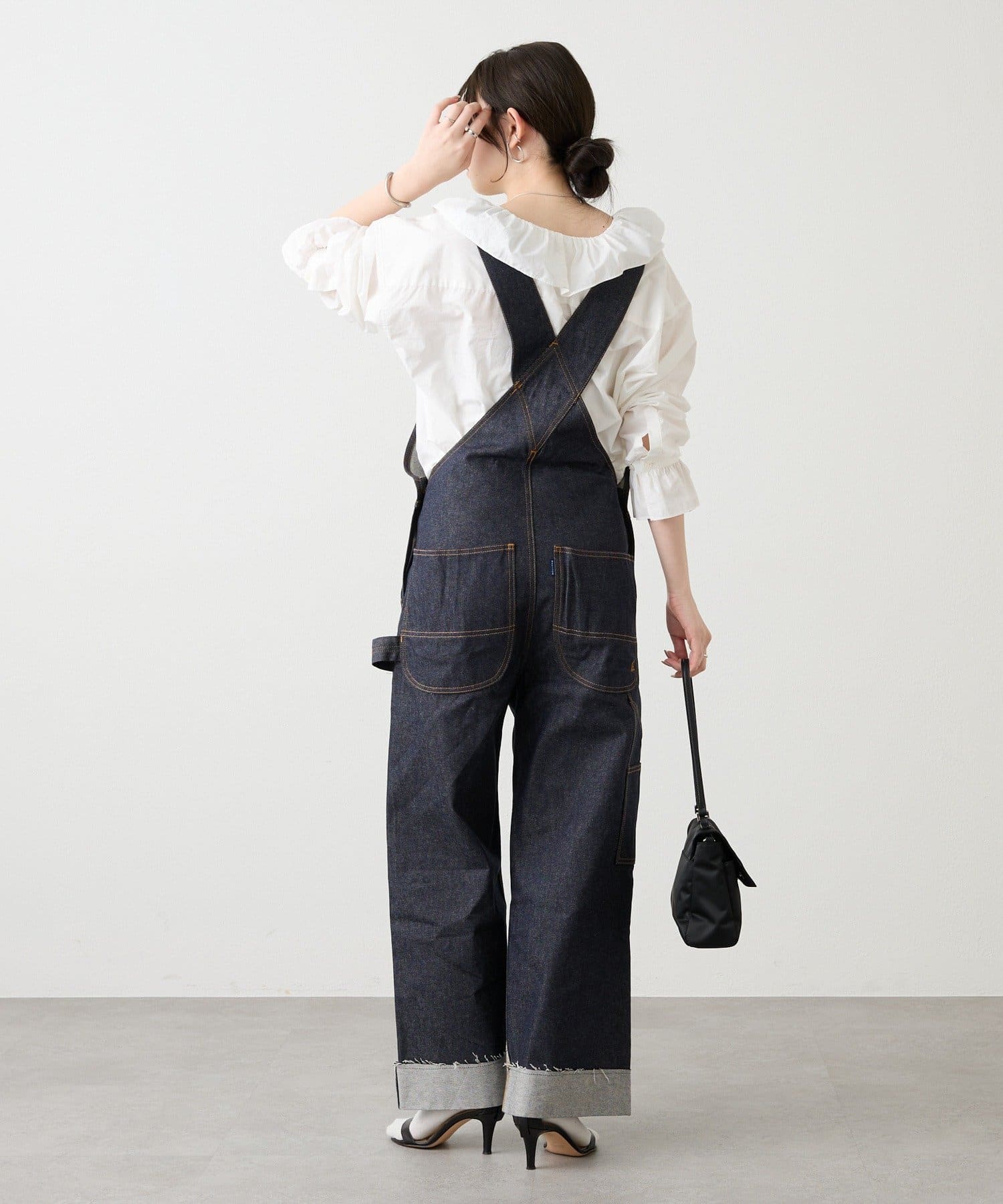 サロペットやジャンスカのインナーとしてもラッフルが程よいアクセントになり、レイヤードスタイルも楽しめます。