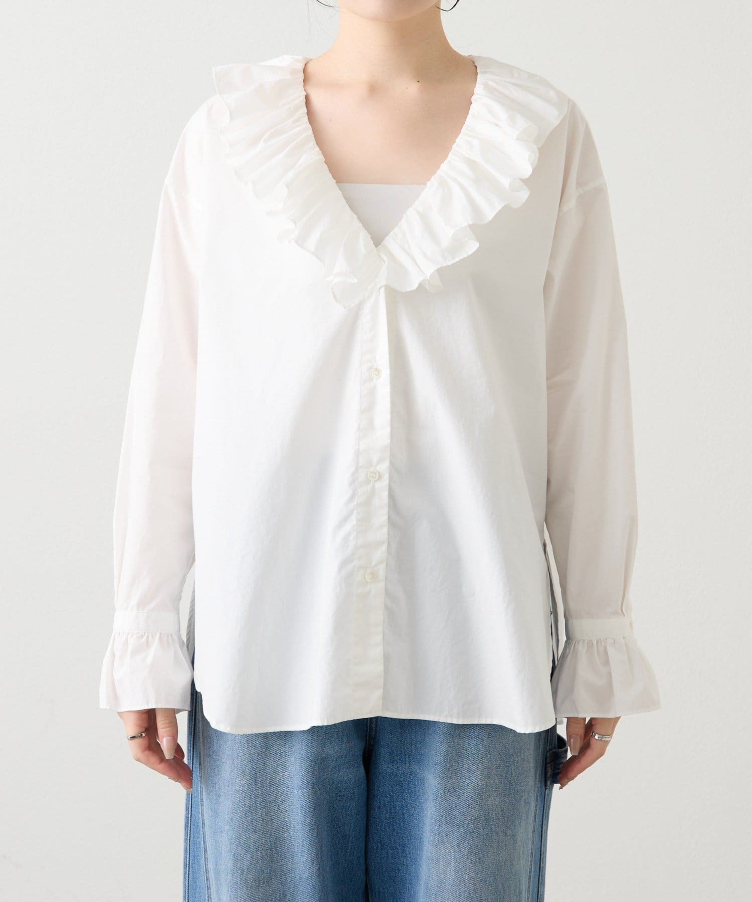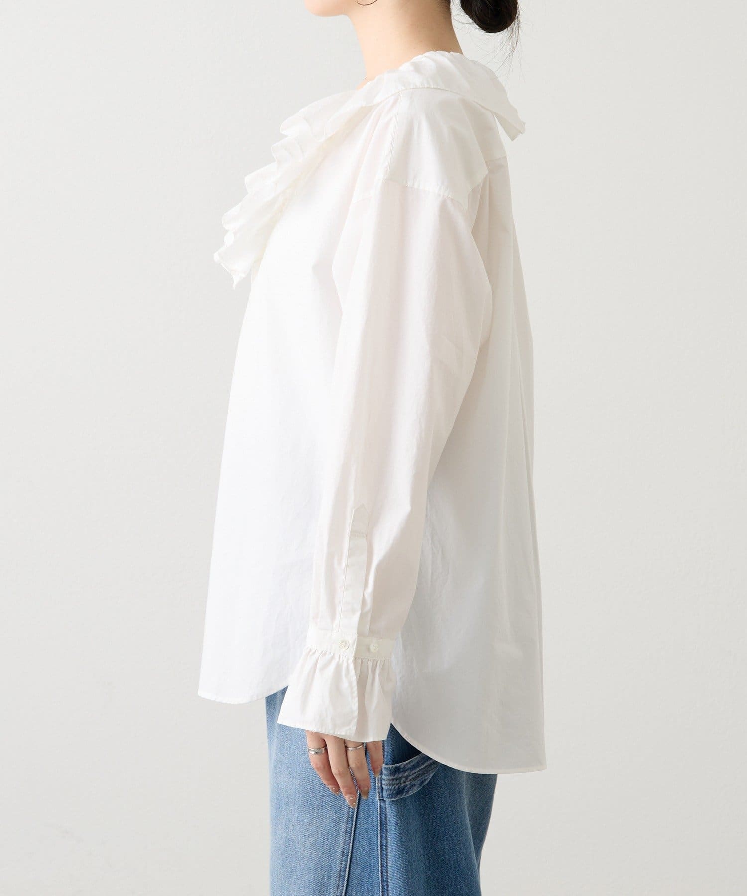 • 袖にもラッフルがついたデザイン性のあるシャツ
