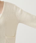 リブ編みではなく、編地の間に細かな隙間があるように見える繊細な編み方を取り入れ、軽やかさと奥行きをプラスしています。
