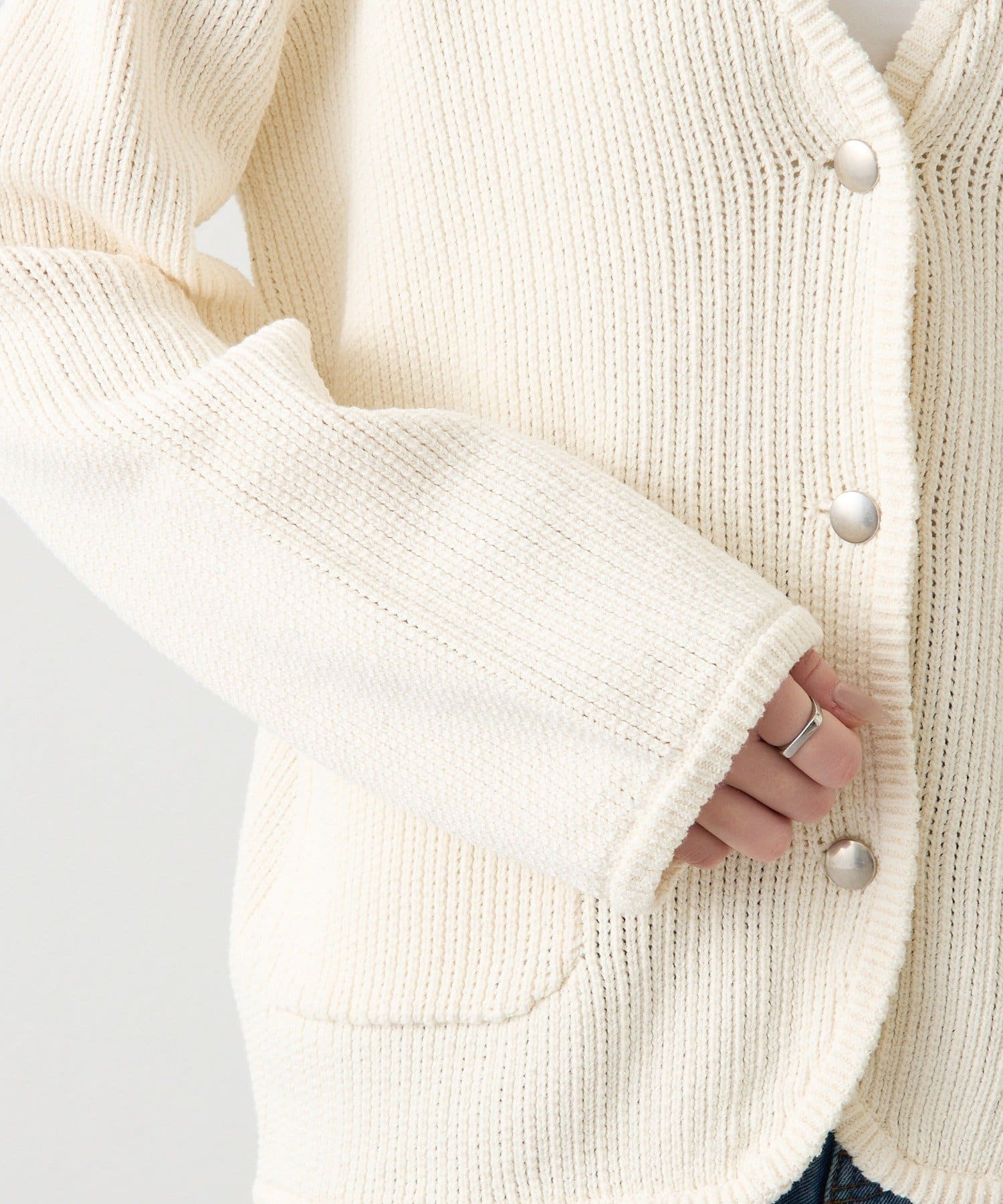 ノーカラーニットジャケット