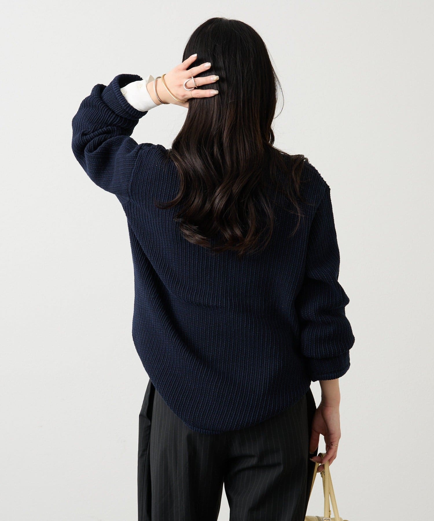 編地に表情があり、さっと羽織るだけで自然な立体感と抜けのある印象に。