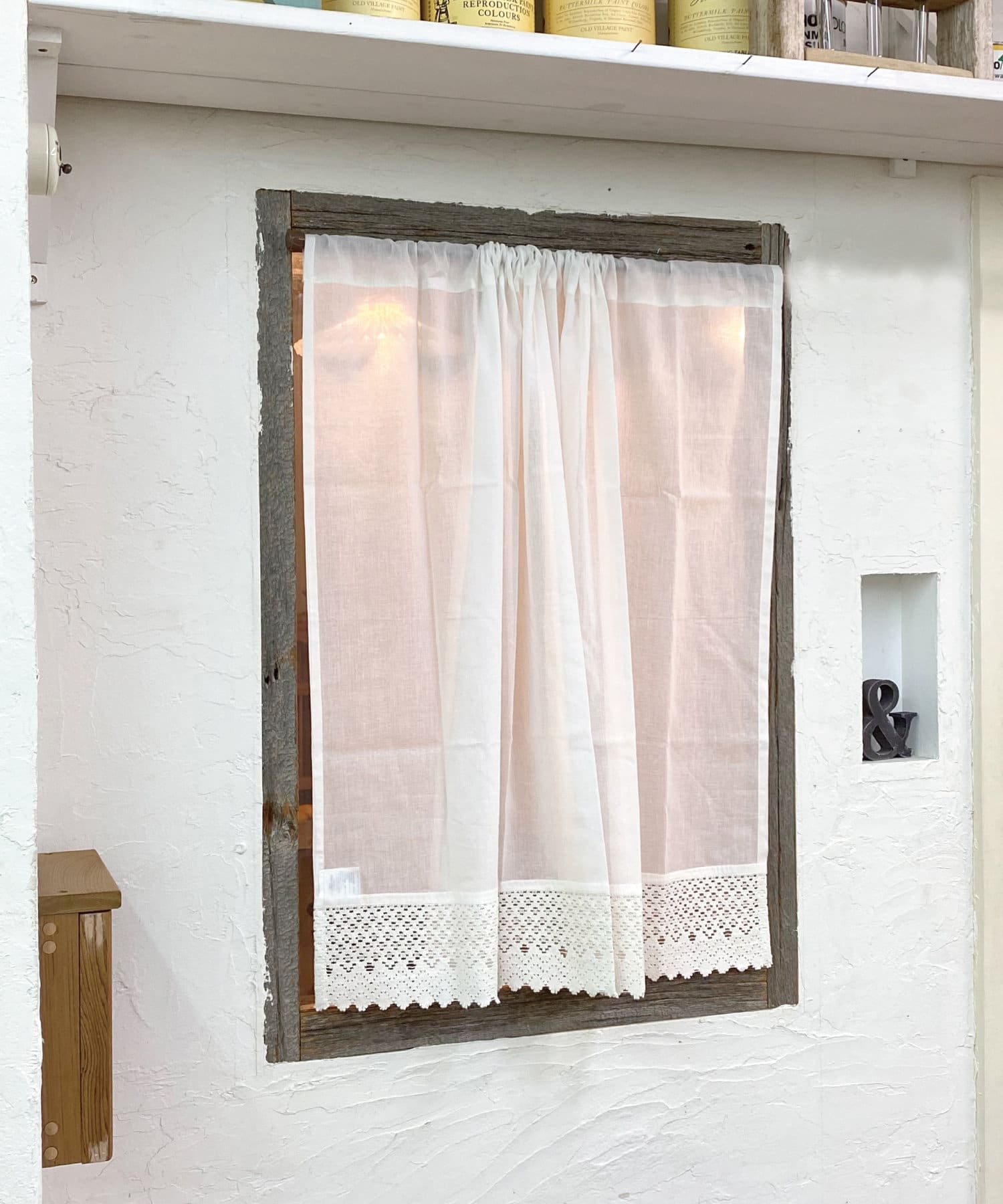 ●小窓などにお使いいただける裾のレース使いが上品なカフェカーテンです。