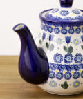 注ぎ口と取っ手のブルーカラーがとても鮮やかで異国情緒を感じさせ、