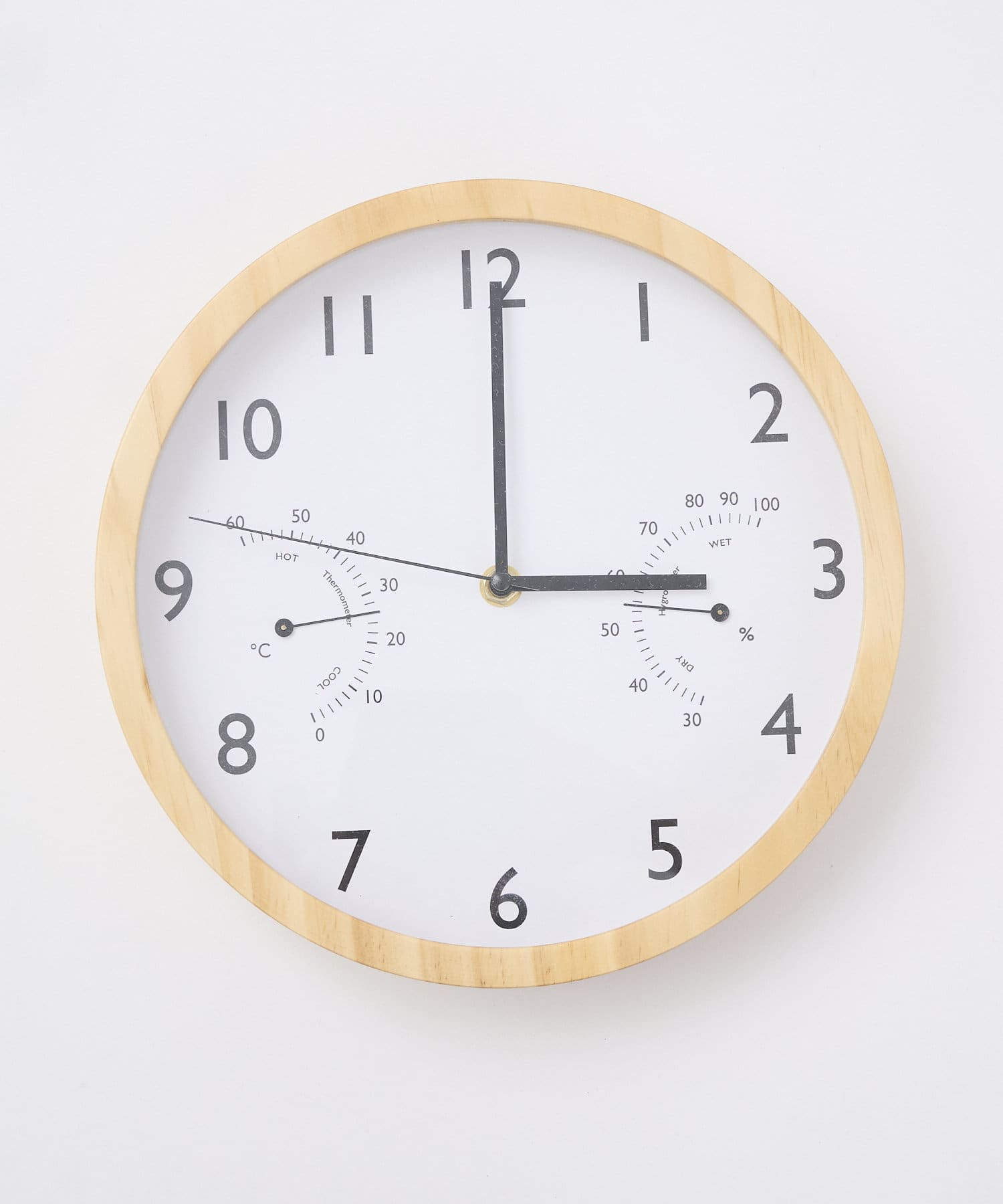 温湿度計付きウッドウォールクロック