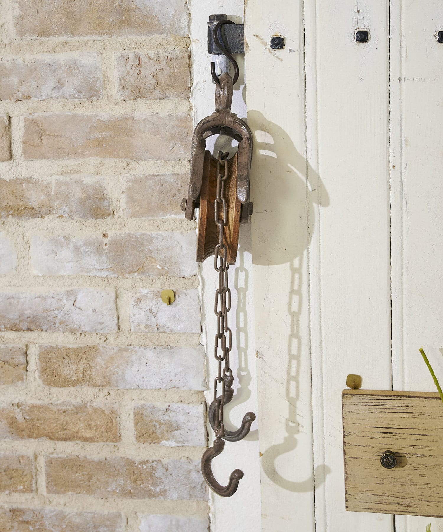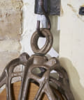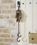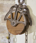 明るくもインダストリアルな雰囲気を感じさせる滑車のオブジェ。