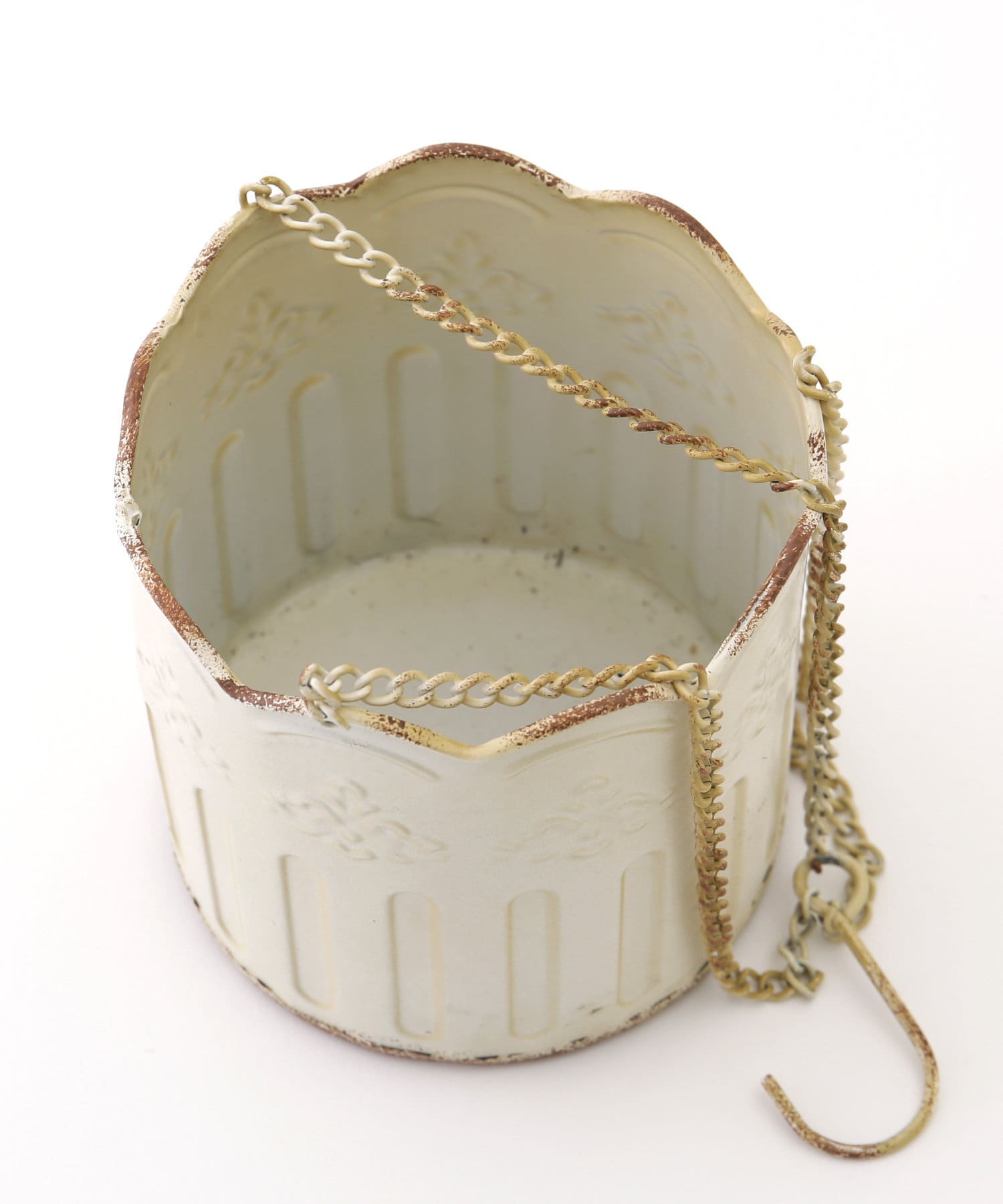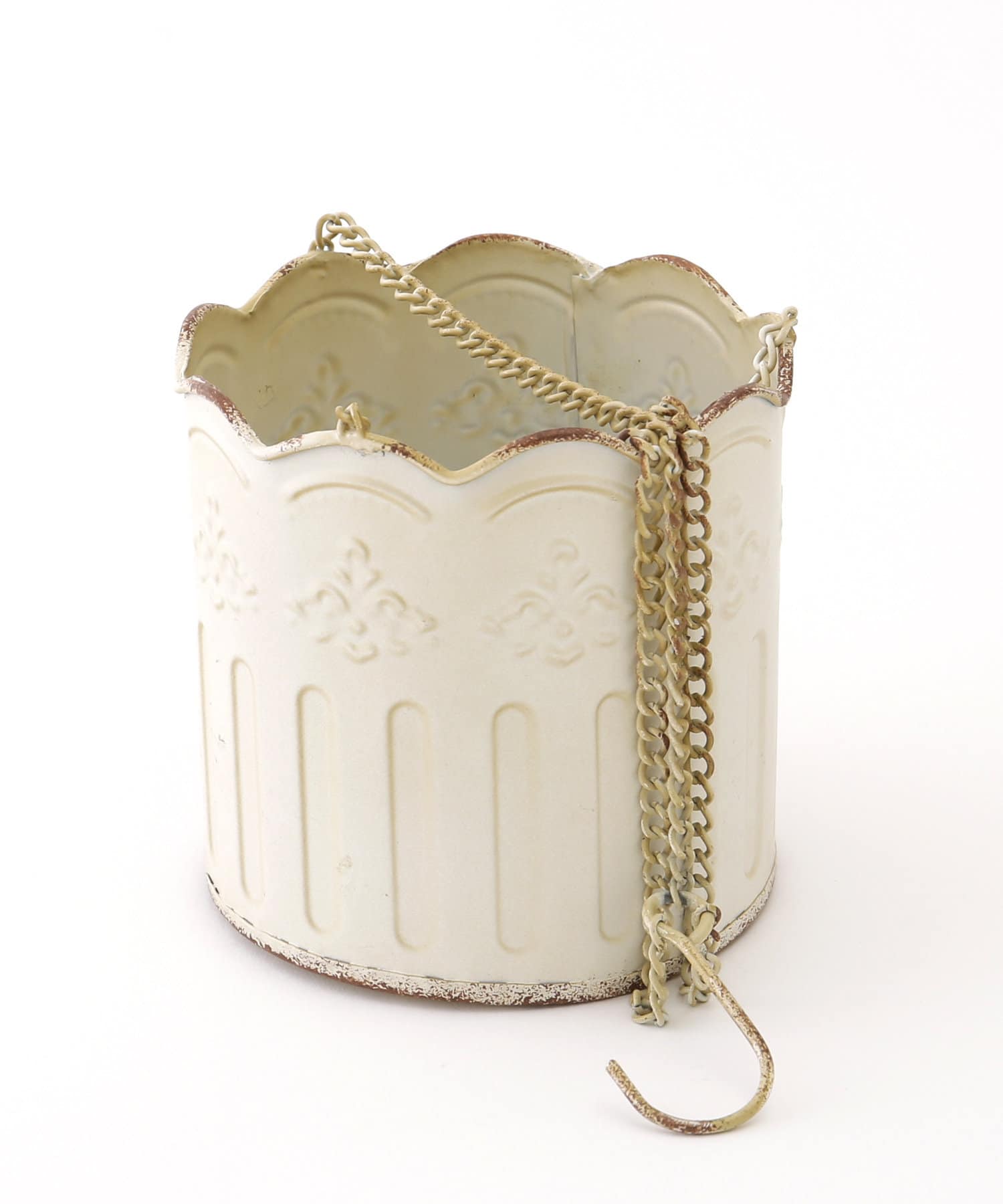 シャビー感がアンティークなハンギングポットカバー。