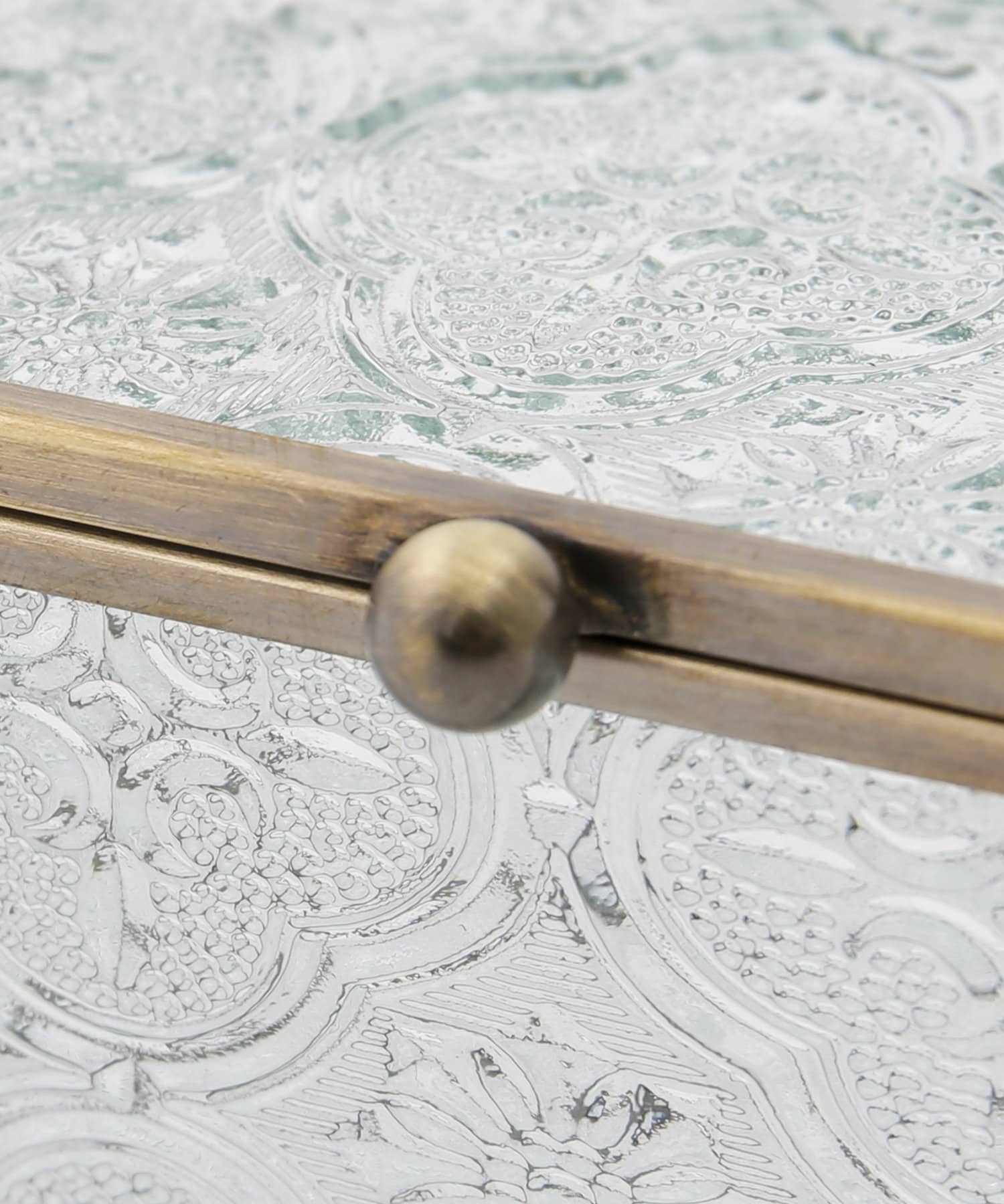 フローラ柄のガラスがかわいらしくもどこかラグジュアリー。