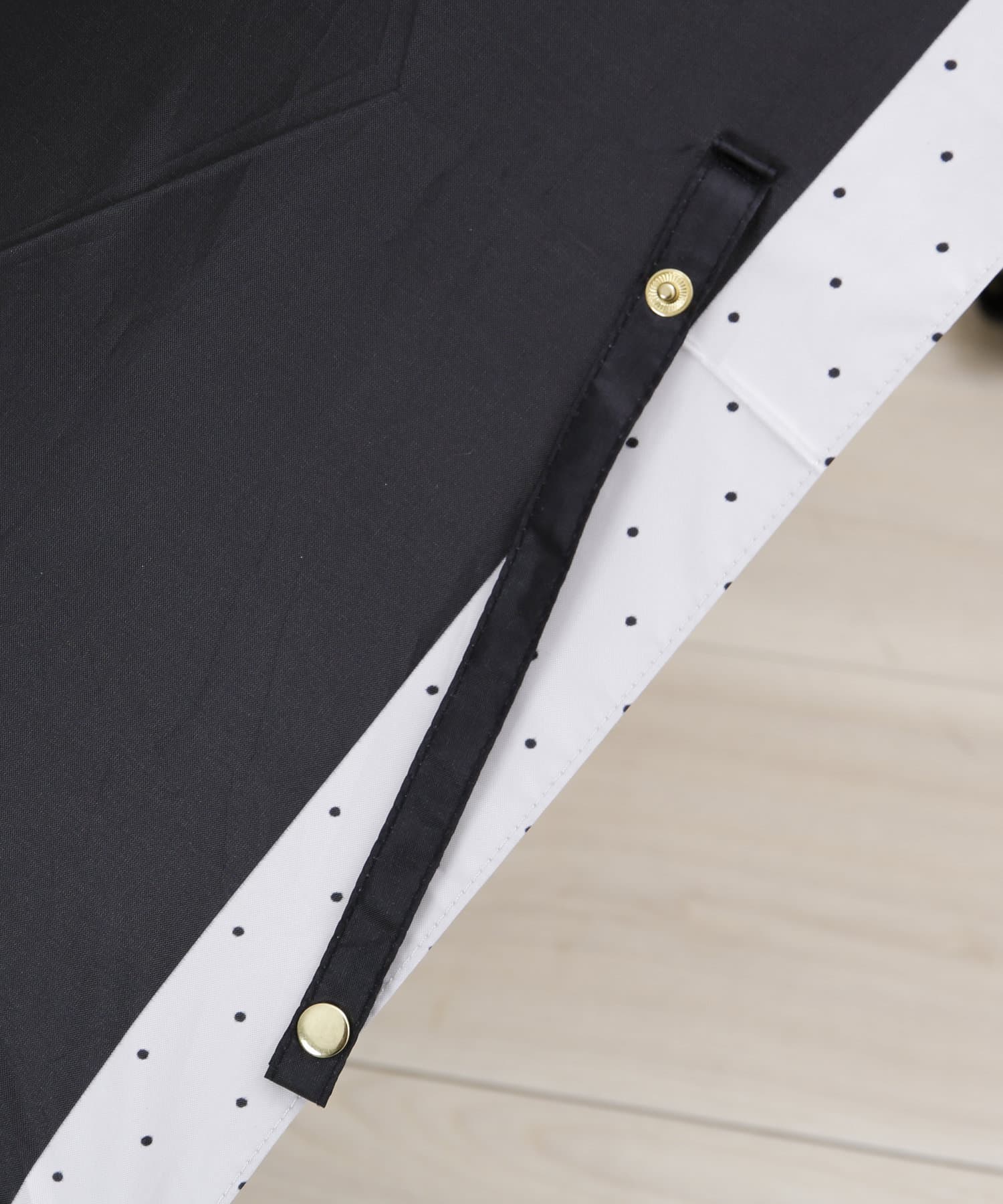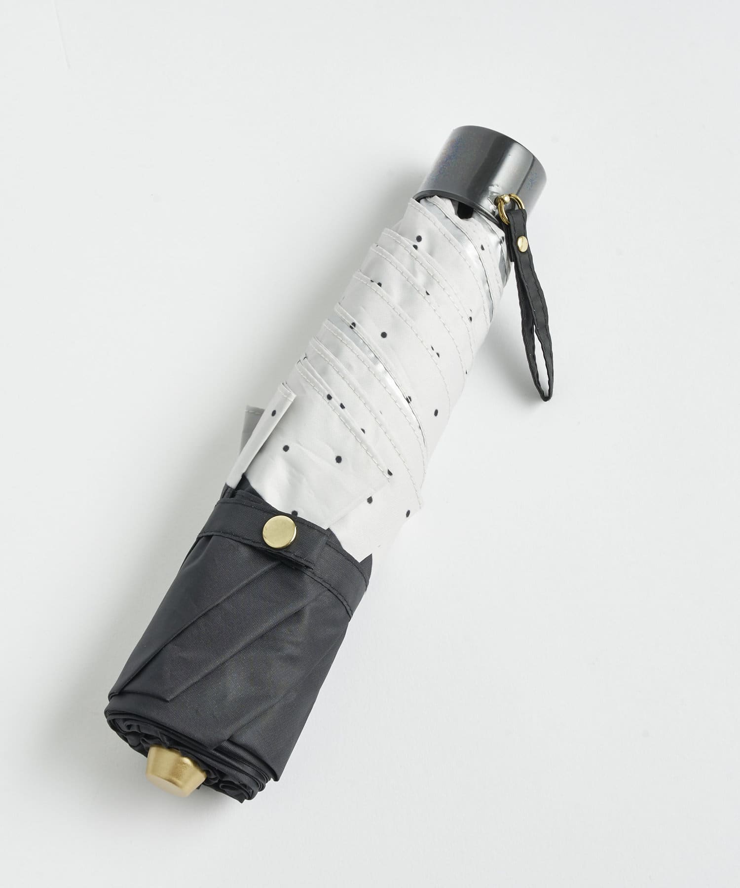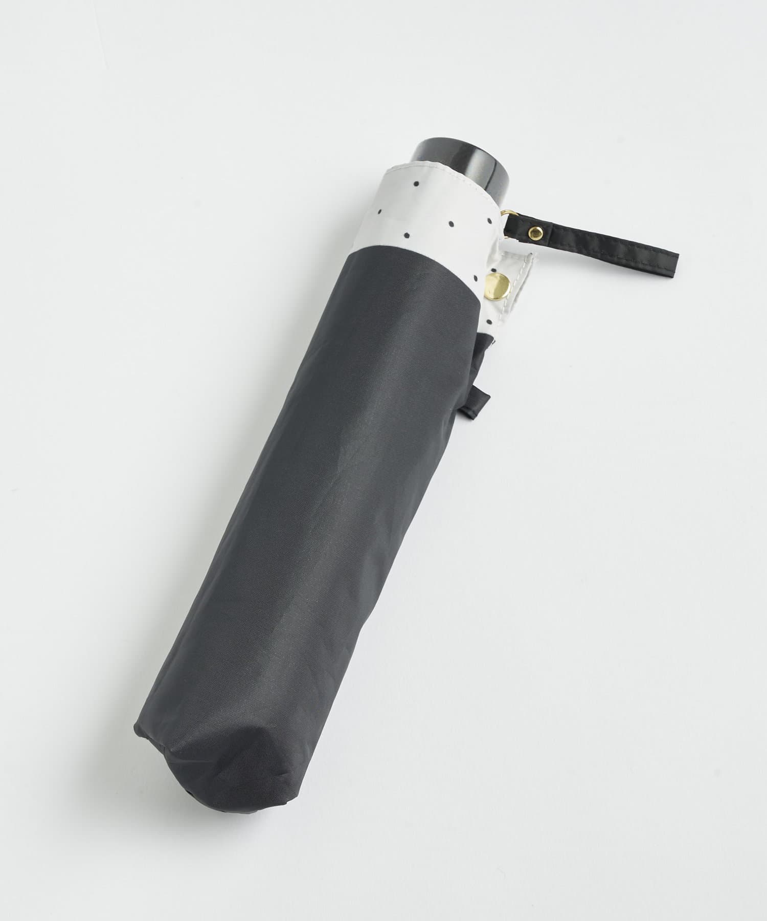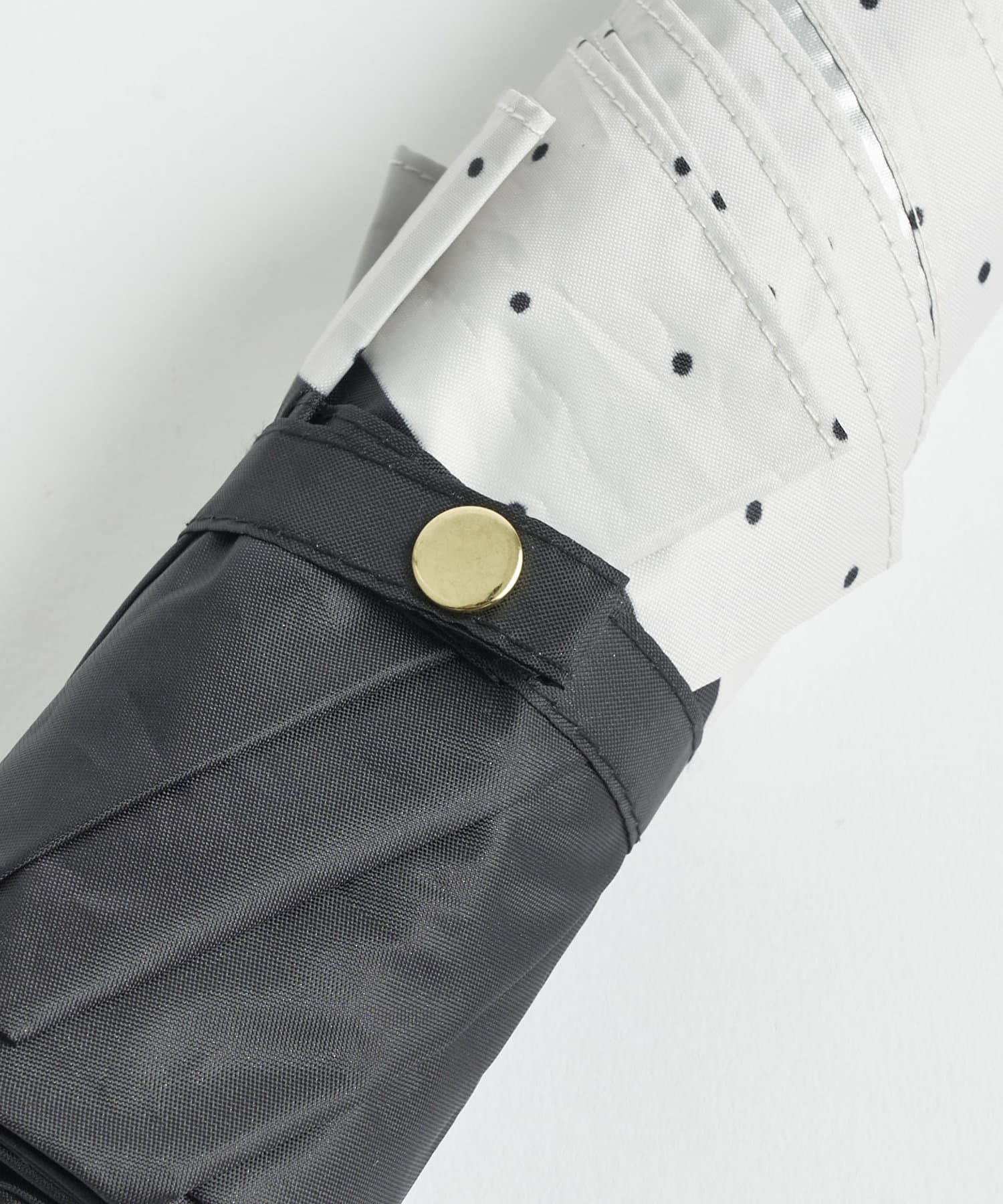 縁の切り替えのピンドットがワンポイントの上品なスタイルの折り傘。