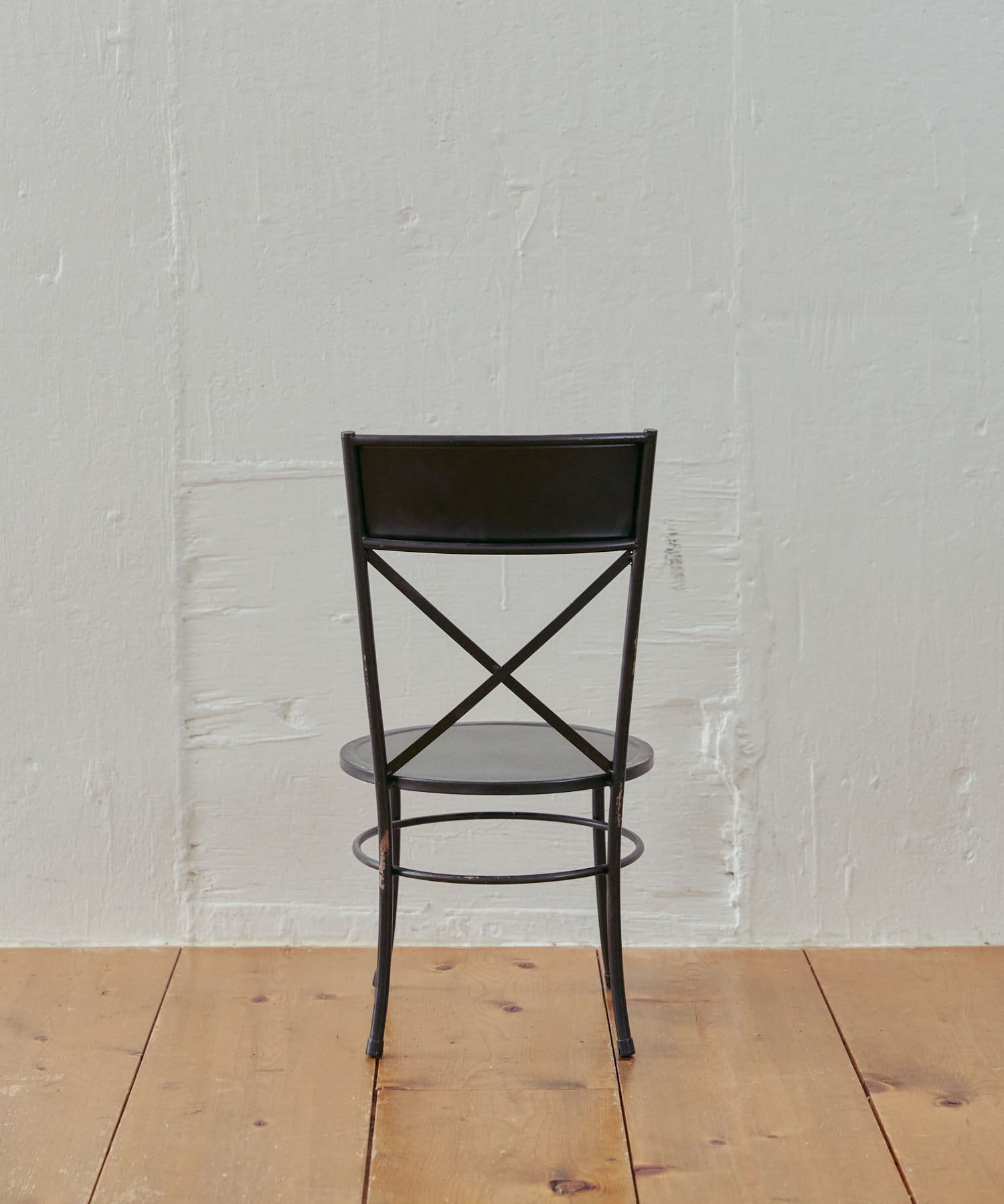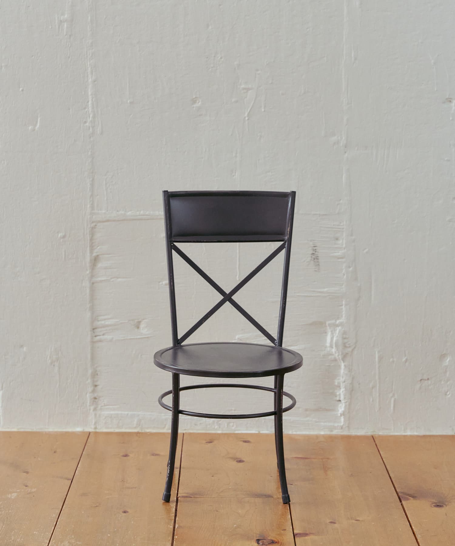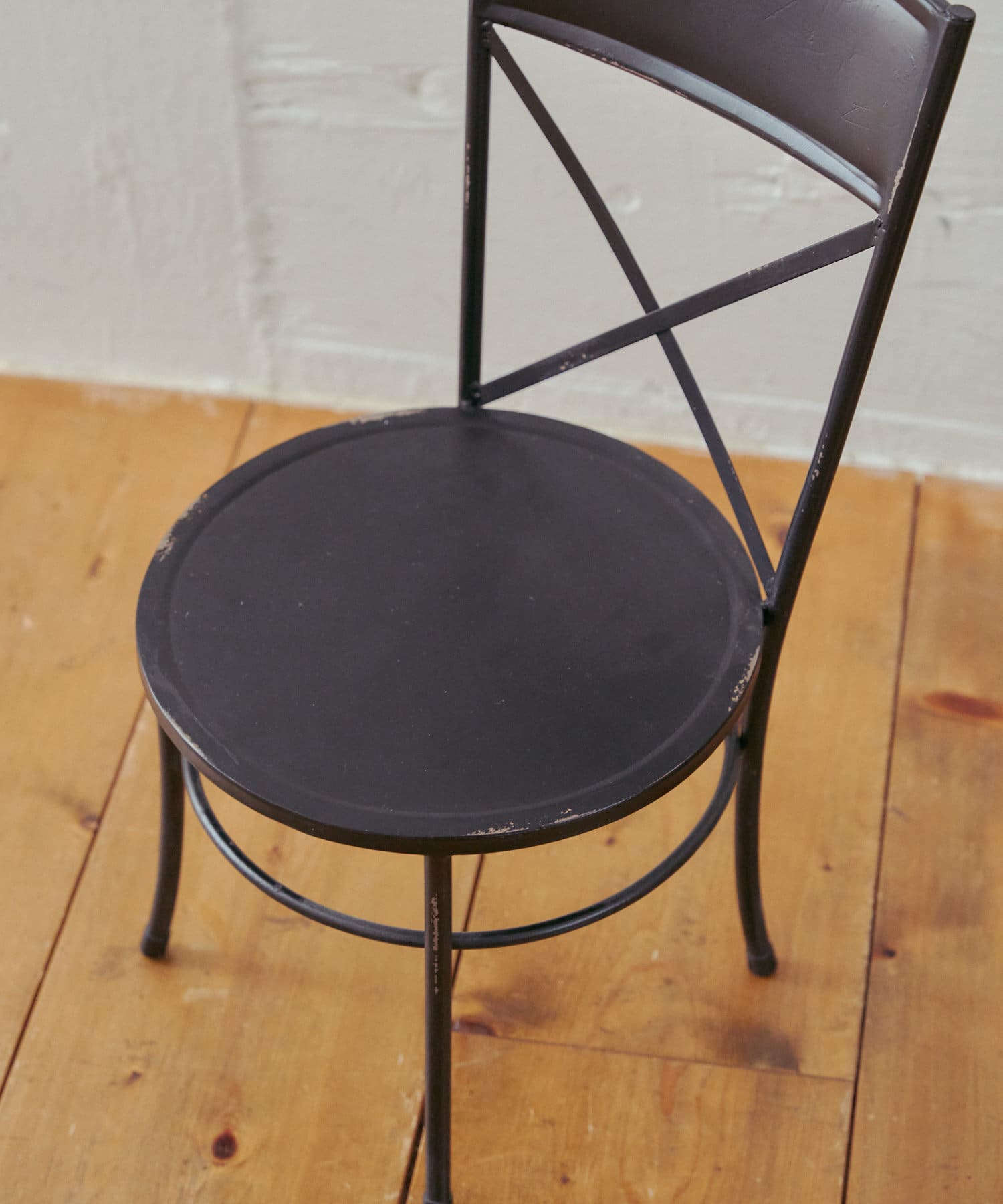 アイアンの質感がシックに引き締めてくれる小さな椅子のスタンド。