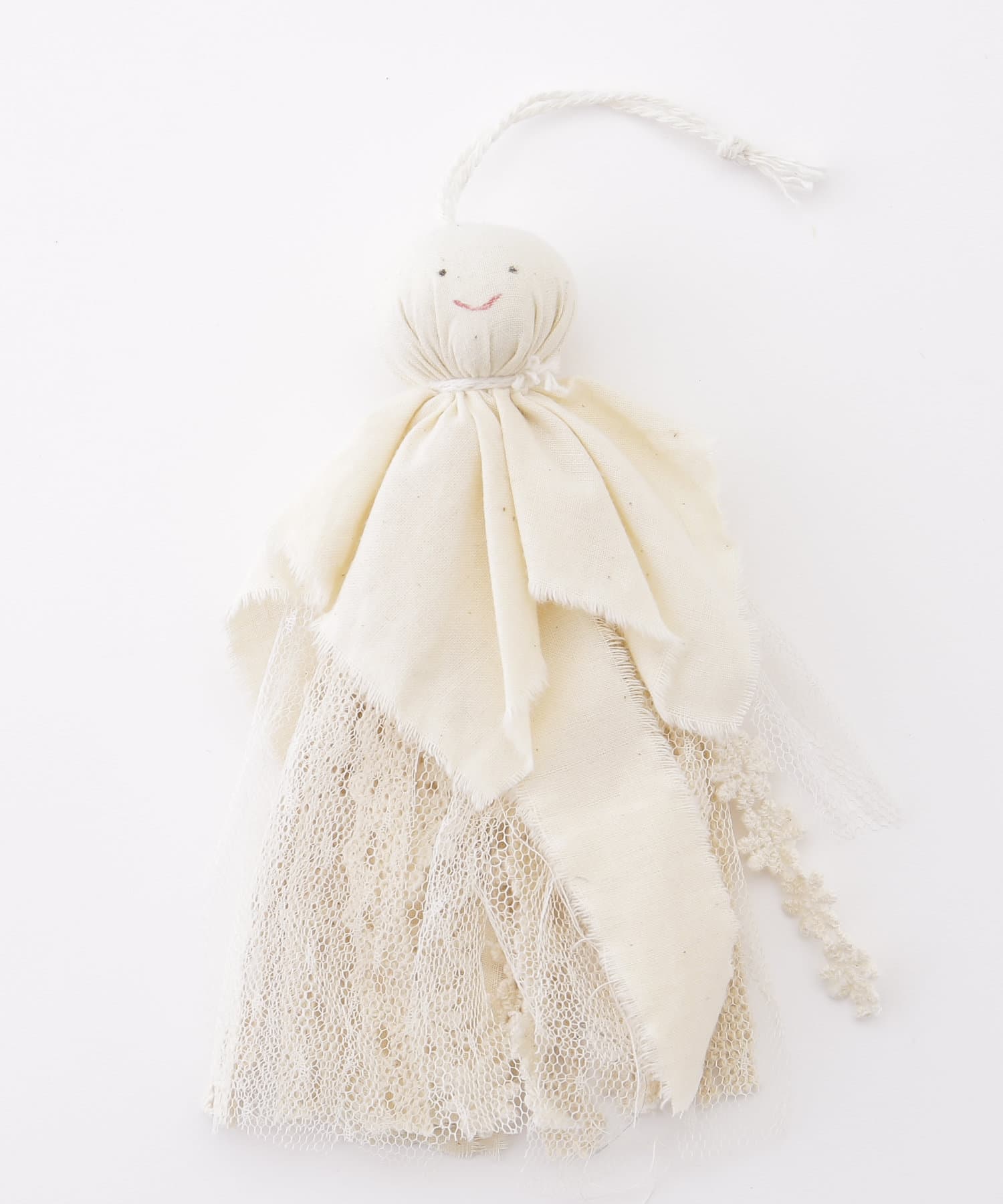 愛嬌のあるお顔とタッセル風のレースの端切れが手作り感がありつつも、